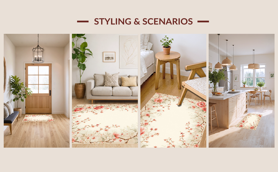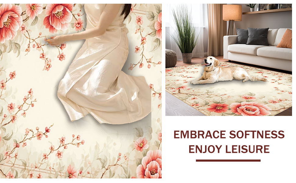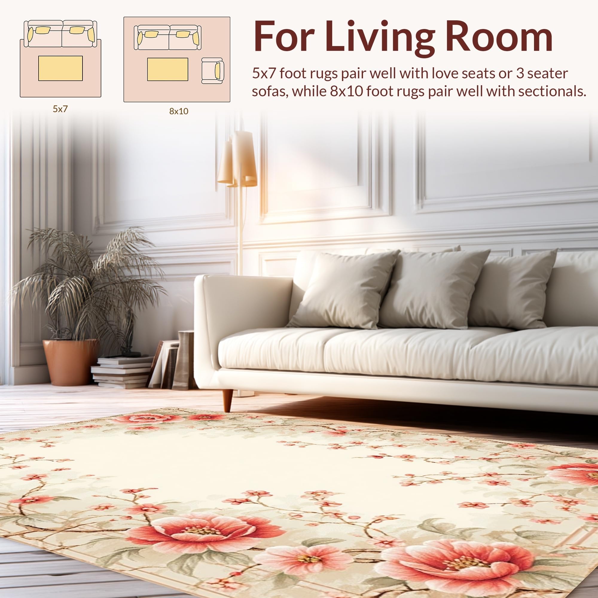 Ultra Soft Area Rug, Non Slip, Stain Resistant, Washable Area Rugs for Living Room, Bedroom, Contemporary Geometric Floral Fusion(Beige) Overview:
