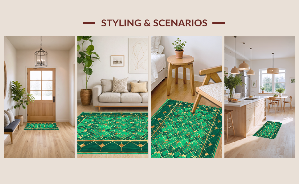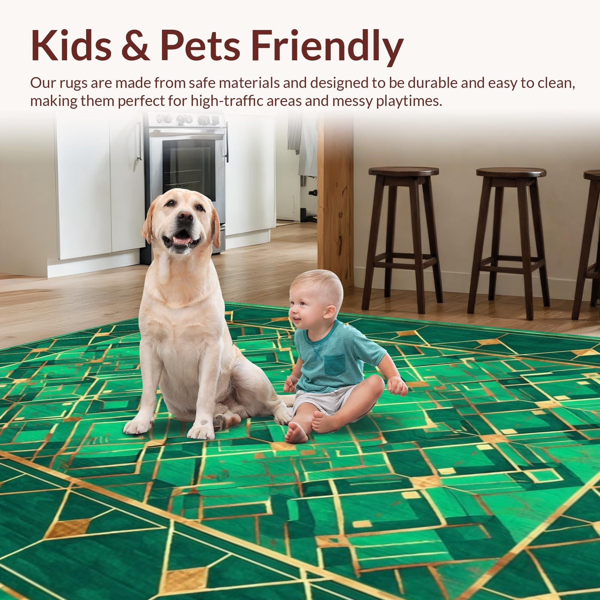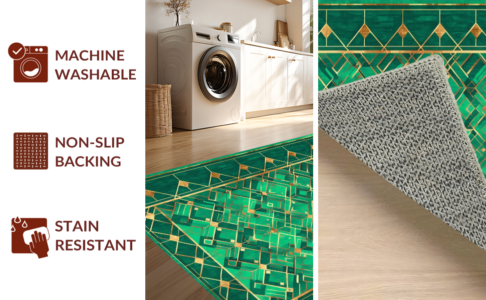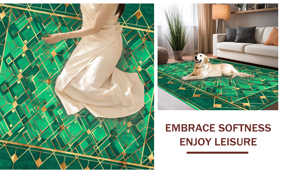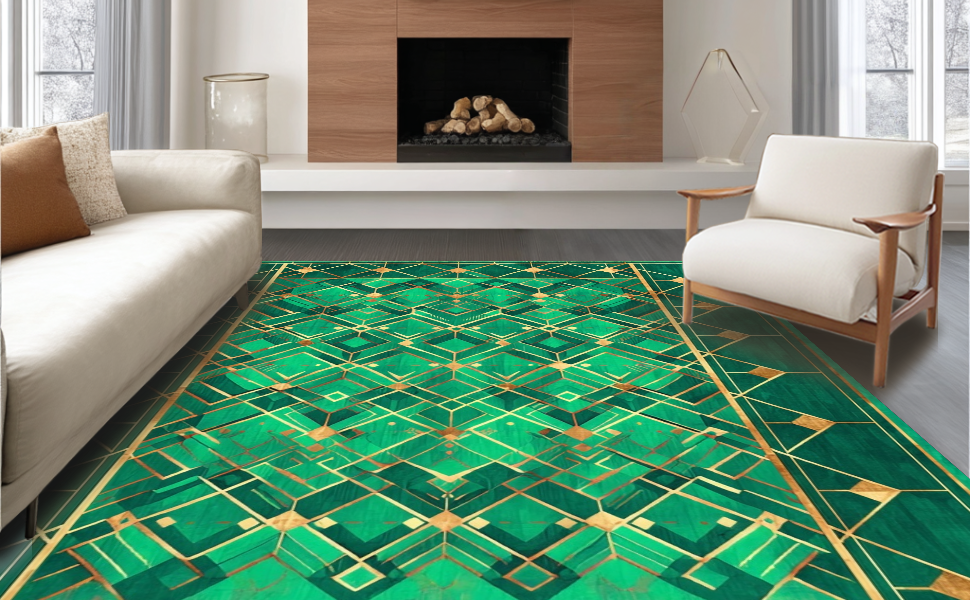 Ultra Soft Area Rug, Non Slip, Stain Resistant, Washable Area Rugs for Living Room, Bedroom, Contemporary Geometric Luxe Vibe(Green) Overview: