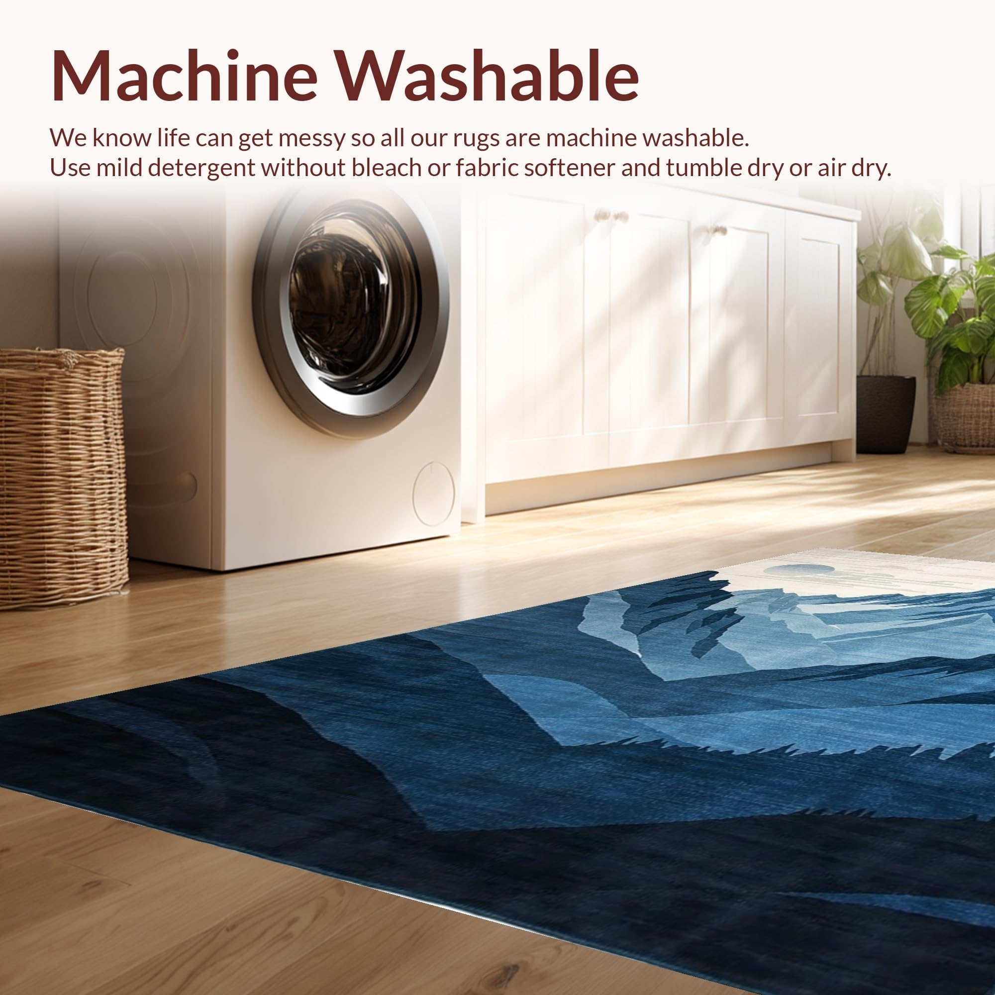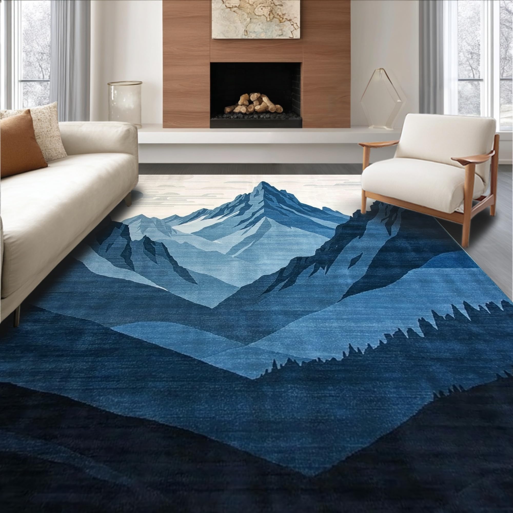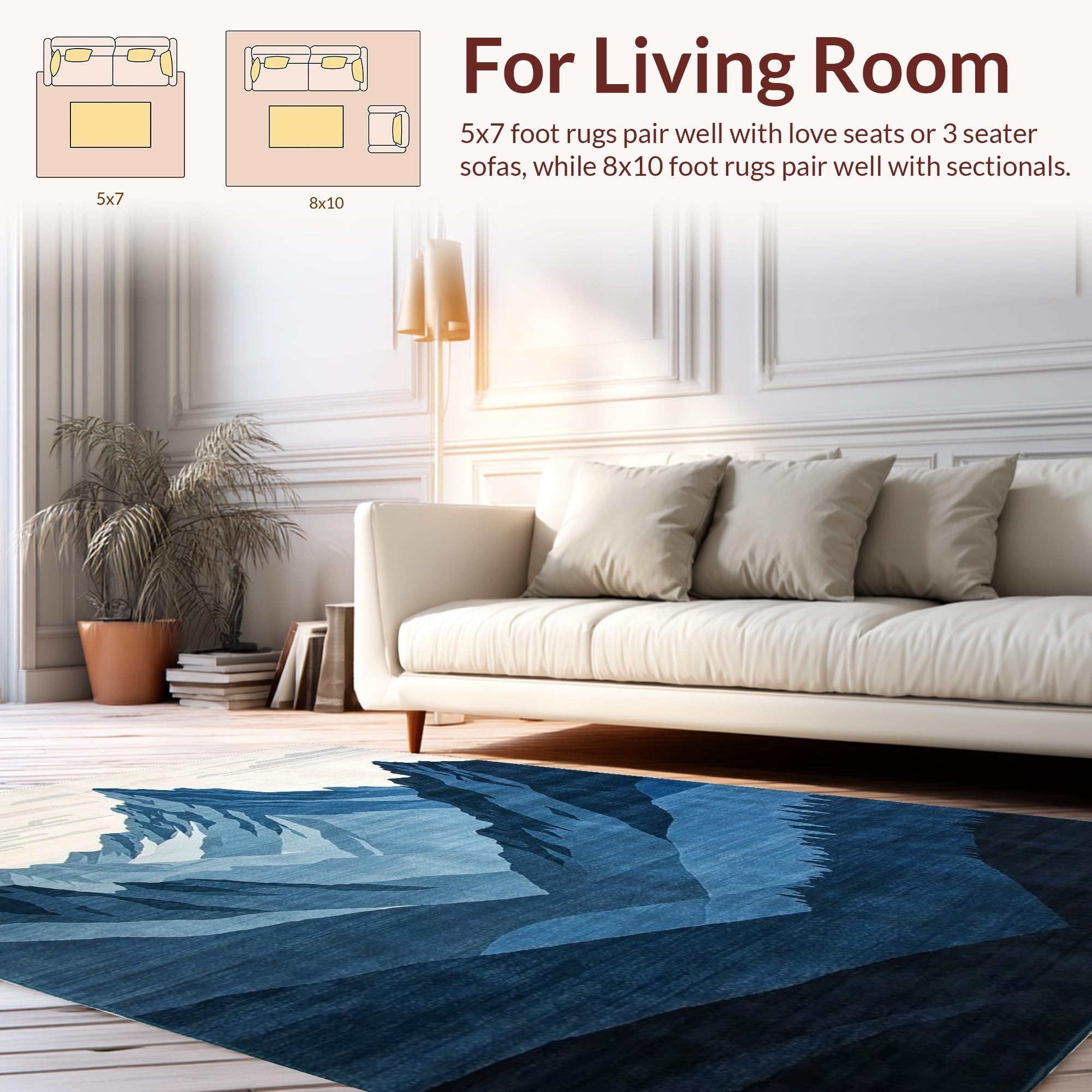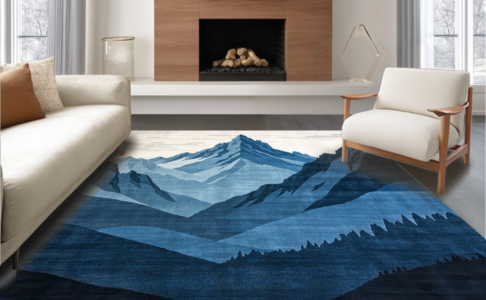 Ultra Soft Area Rug, Non Slip, Stain Resistant, Washable Area Rugs for Living Room, Bedroom, Contemporary Geometric Mountain Vibes(Blue) Overview: