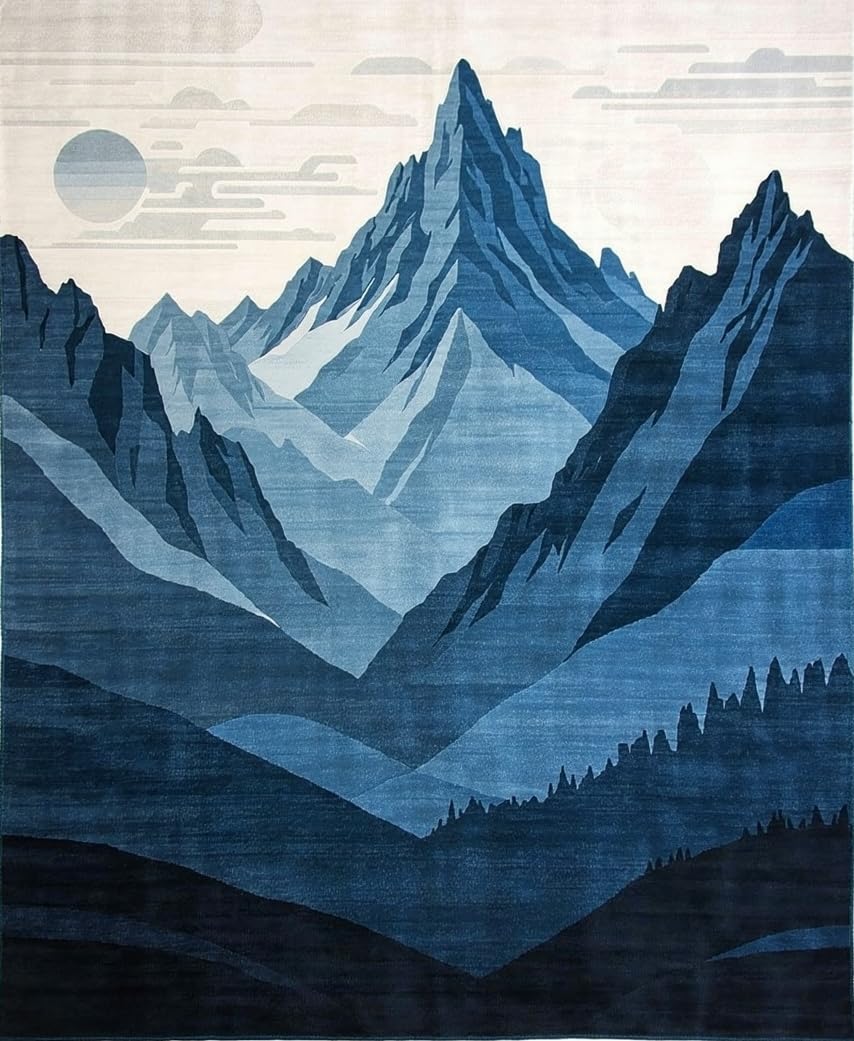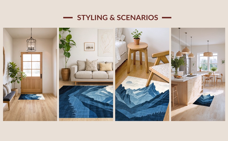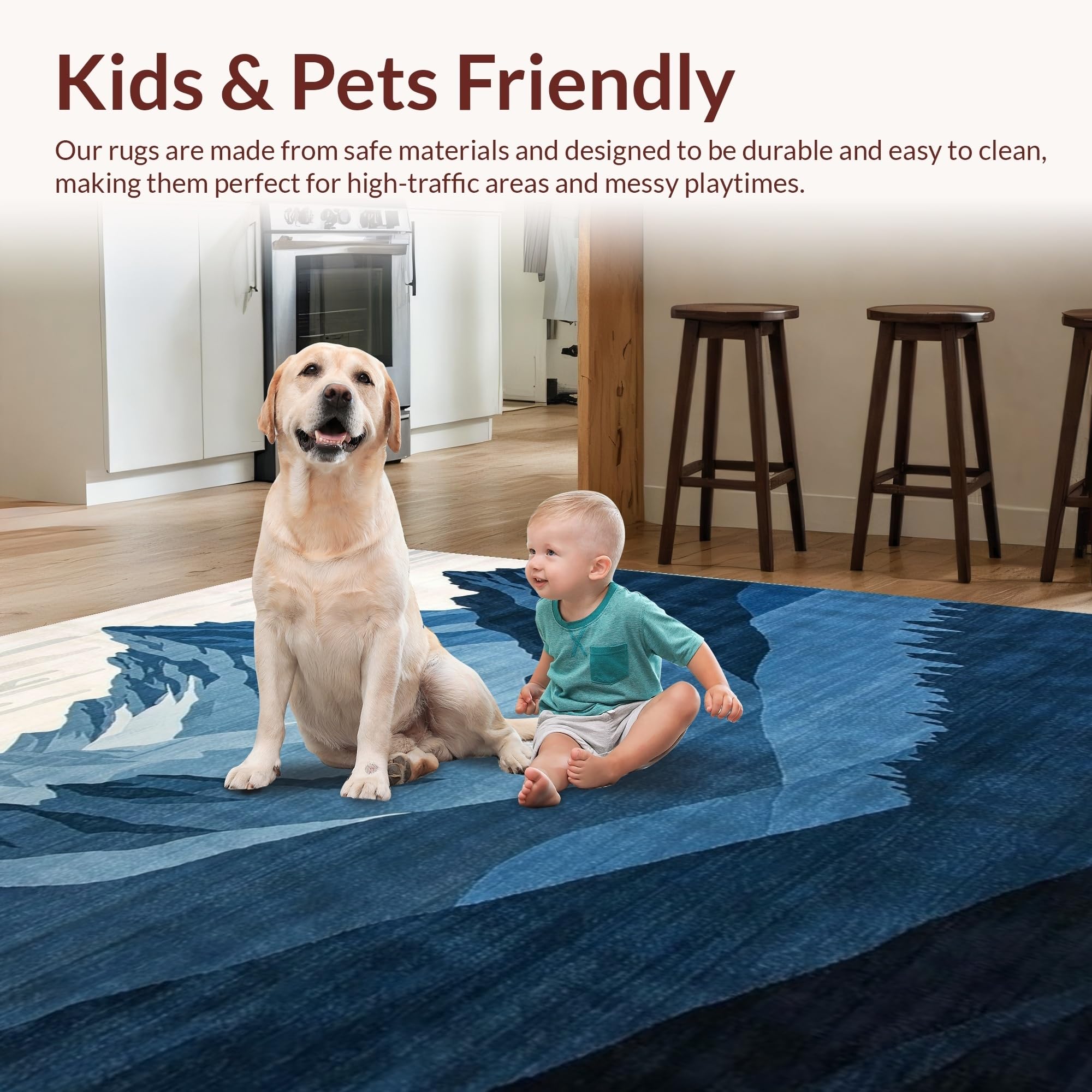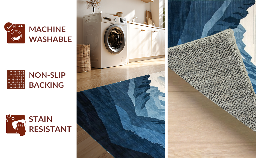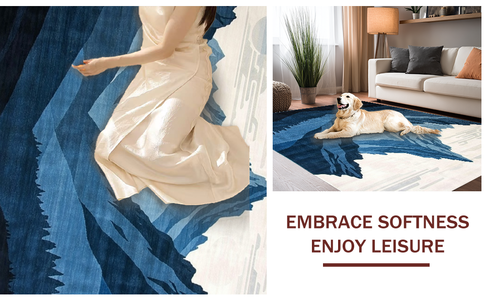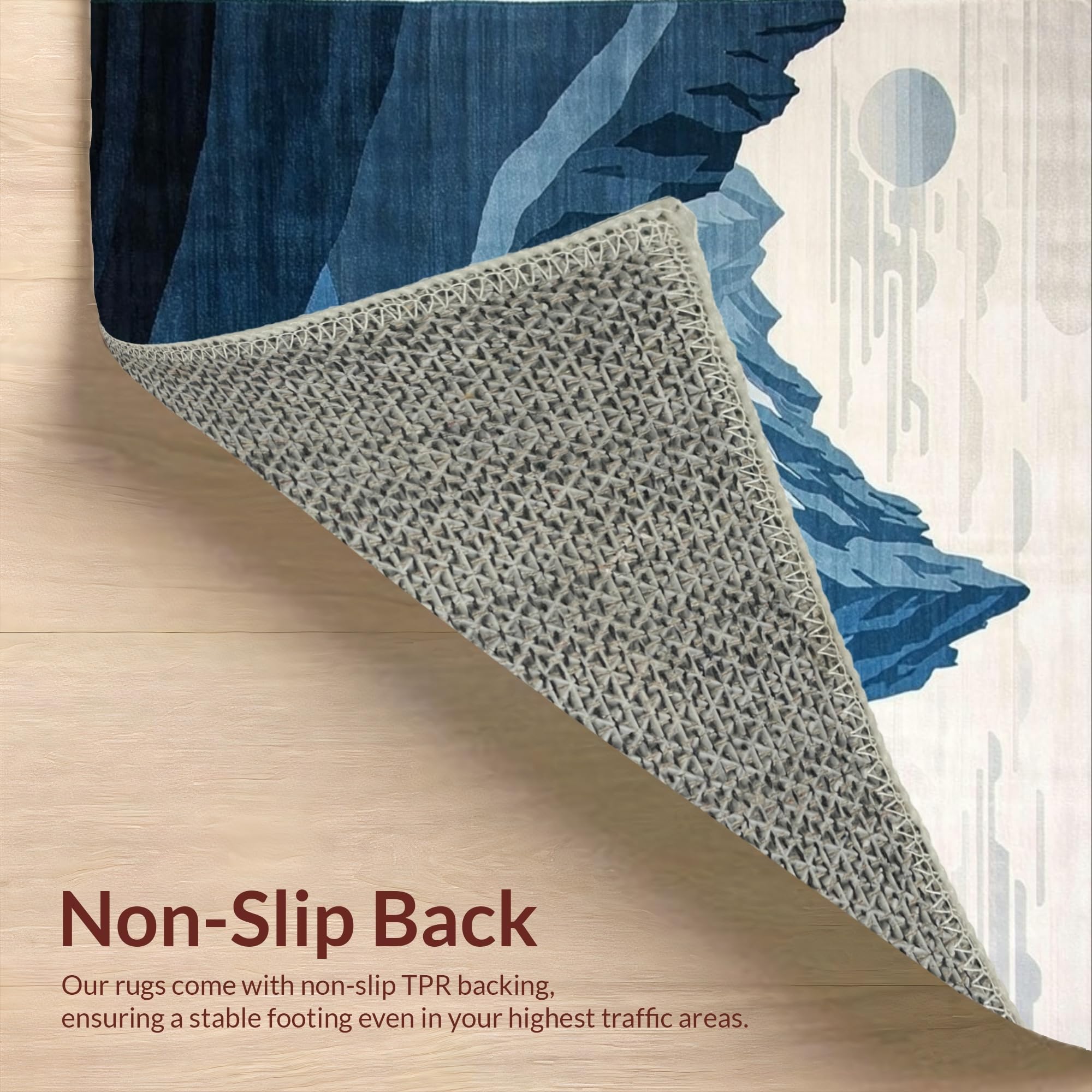 Ultra Soft Area Rug, Non Slip, Stain Resistant, Washable Area Rugs for Living Room, Bedroom, Contemporary Geometric Mountain Vibes(Blue) Overview:
