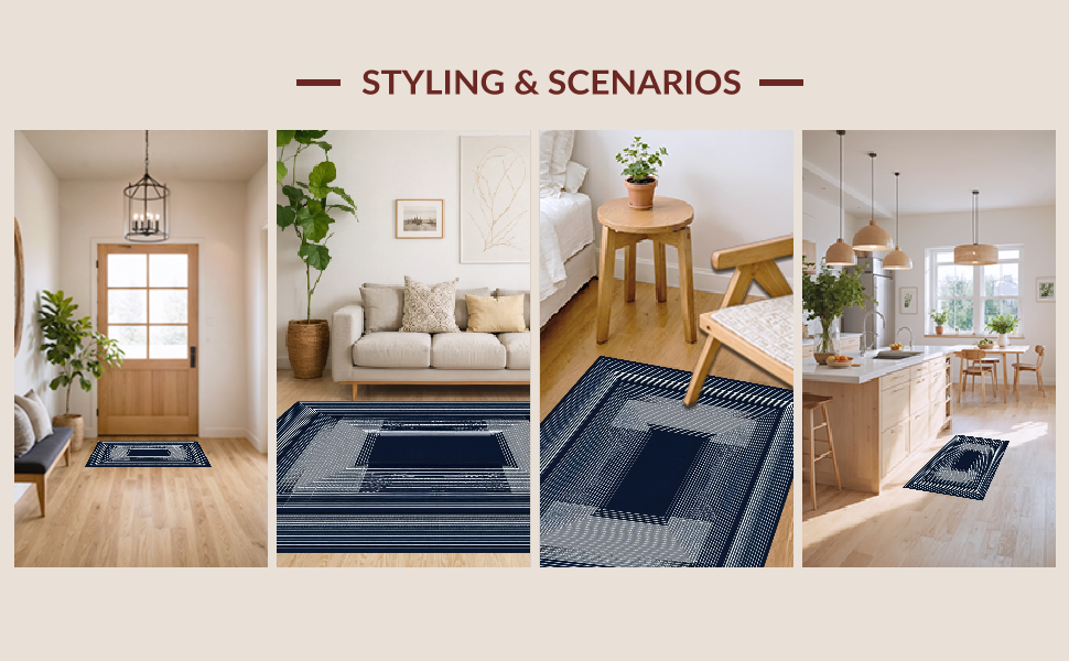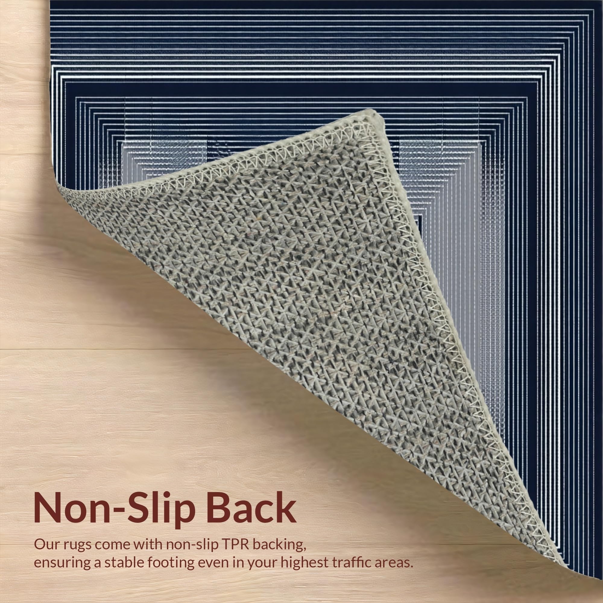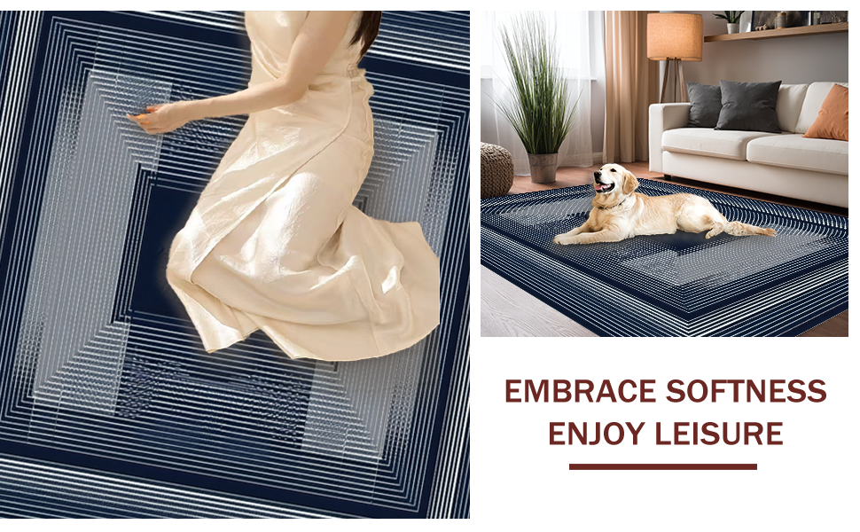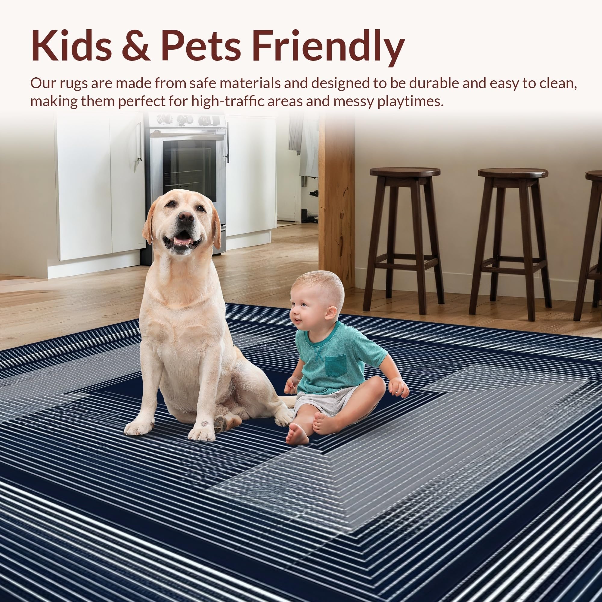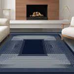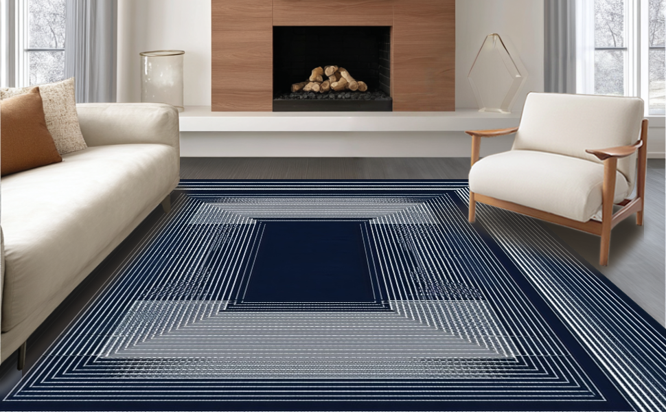 Ultra Soft Area Rug, Non Slip, Stain Resistant, Washable Area Rugs for Living Room, Bedroom, Contemporary Geometric Navy Elegance(Blue) Overview: