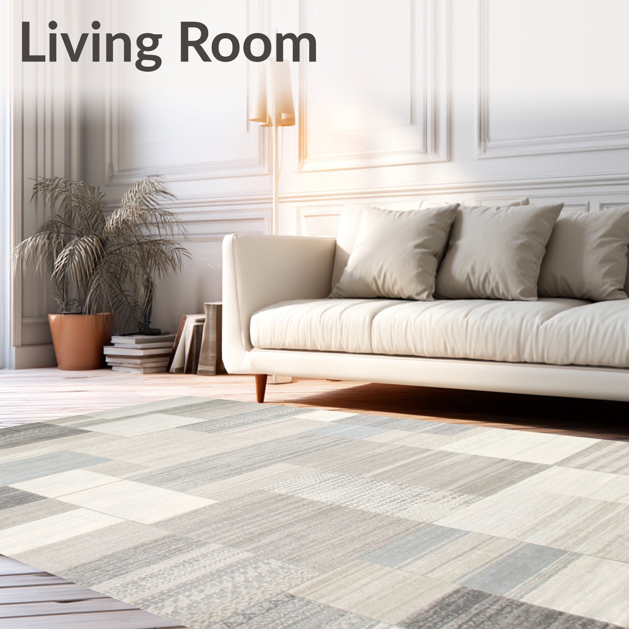 Ultra Soft Area Rug, Non Slip, Stain Resistant, Washable Area Rugs for Living Room, Bedroom, Contemporary Geometric Patchwork Area with Interlocking Beige Panels(Gray) Overview:
