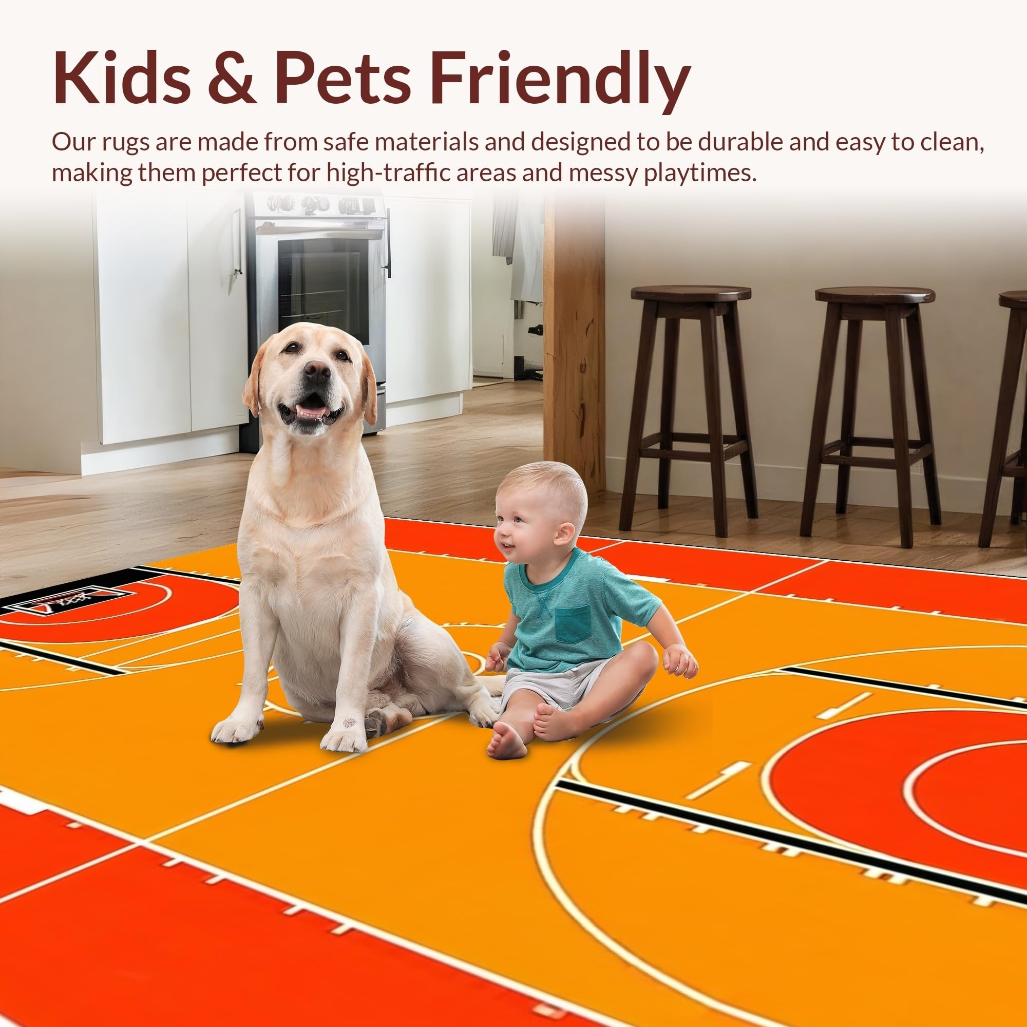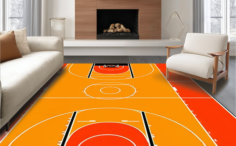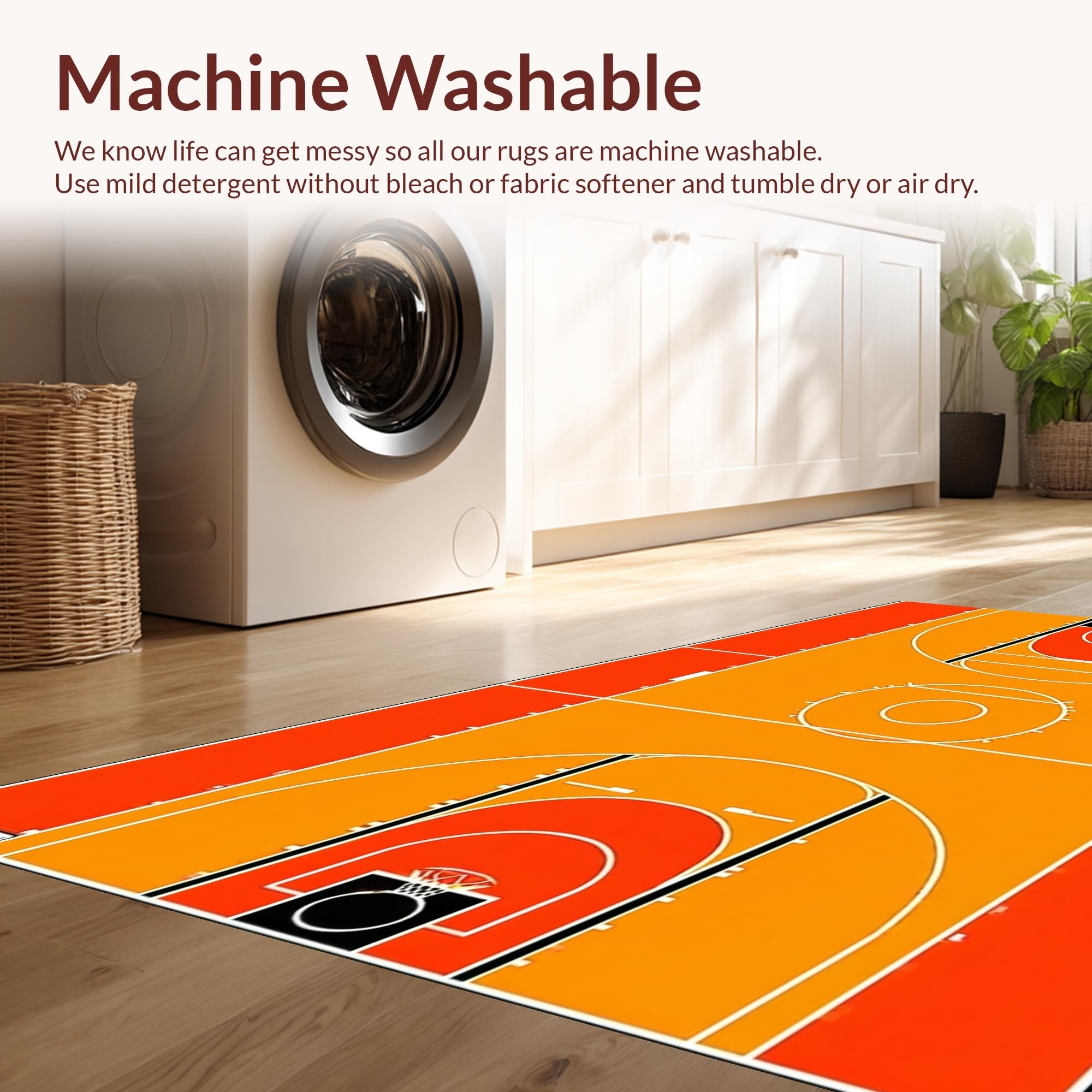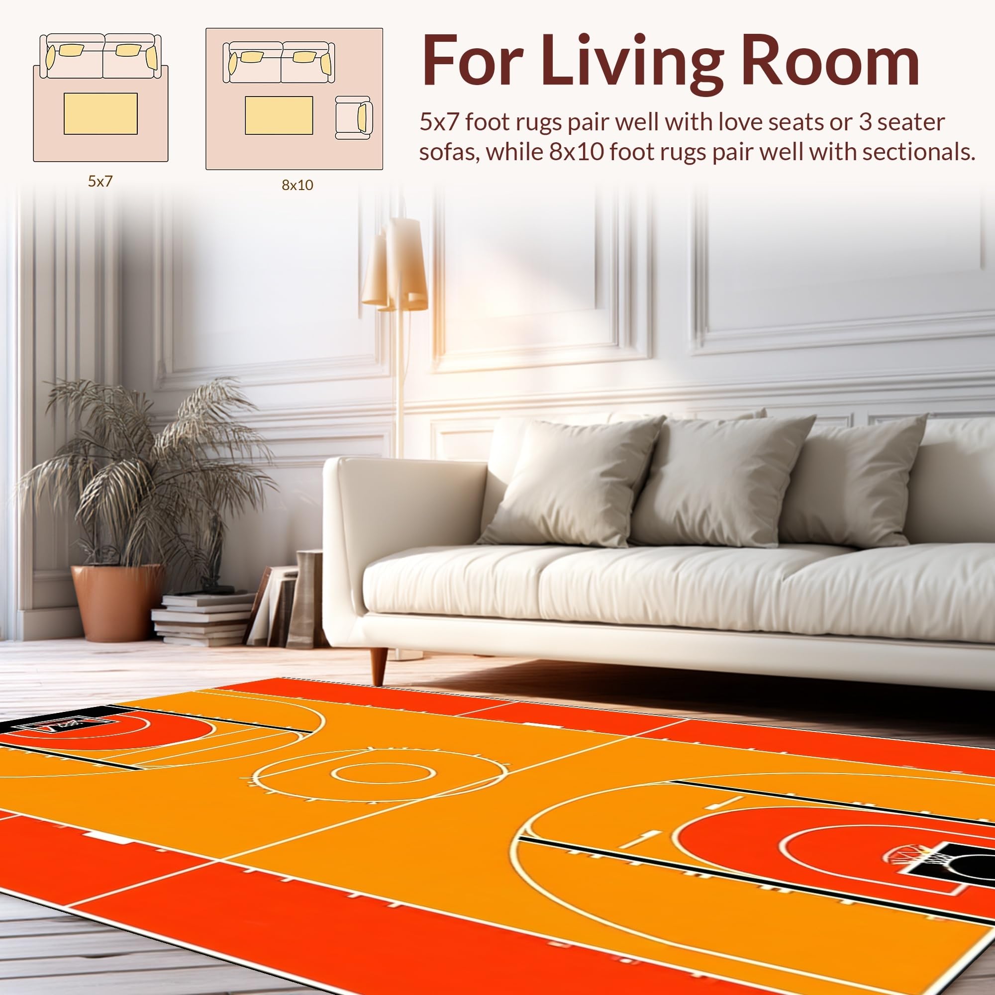 Ultra Soft Area Rug, Non Slip, Stain Resistant, Washable Area Rugs for Living Room, Bedroom, Contemporary Graphic Sports Appeal(Orange) Overview: