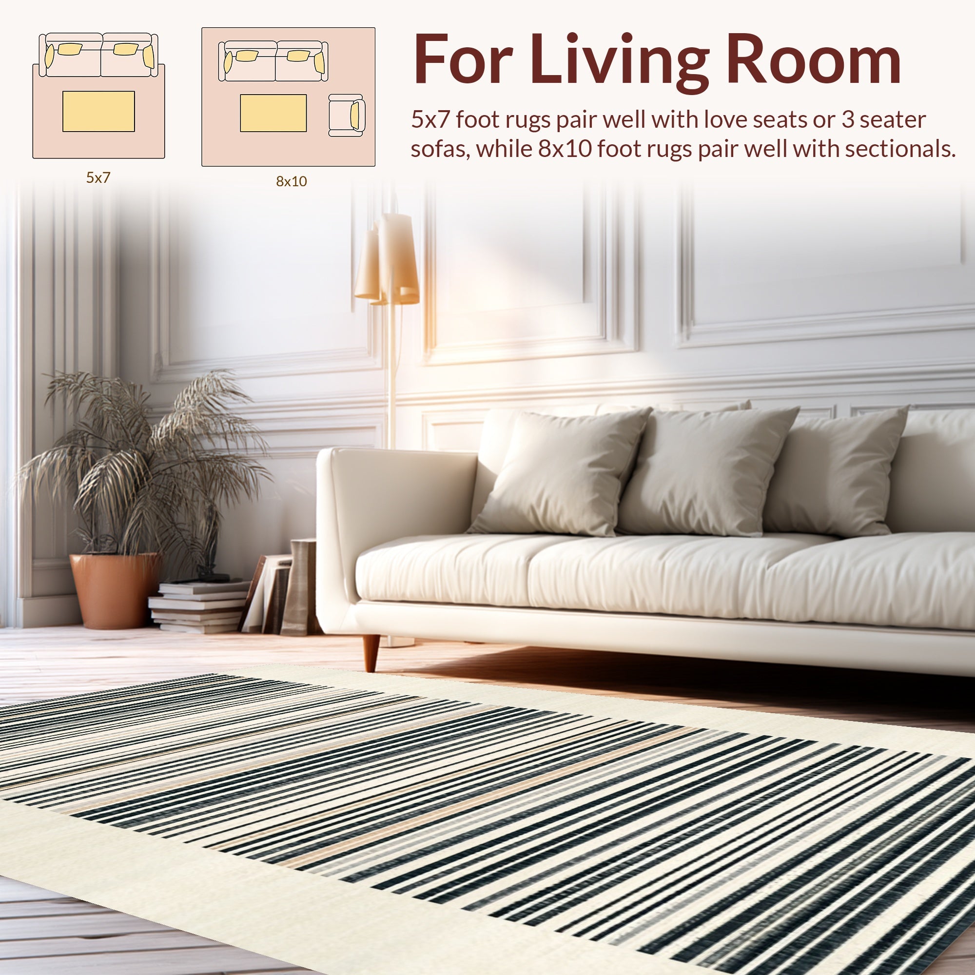 Ultra Soft Area Rug, Non Slip, Stain Resistant, Washable Area Rugs for Living Room, Bedroom, Contemporary Graphic Stripe Runner Rug in Black and White Contrast(Beige) Overview: