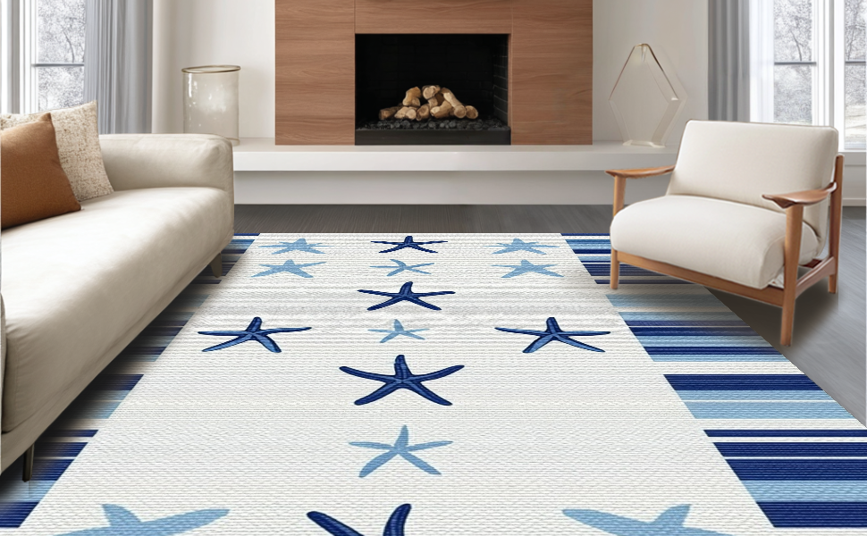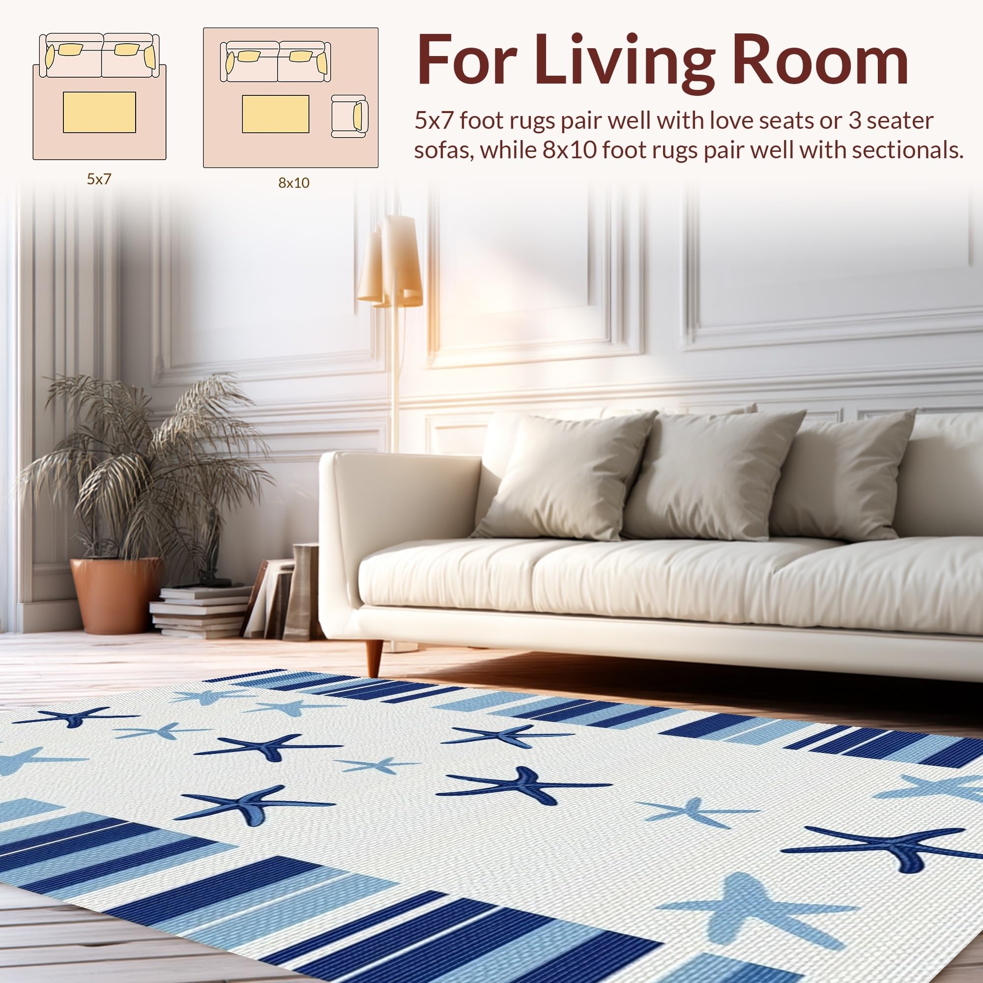 Ultra Soft Area Rug, Non Slip, Stain Resistant, Washable Area Rugs for Living Room, Bedroom, Contemporary Gray and Blue Design(Blue) Overview: