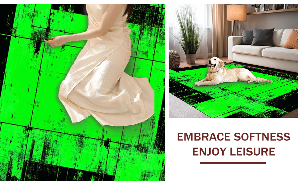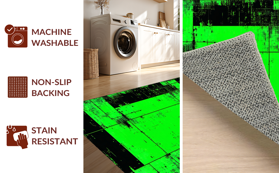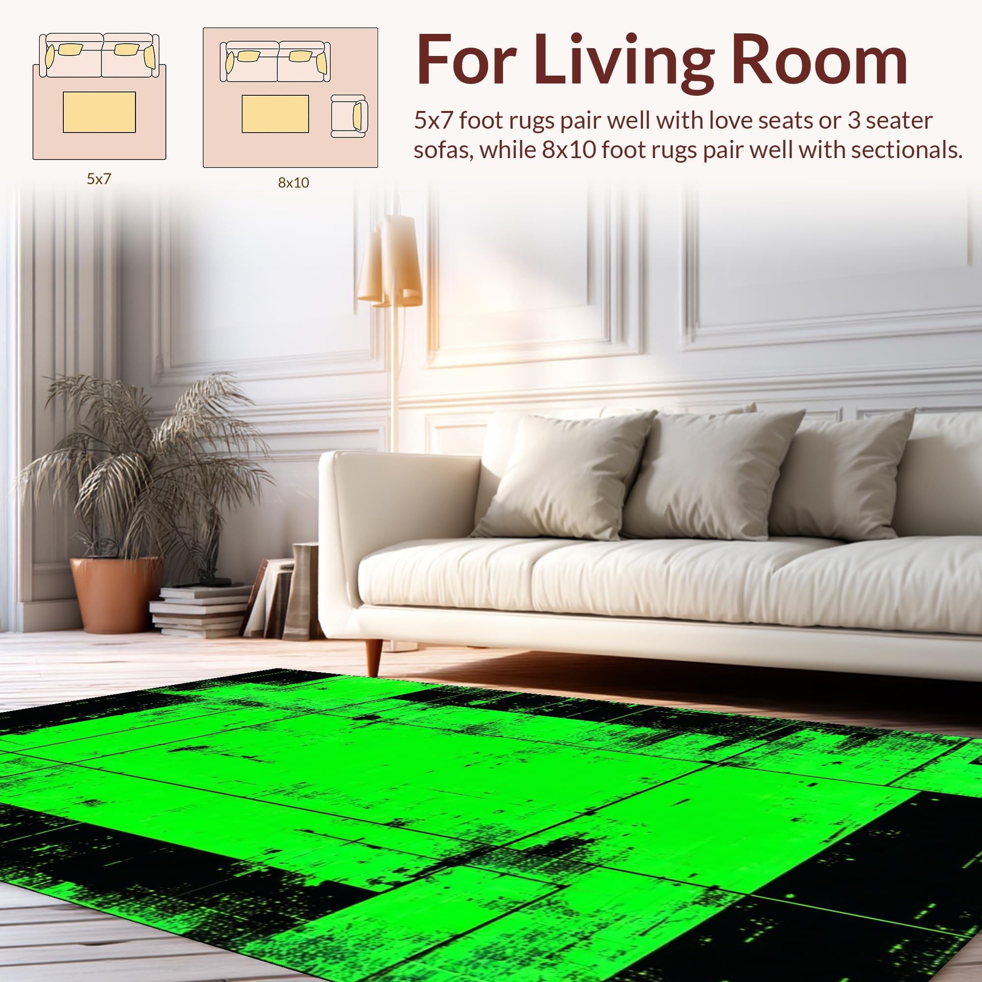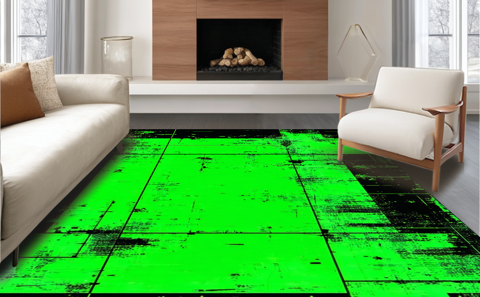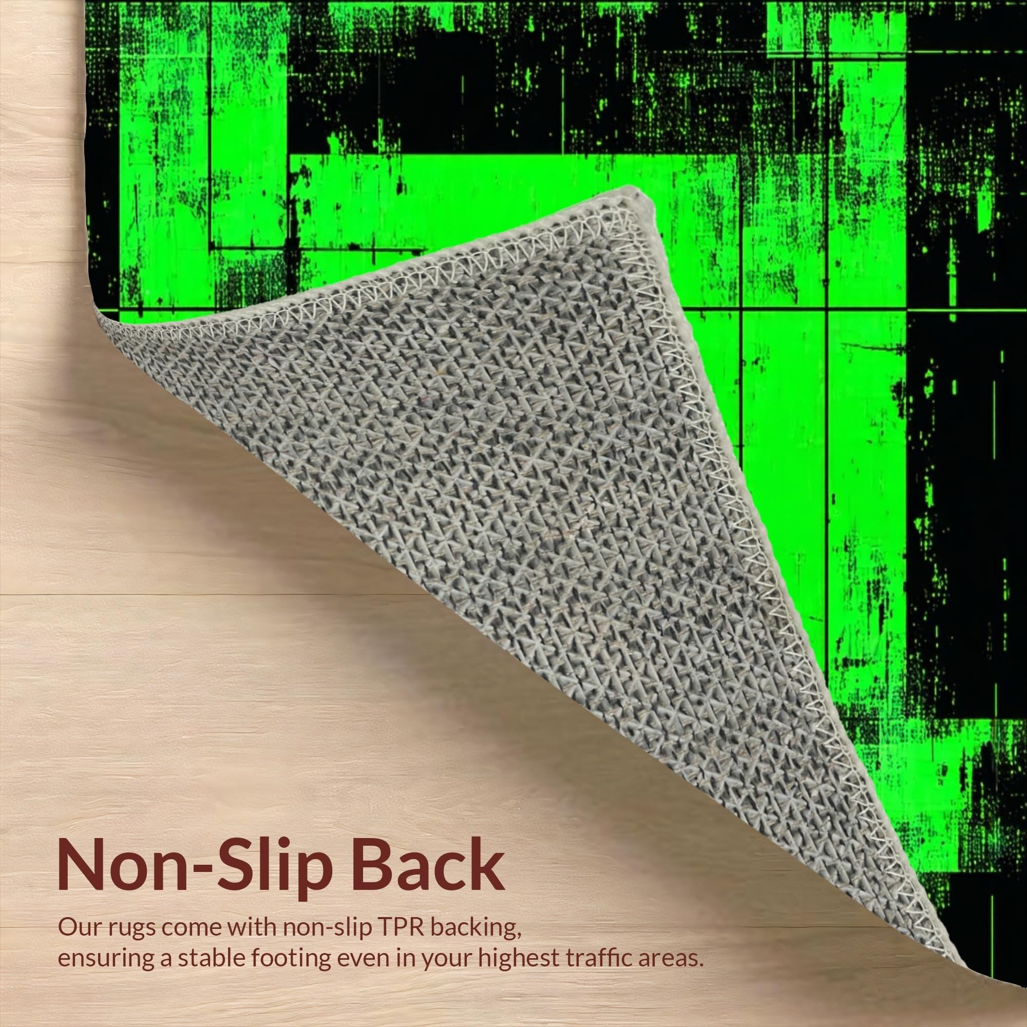 Ultra Soft Area Rug, Non Slip, Stain Resistant, Washable Area Rugs for Living Room, Bedroom, Contemporary Green Black Checkerboard Motif(Green) Overview: