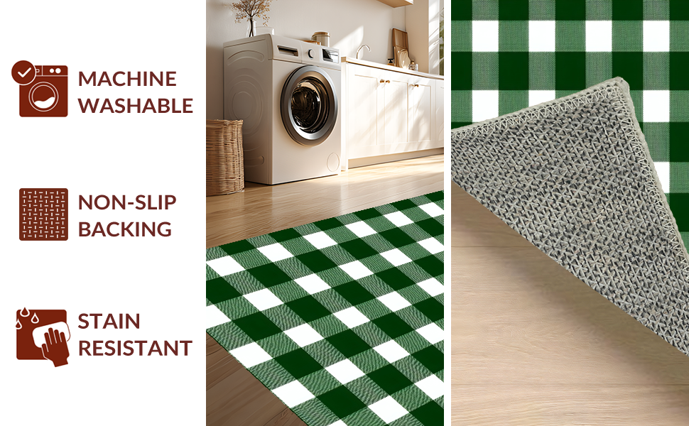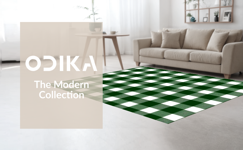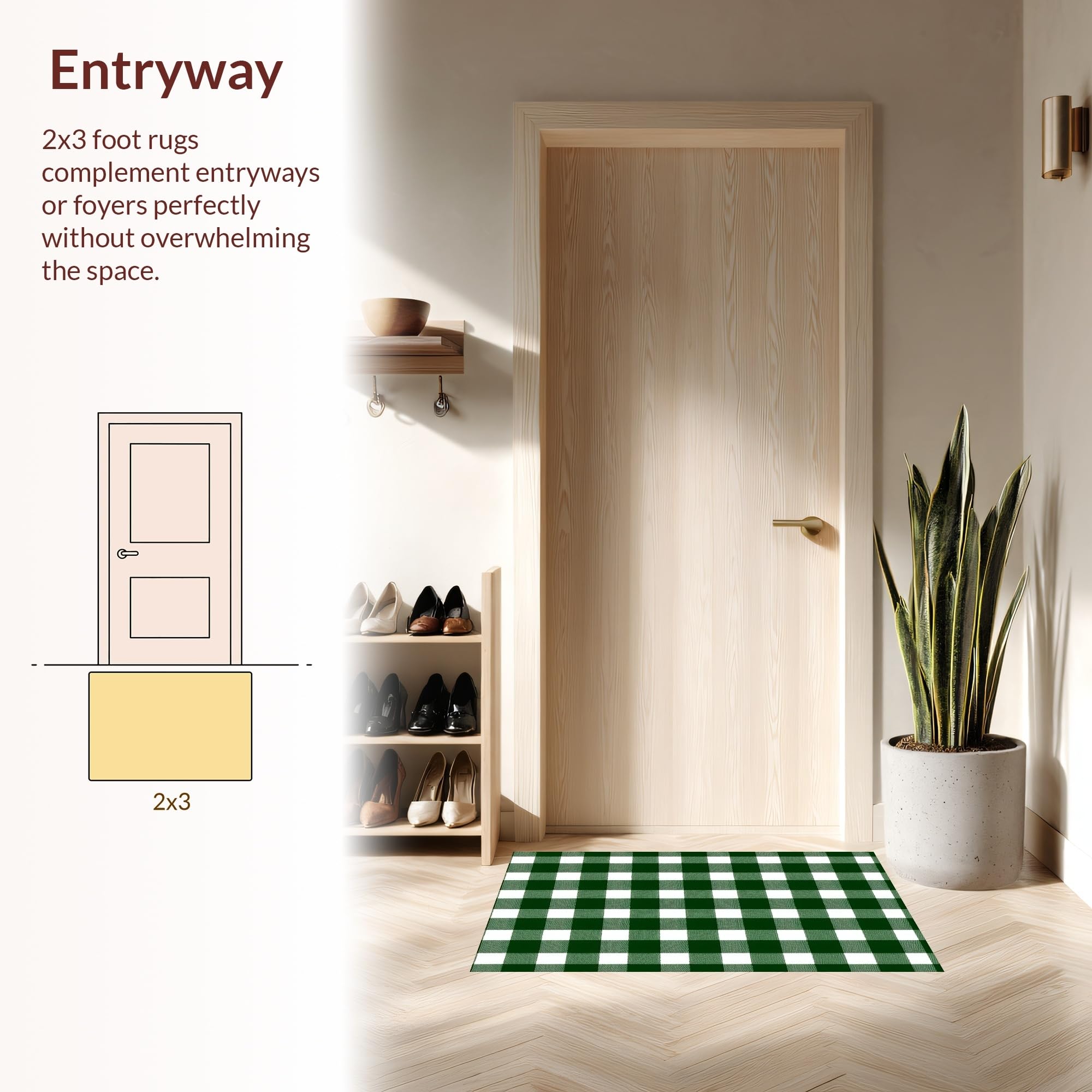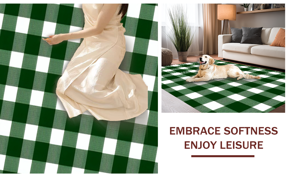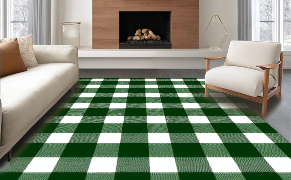 Ultra Soft Area Rug, Non Slip, Stain Resistant, Washable Area Rugs for Living Room, Bedroom, Contemporary Green Tartan Vibe(Green) Overview: