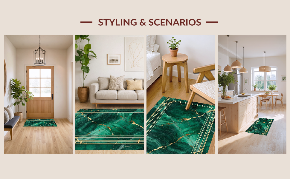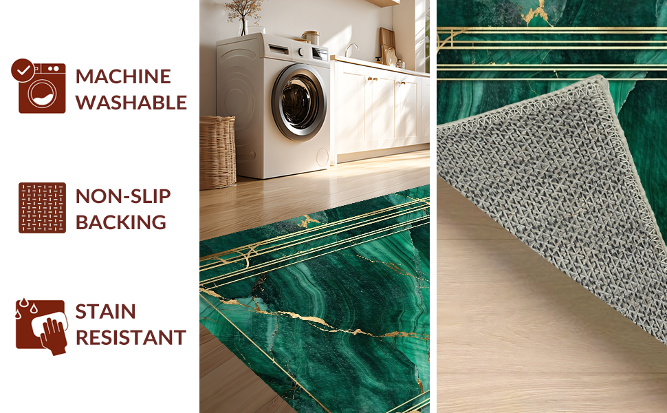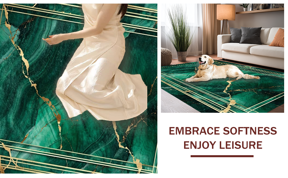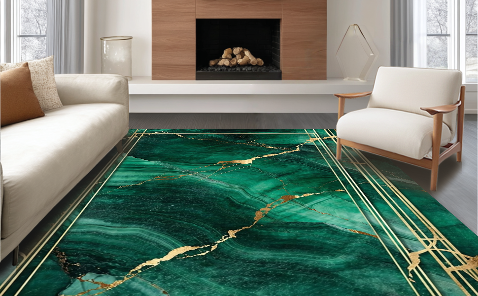 Ultra Soft Area Rug, Non Slip, Stain Resistant, Washable Area Rugs for Living Room, Bedroom, Contemporary Green Veined Elegance(Green) Overview: