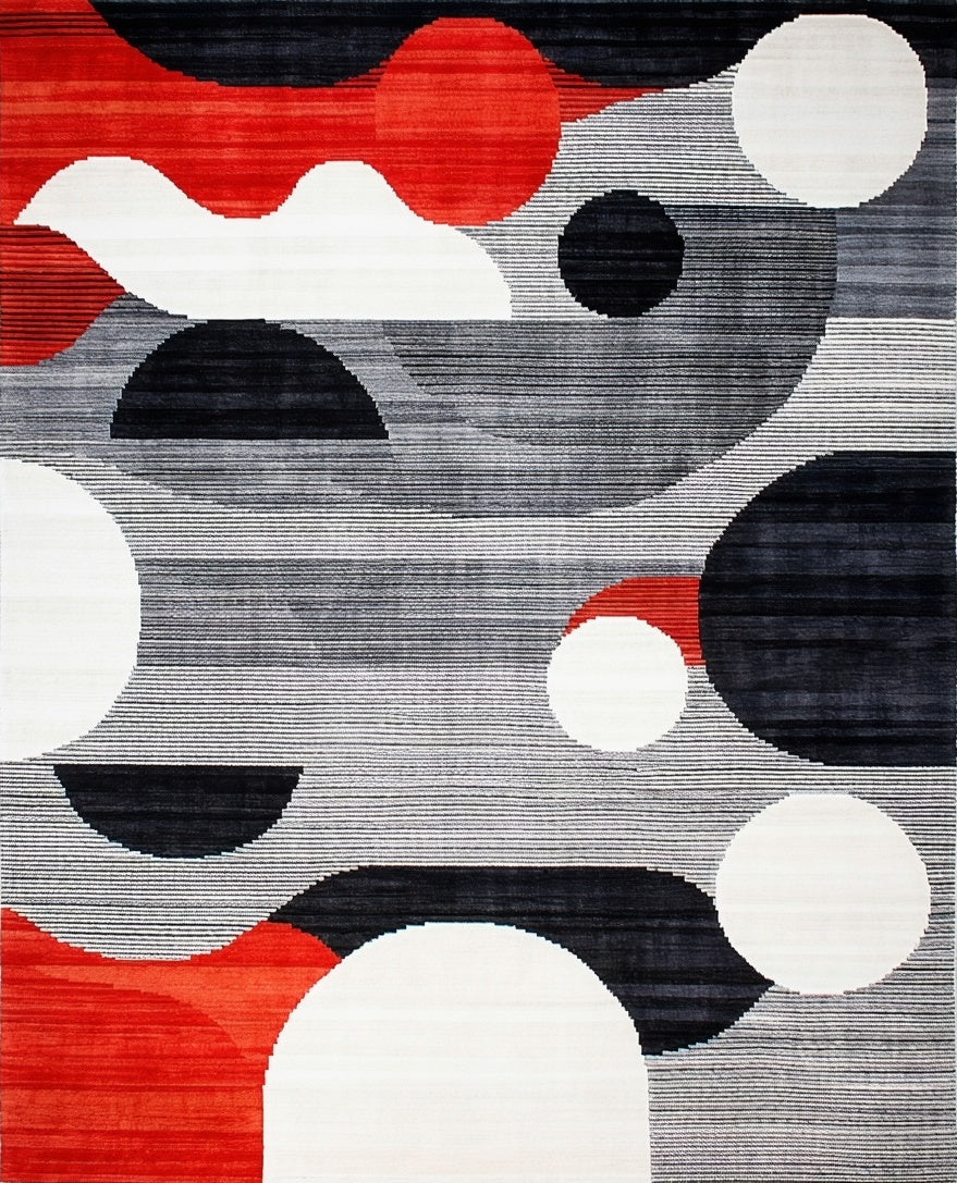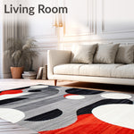 Contemporary Grey Black Red White Abstract Design Carpet(Gray)