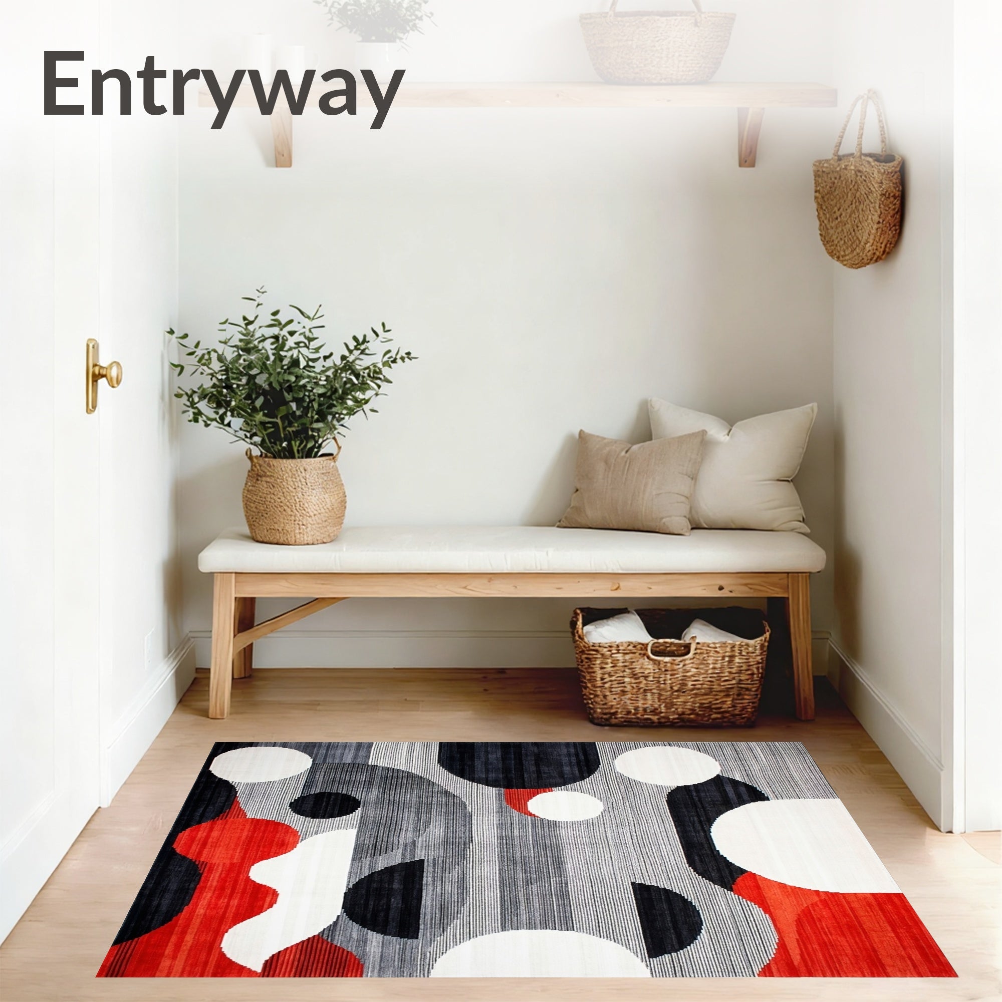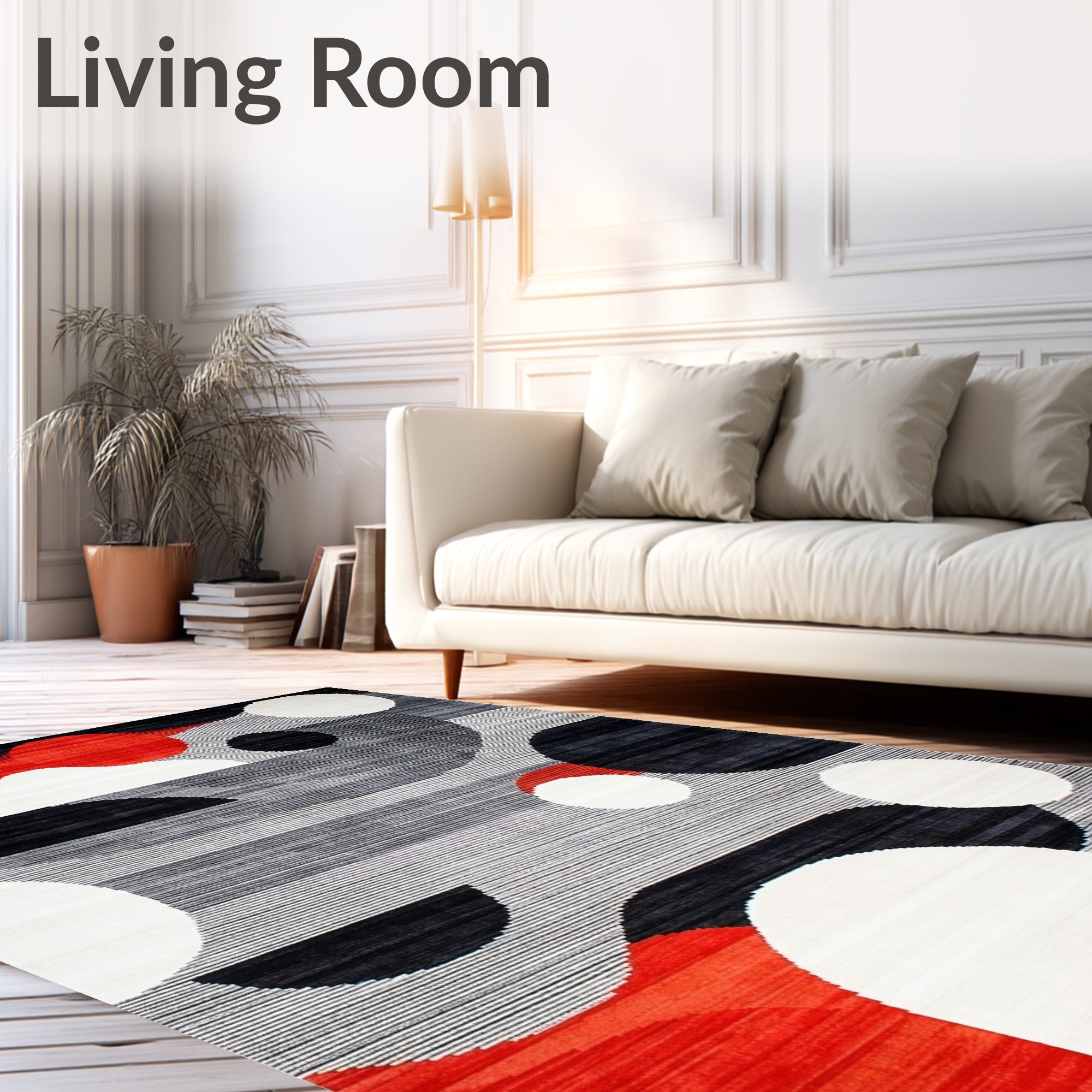 Ultra Soft Area Rug, Non Slip, Stain Resistant, Washable Area Rugs for Living Room, Bedroom, Contemporary Grey Black Red White Abstract Design Carpet(Gray) Overview: