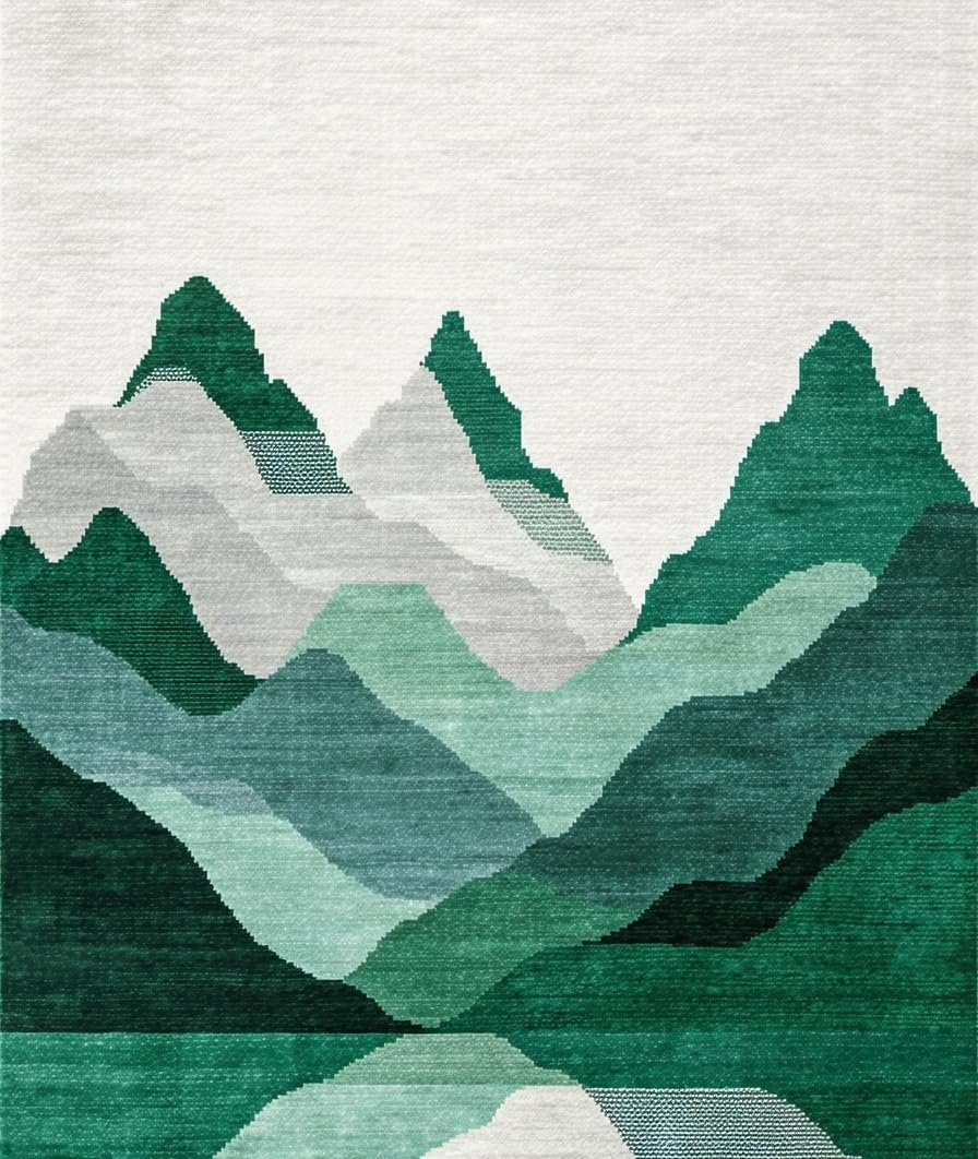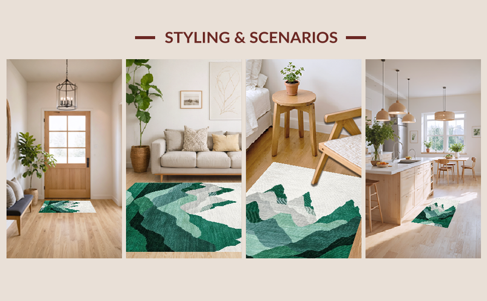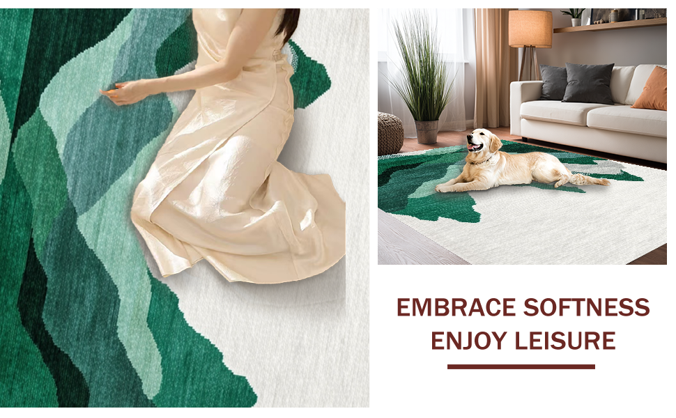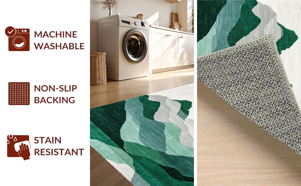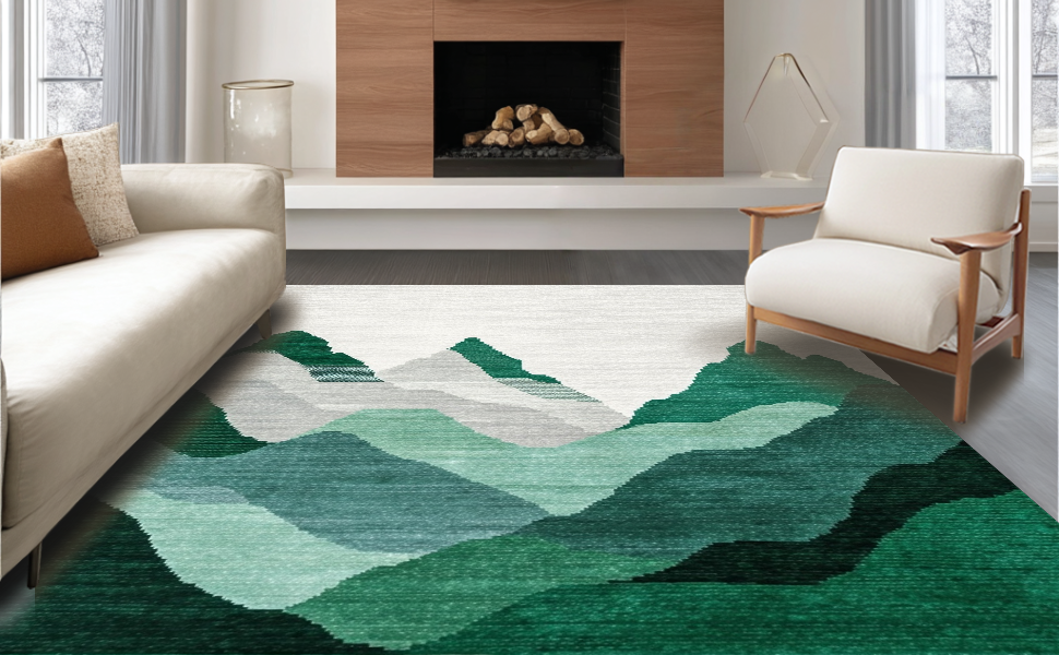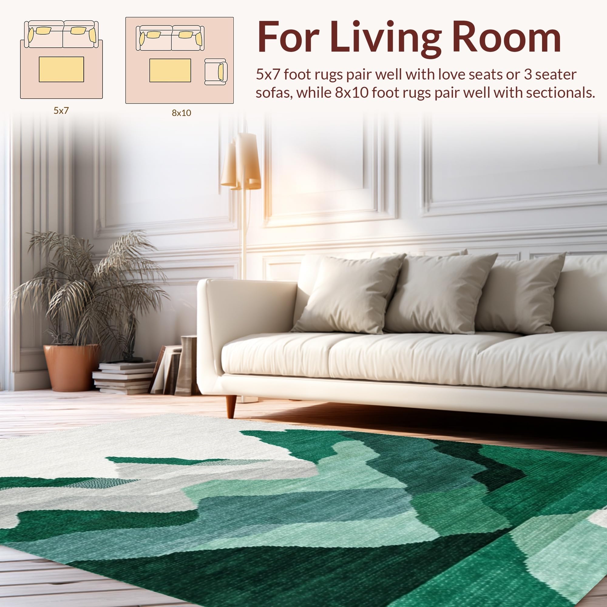 Ultra Soft Area Rug, Non Slip, Stain Resistant, Washable Area Rugs for Living Room, Bedroom, Contemporary Grey Geometric Aesthetics(Green) Overview: