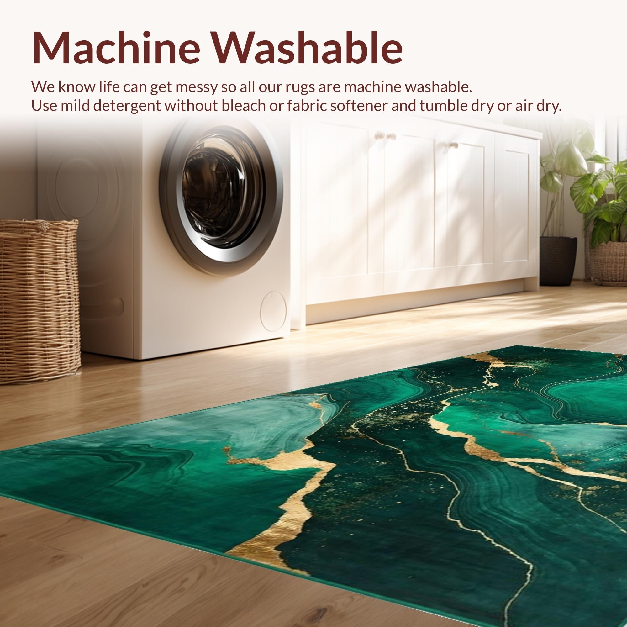 - Machine Washable: Our rugs can be easily thrown in the wash machine.