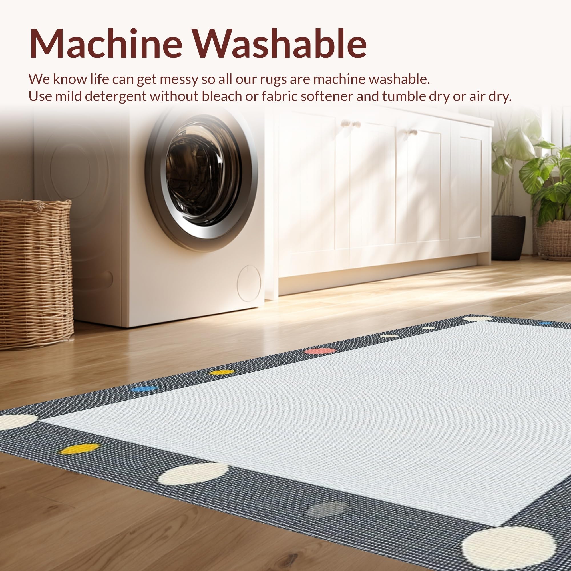 - Machine Washable: Our rugs can be easily thrown in the wash machine.