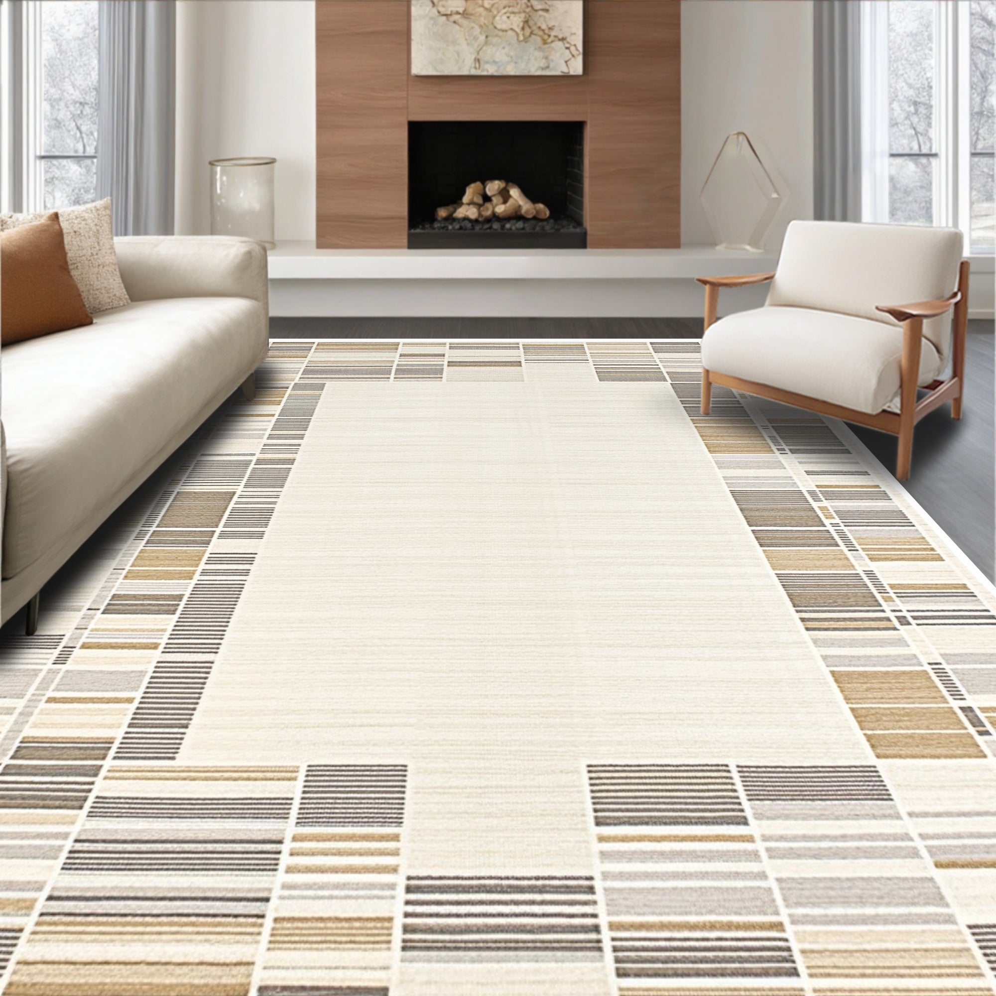Ultra Soft Area Rug, Non Slip, Stain Resistant, Washable Area Rugs for Living Room, Bedroom, Contemporary Grid Beige Ivory for Chic Interior Spaces(Beige) Overview: