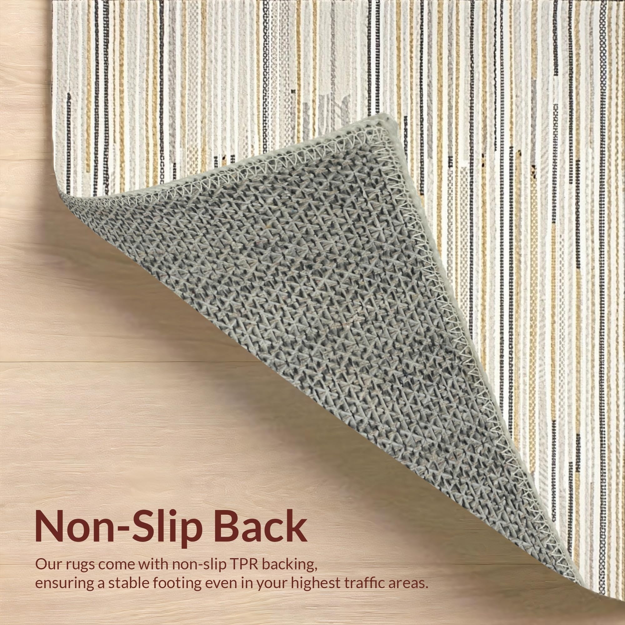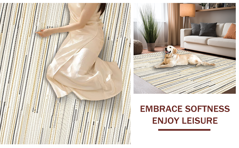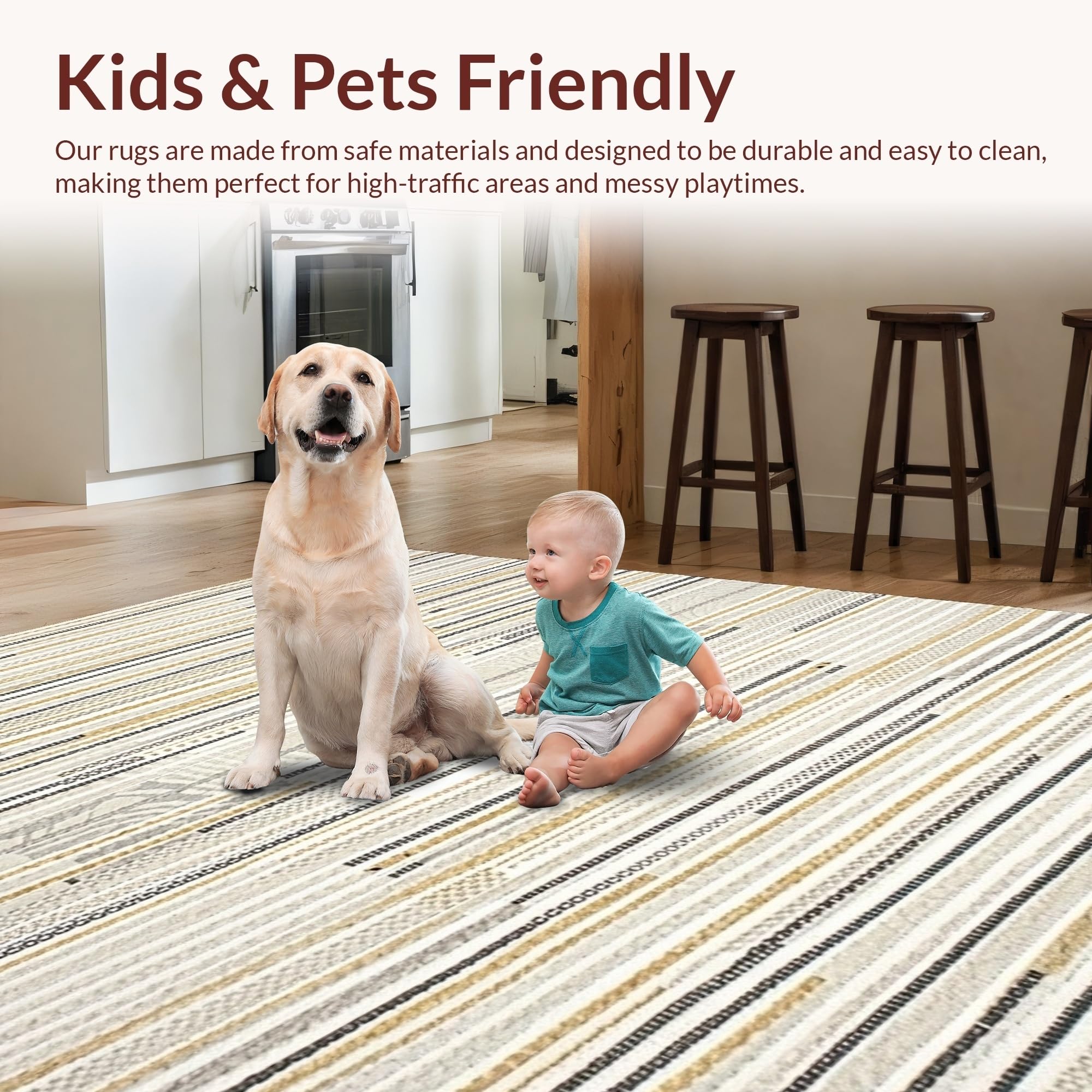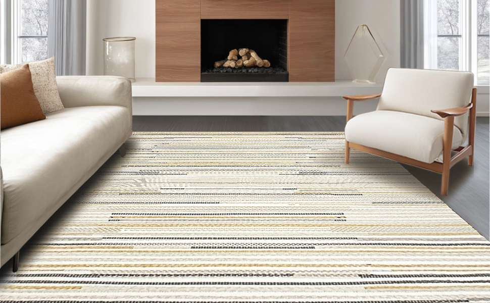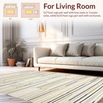 Ultra Soft Area Rug, Non Slip, Stain Resistant, Washable Area Rugs for Living Room, Bedroom, Contemporary Groovy Linear Aesthetic(Beige) Overview:
