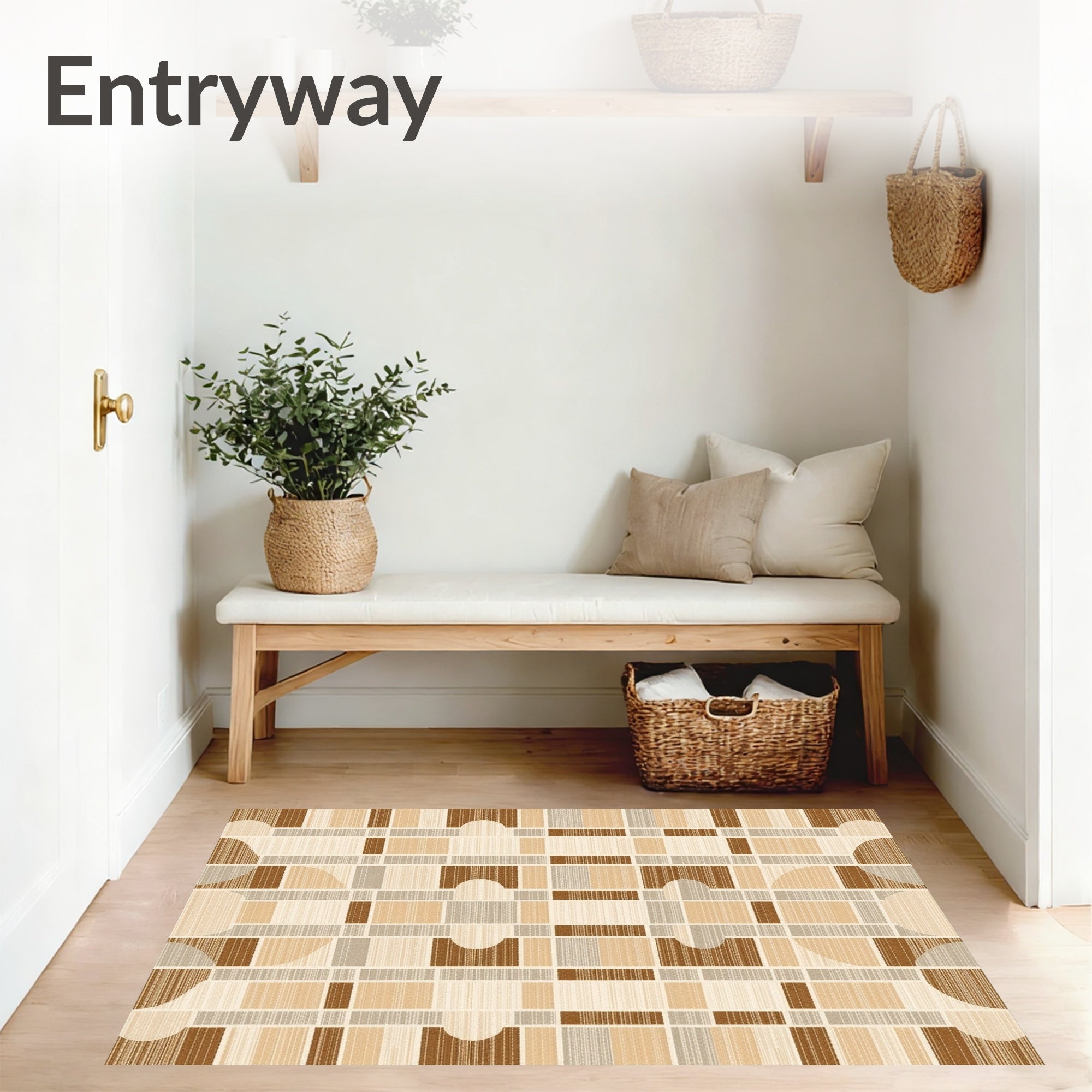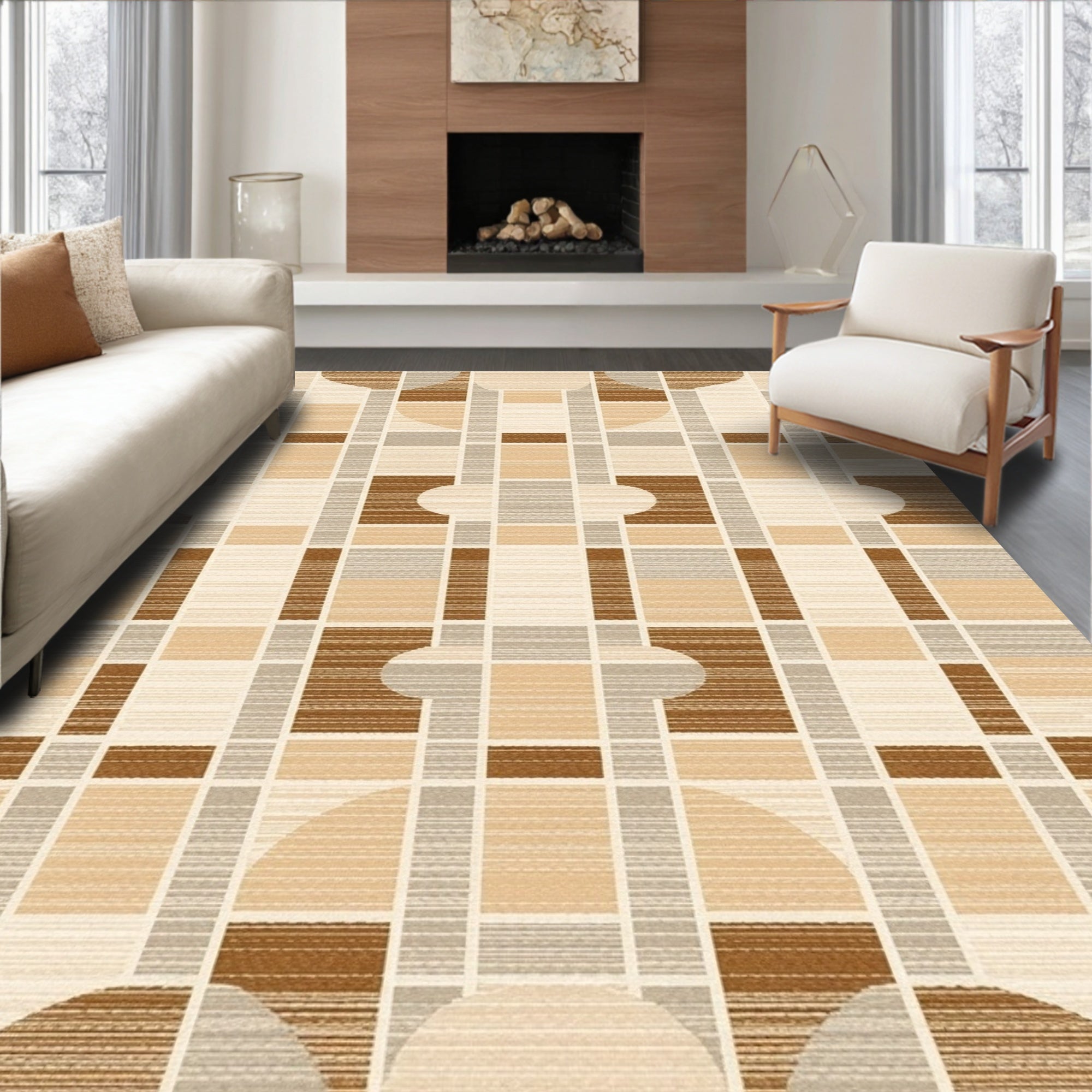 Ultra Soft Area Rug, Non Slip, Stain Resistant, Washable Area Rugs for Living Room, Bedroom, Contemporary Hand Carved Area Beige & Brown Geometric Design(Beige) Overview:
