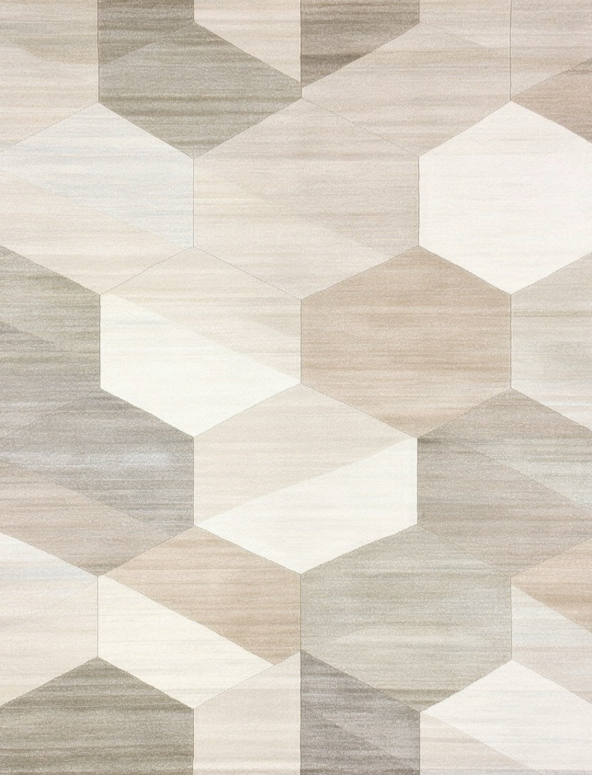 Contemporary Handcrafted Area with Interlocking Hexagon(Beige)