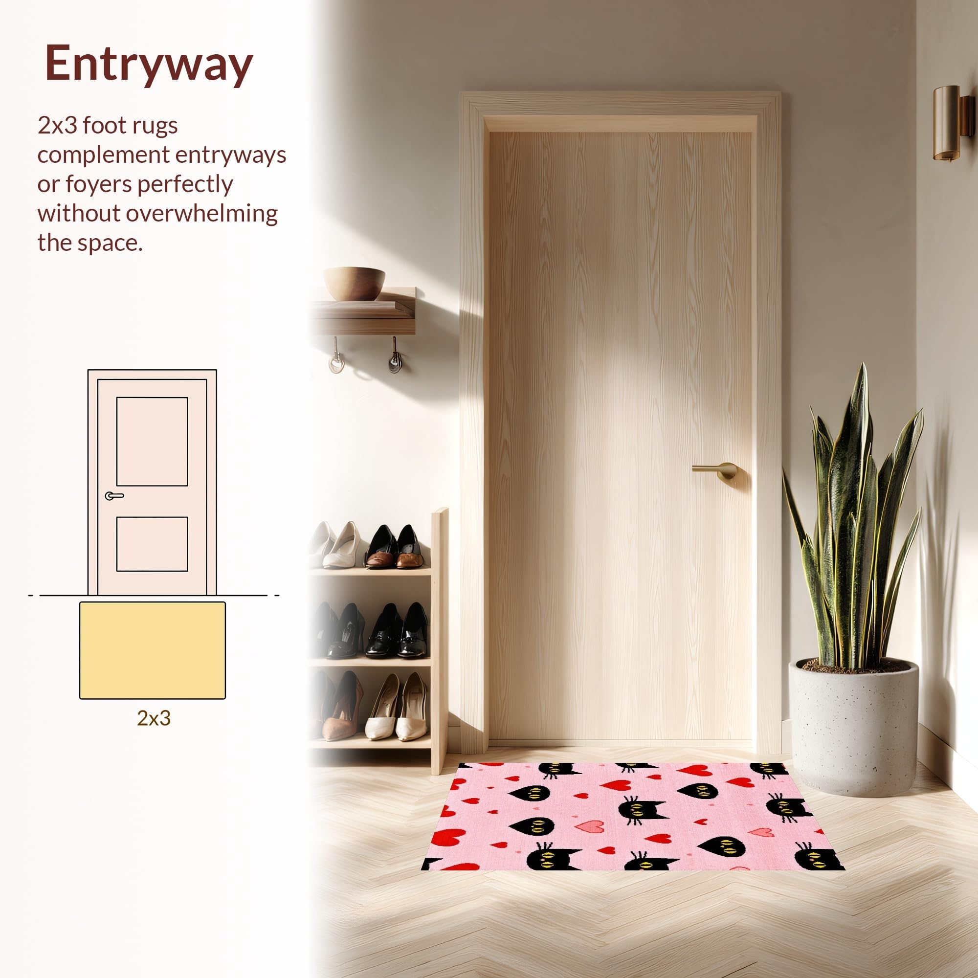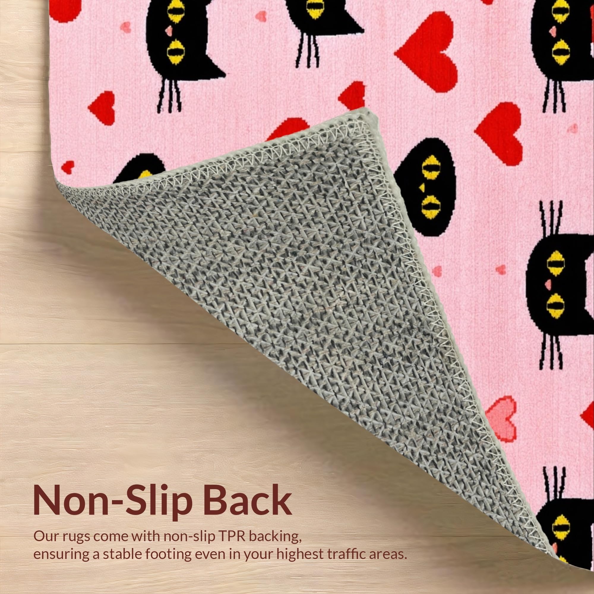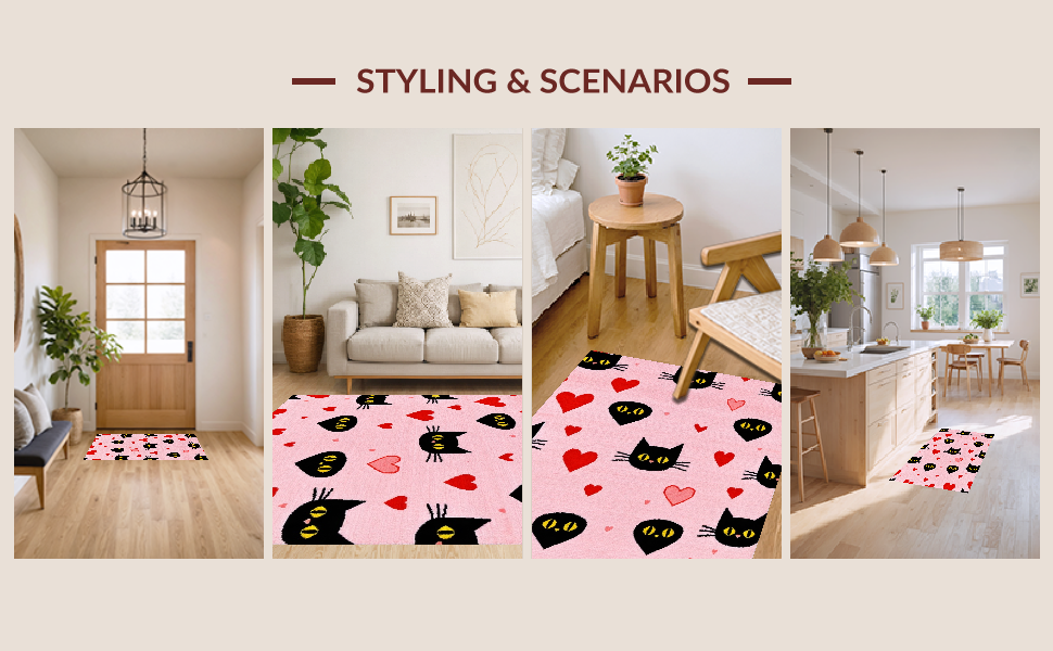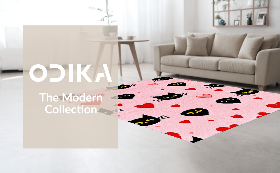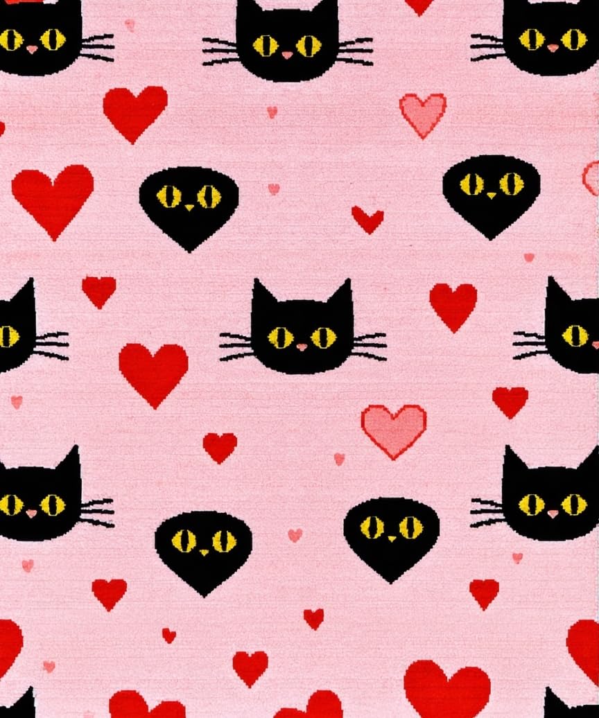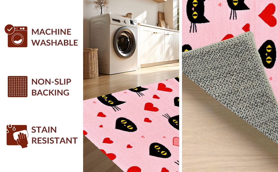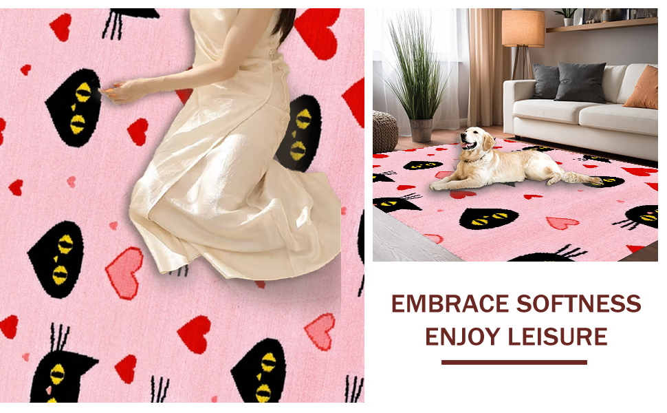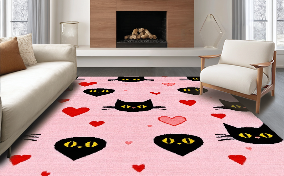 Ultra Soft Area Rug, Non Slip, Stain Resistant, Washable Area Rugs for Living Room, Bedroom, Contemporary Heartfelt Cat Design(Pink) Overview: