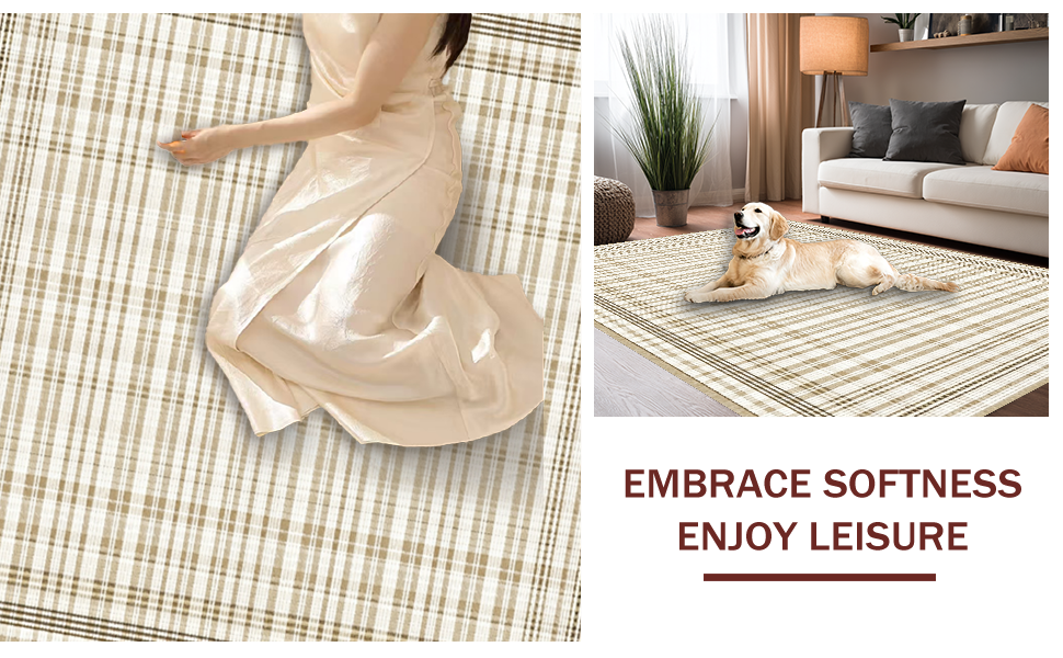 Ultra Soft Area Rug, Non Slip, Stain Resistant, Washable Area Rugs for Living Room, Bedroom, Contemporary High-Low Geometric Elegance(Beige) Overview: