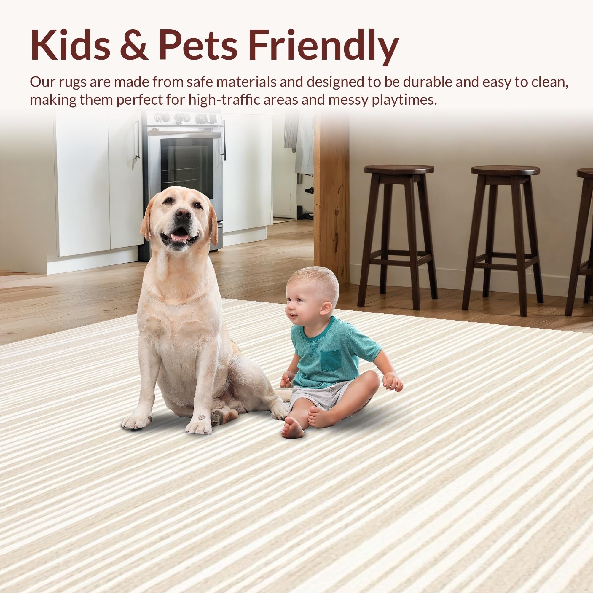 Ultra Soft Area Rug, Non Slip, Stain Resistant, Washable Area Rugs for Living Room, Bedroom, Contemporary High-Low Textured Design(Beige) Overview:
