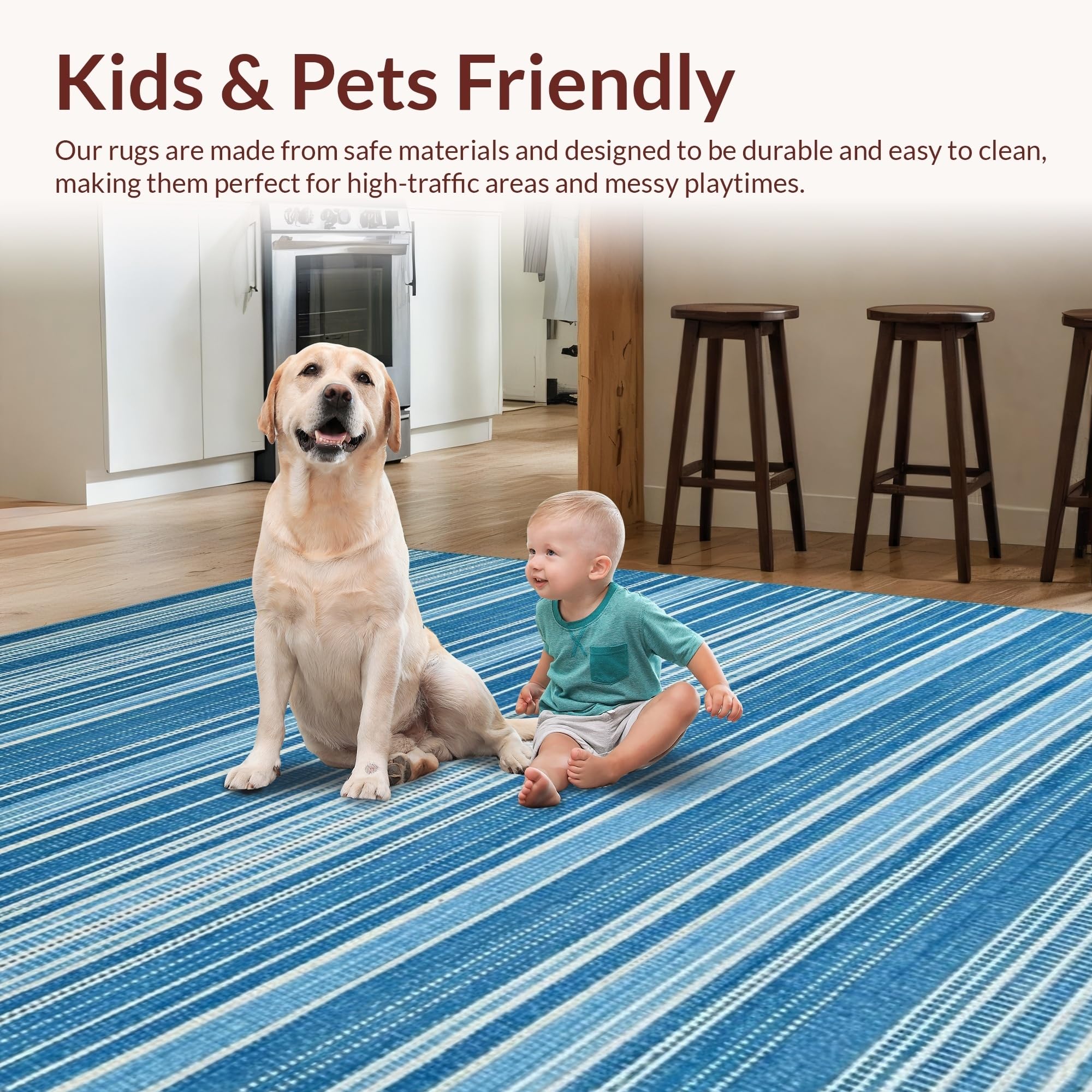 Ultra Soft Area Rug, Non Slip, Stain Resistant, Washable Area Rugs for Living Room, Bedroom, Contemporary High Traffic Comfort(Blue) Overview: