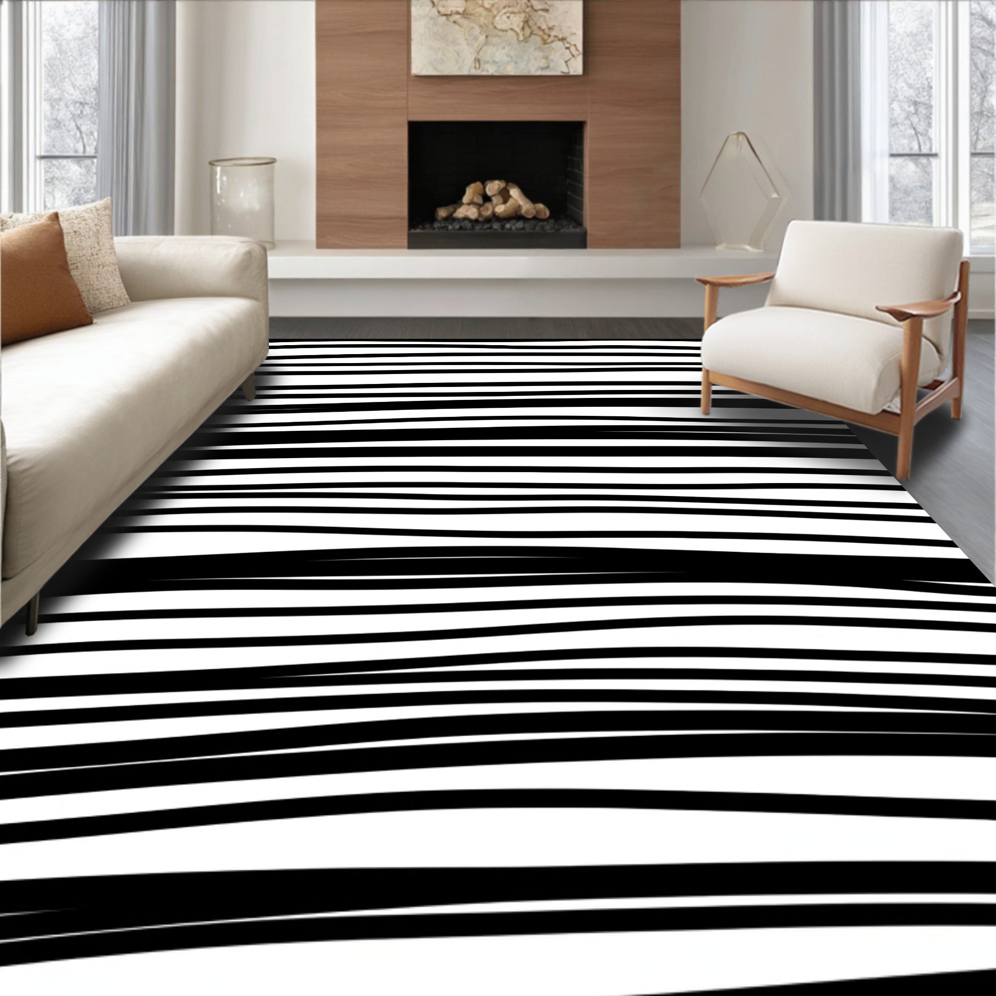 Ultra Soft Area Rug, Non Slip, Stain Resistant, Washable Area Rugs for Living Room, Bedroom, Contemporary Horizontal Band with Bold Contrast(Black) Overview:
