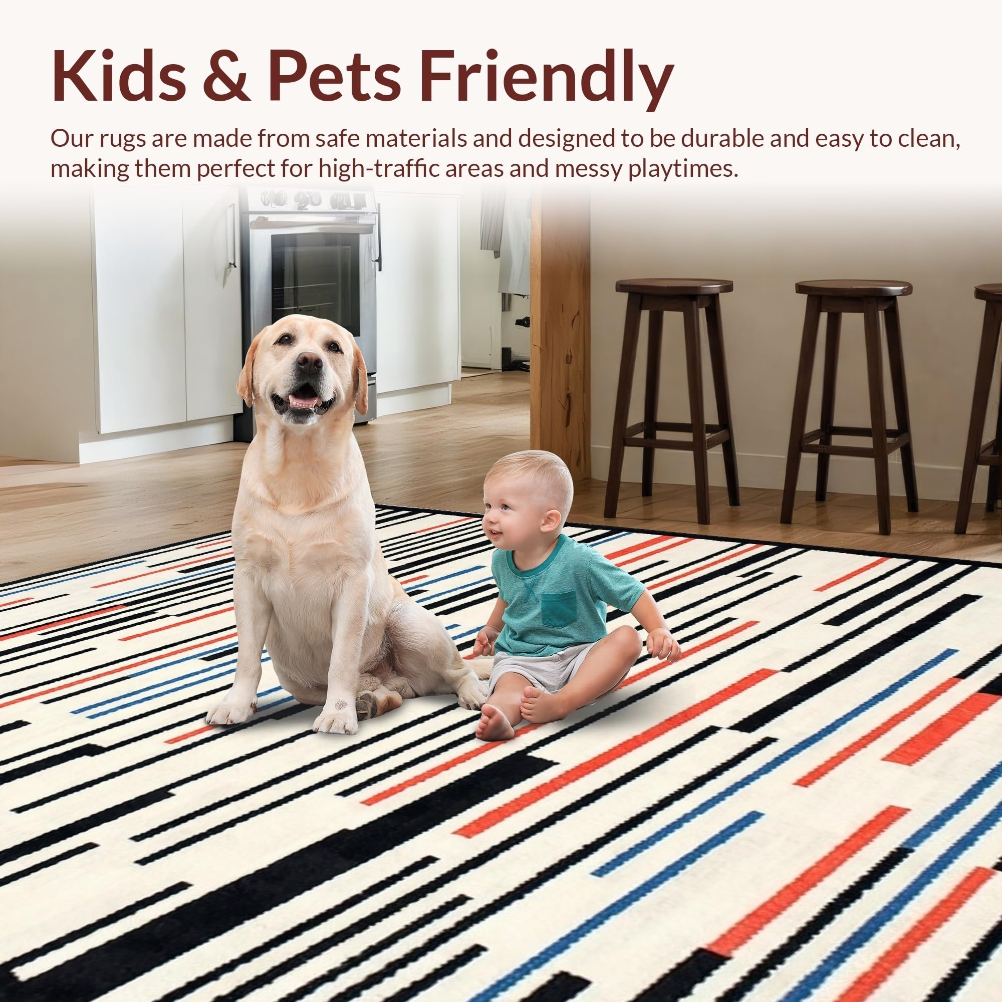 Ultra Soft Area Rug, Non Slip, Stain Resistant, Washable Area Rugs for Living Room, Bedroom, Contemporary Humor-Focused Motif(Black) Overview: