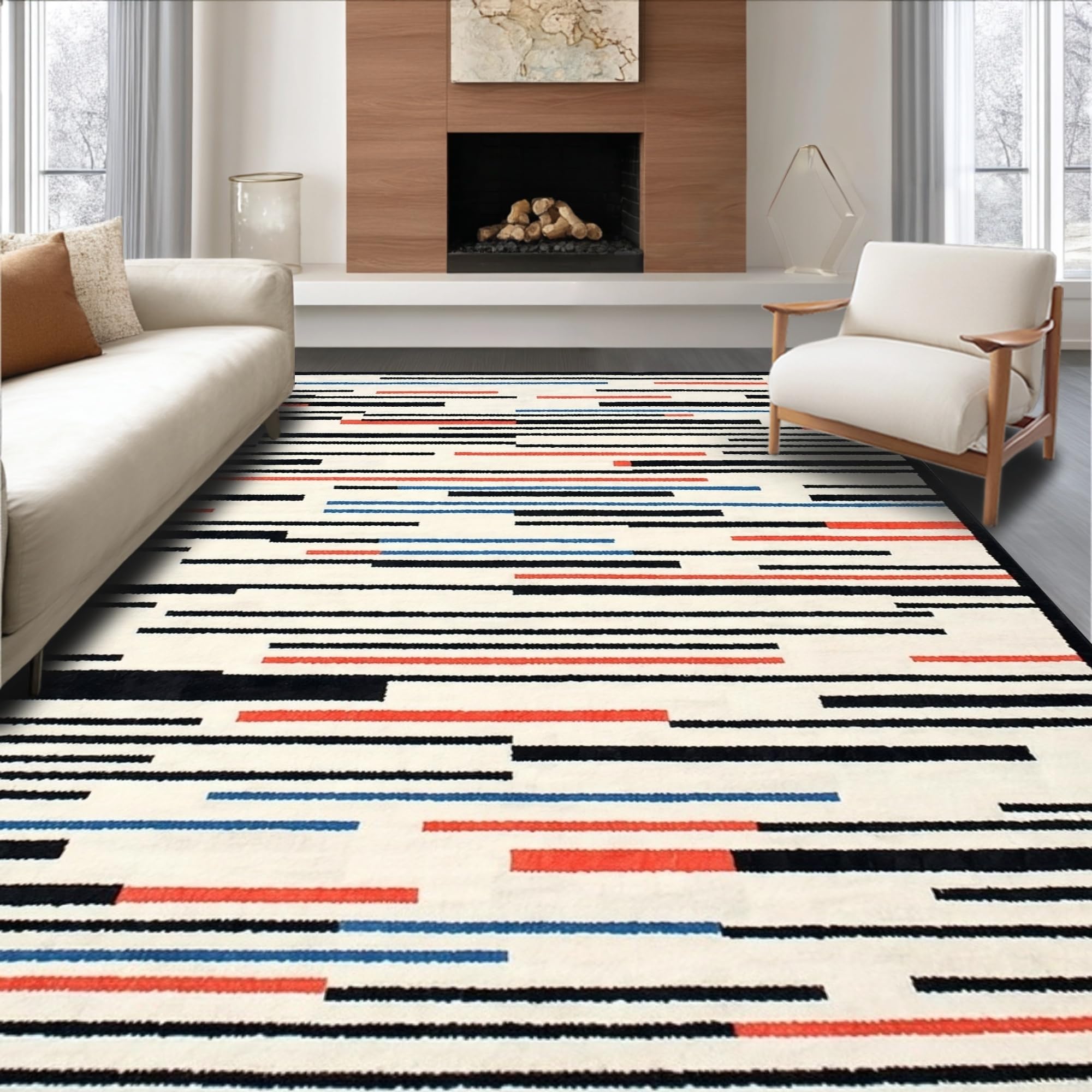 - Modern, artistic: Add a piece of modern charm from ODIKA to your bedroom collection. Designed with the art of minimalism, this rug is sure to provide your bedroom with coziness.