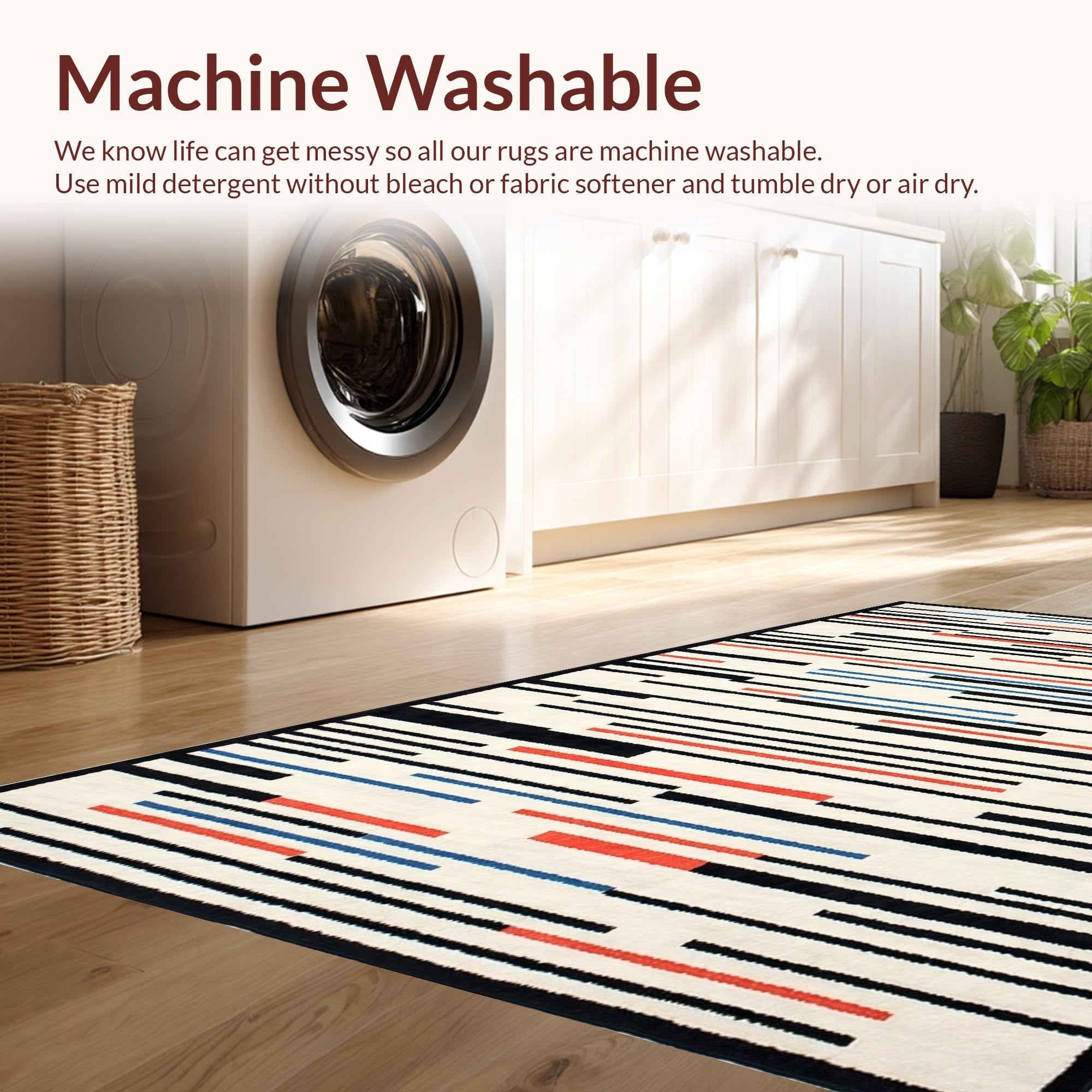 - Machine Washable: Our rugs can be easily thrown in the wash machine.