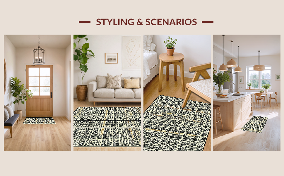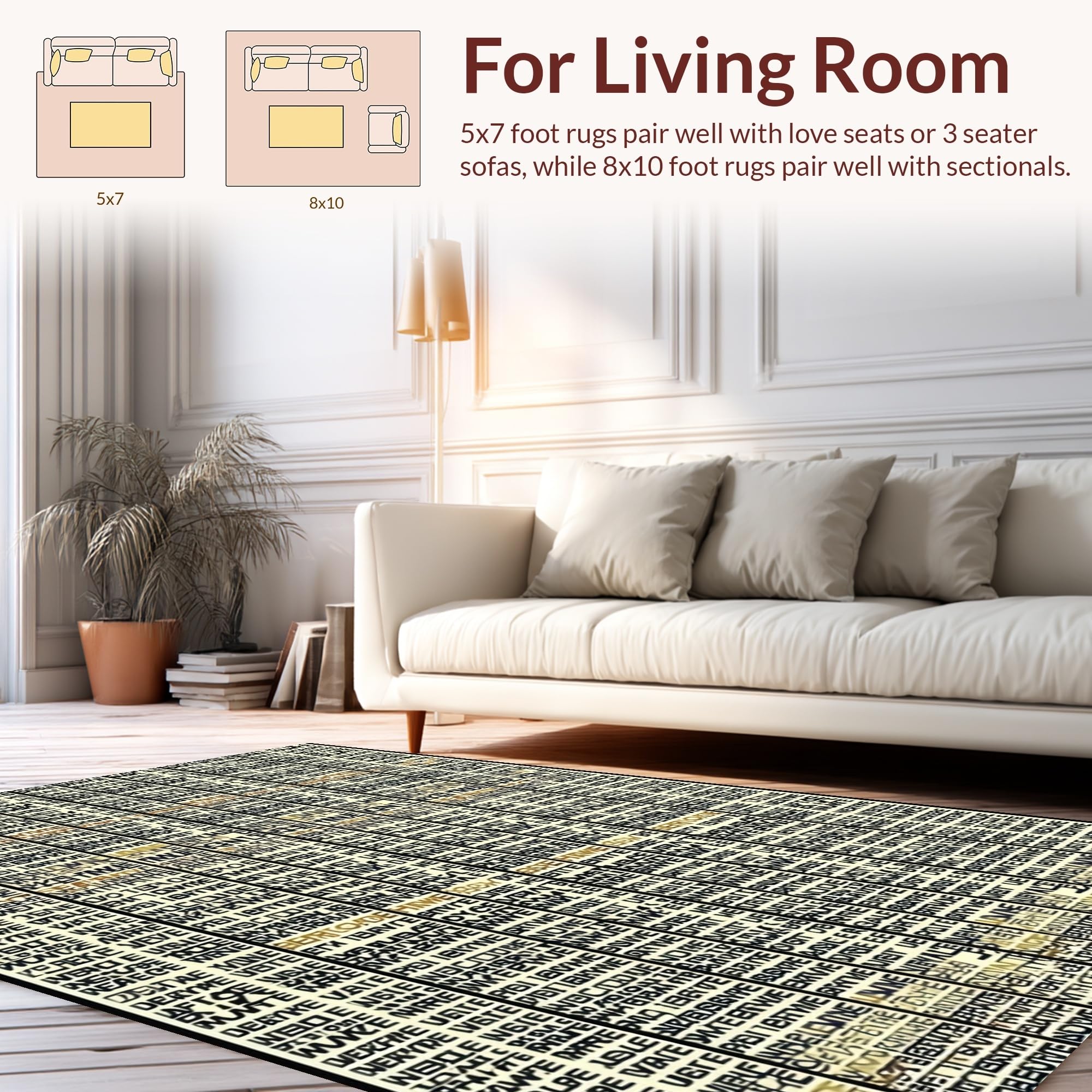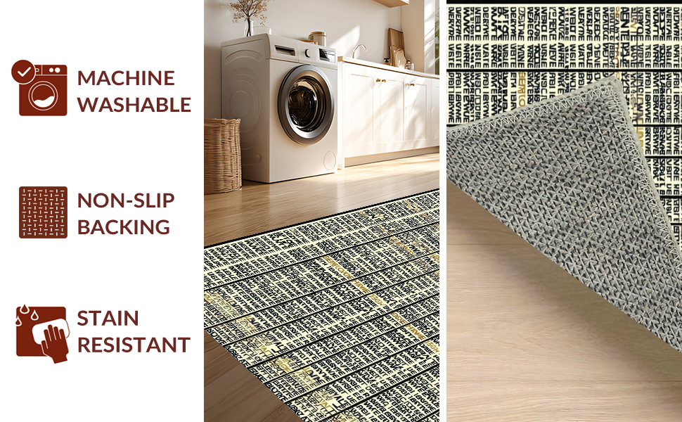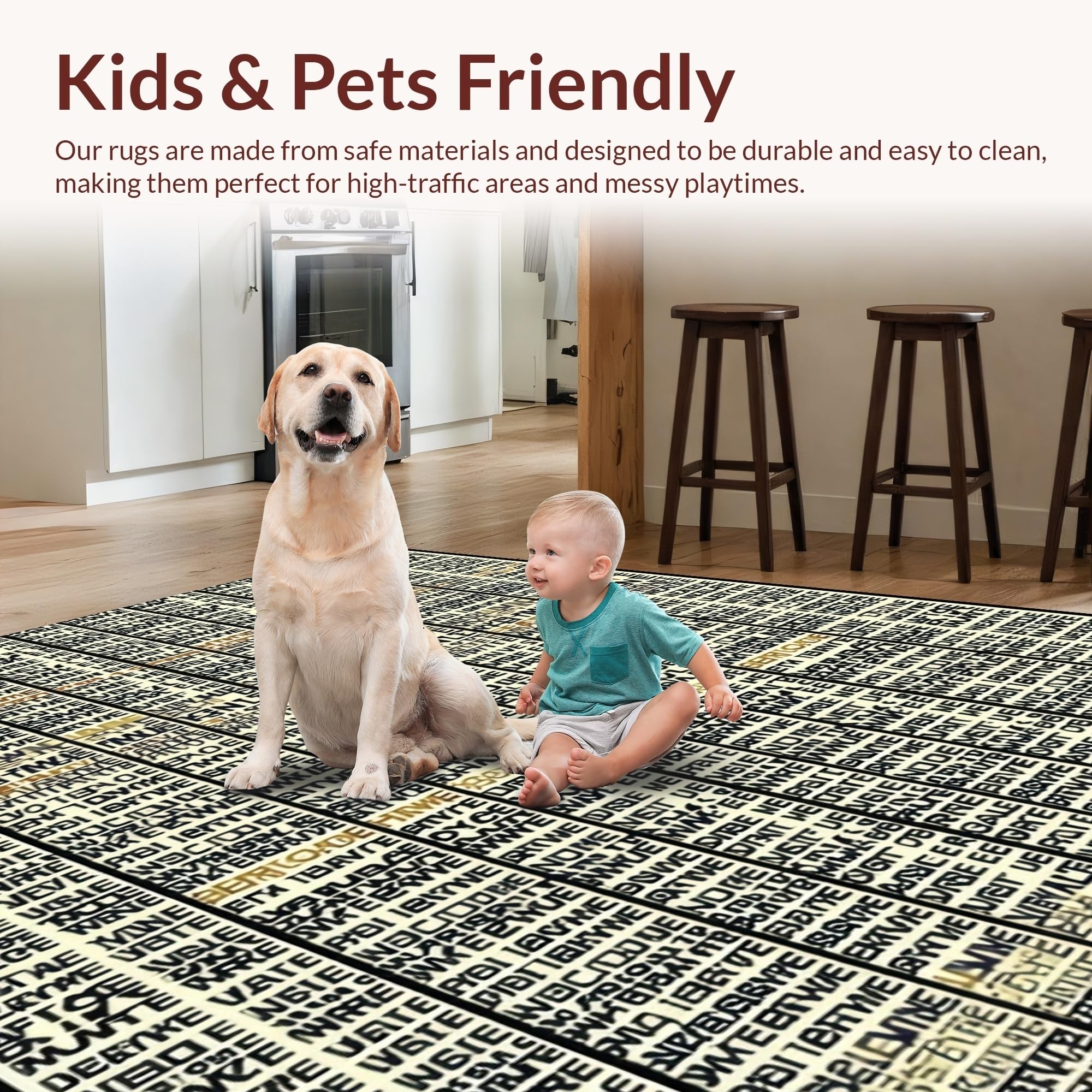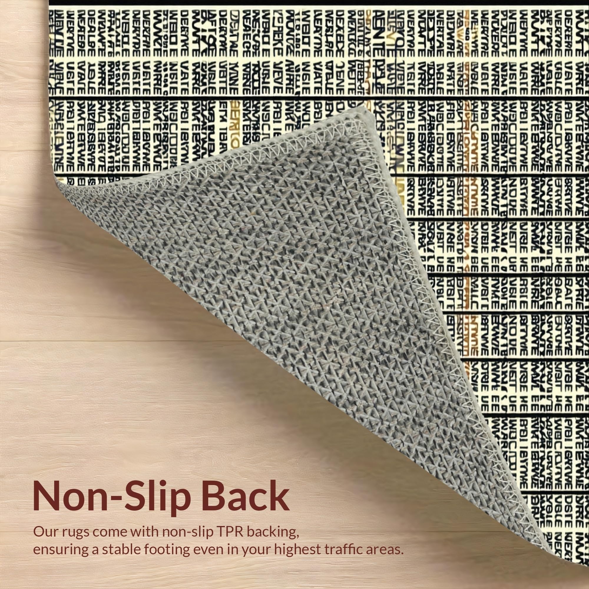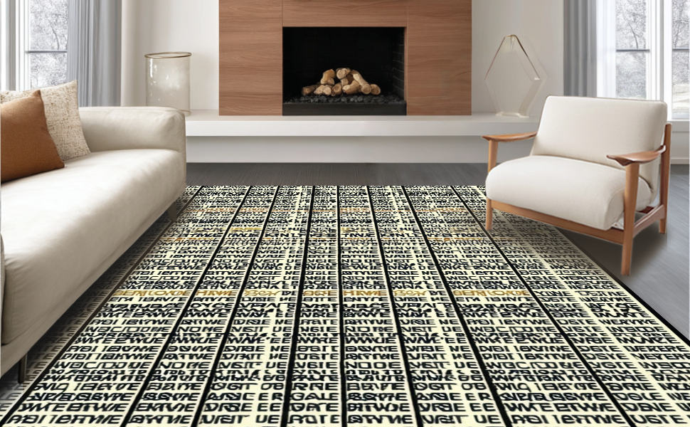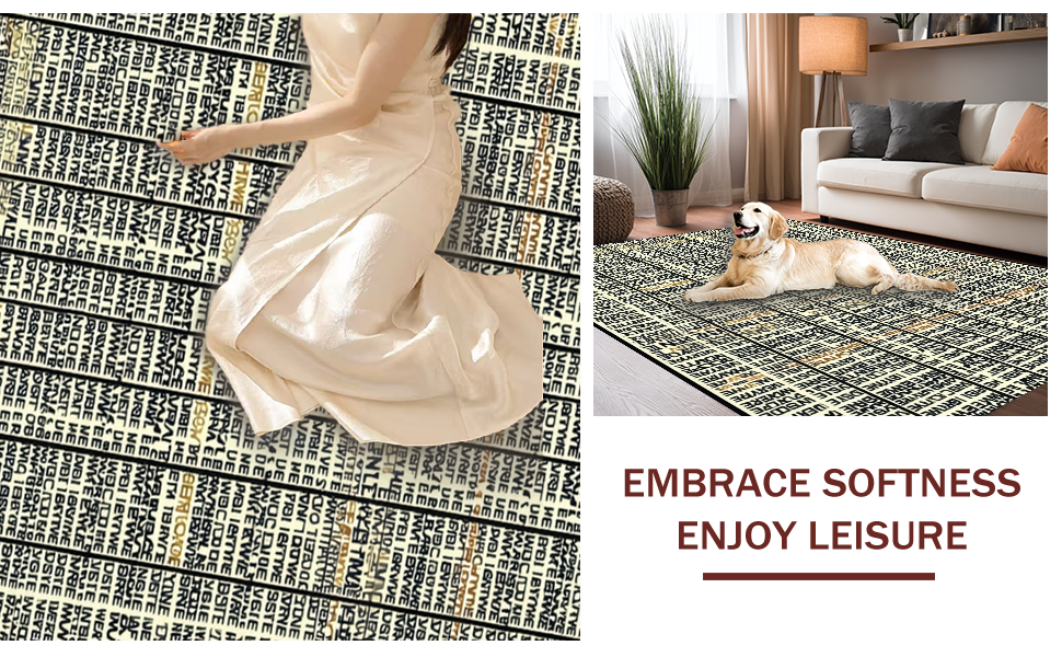 Ultra Soft Area Rug, Non Slip, Stain Resistant, Washable Area Rugs for Living Room, Bedroom, Contemporary Humorous Typography(Black) Overview: