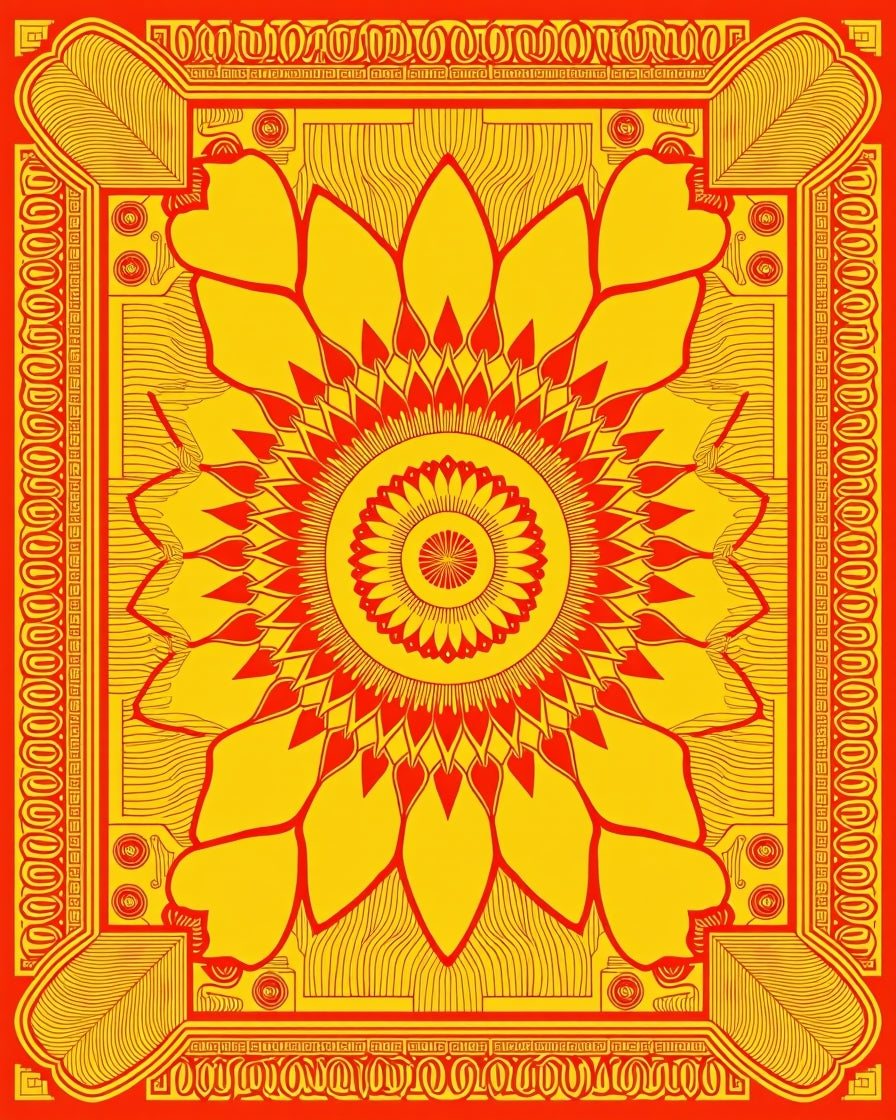 Contemporary Inspired Layout with Layered Petal Structures and Curves(Red)