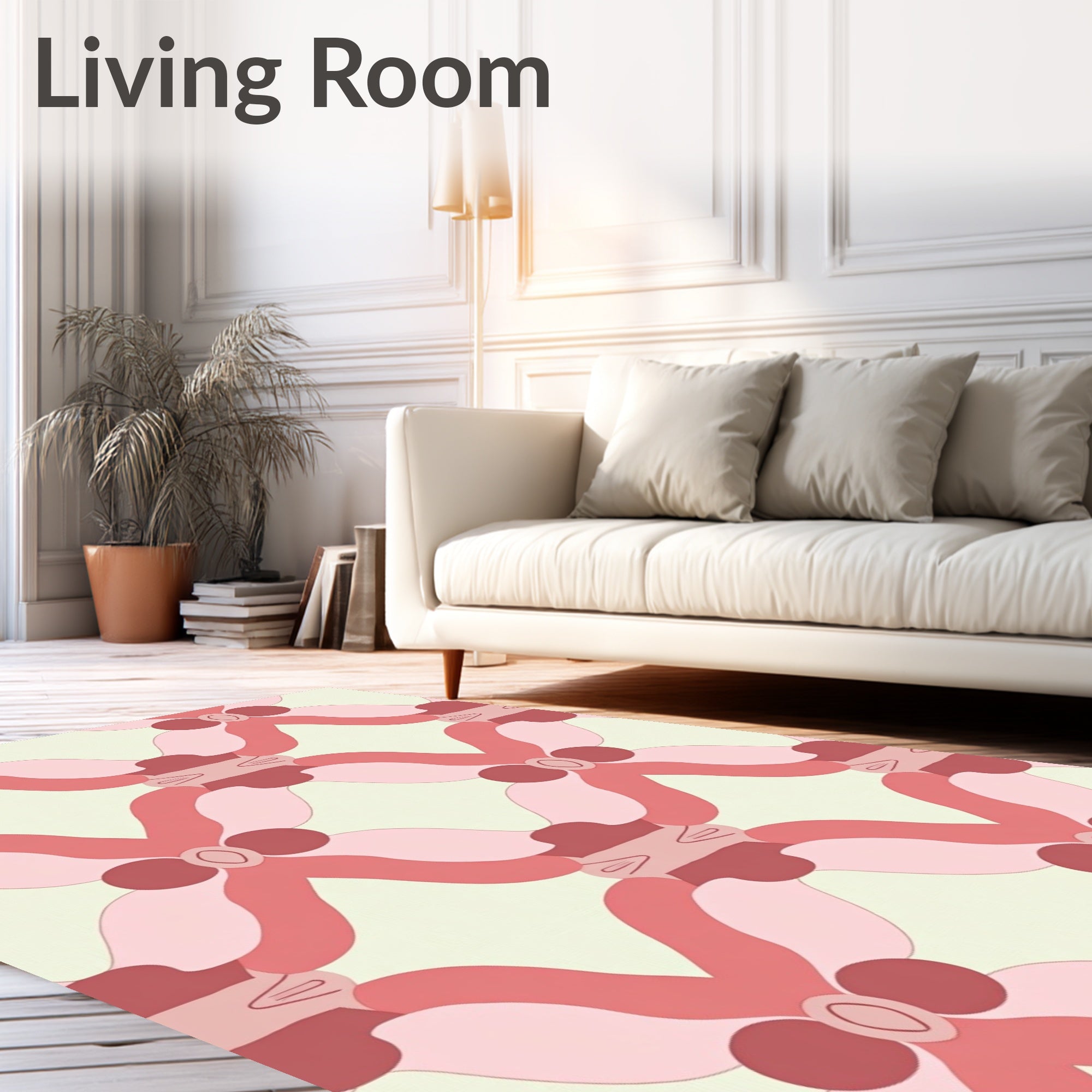 Ultra Soft Area Rug, Non Slip, Stain Resistant, Washable Area Rugs for Living Room, Bedroom, Contemporary Interlocking Ellipse with Blush Hues and Artistic Flair(Pink) Overview: