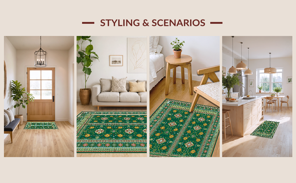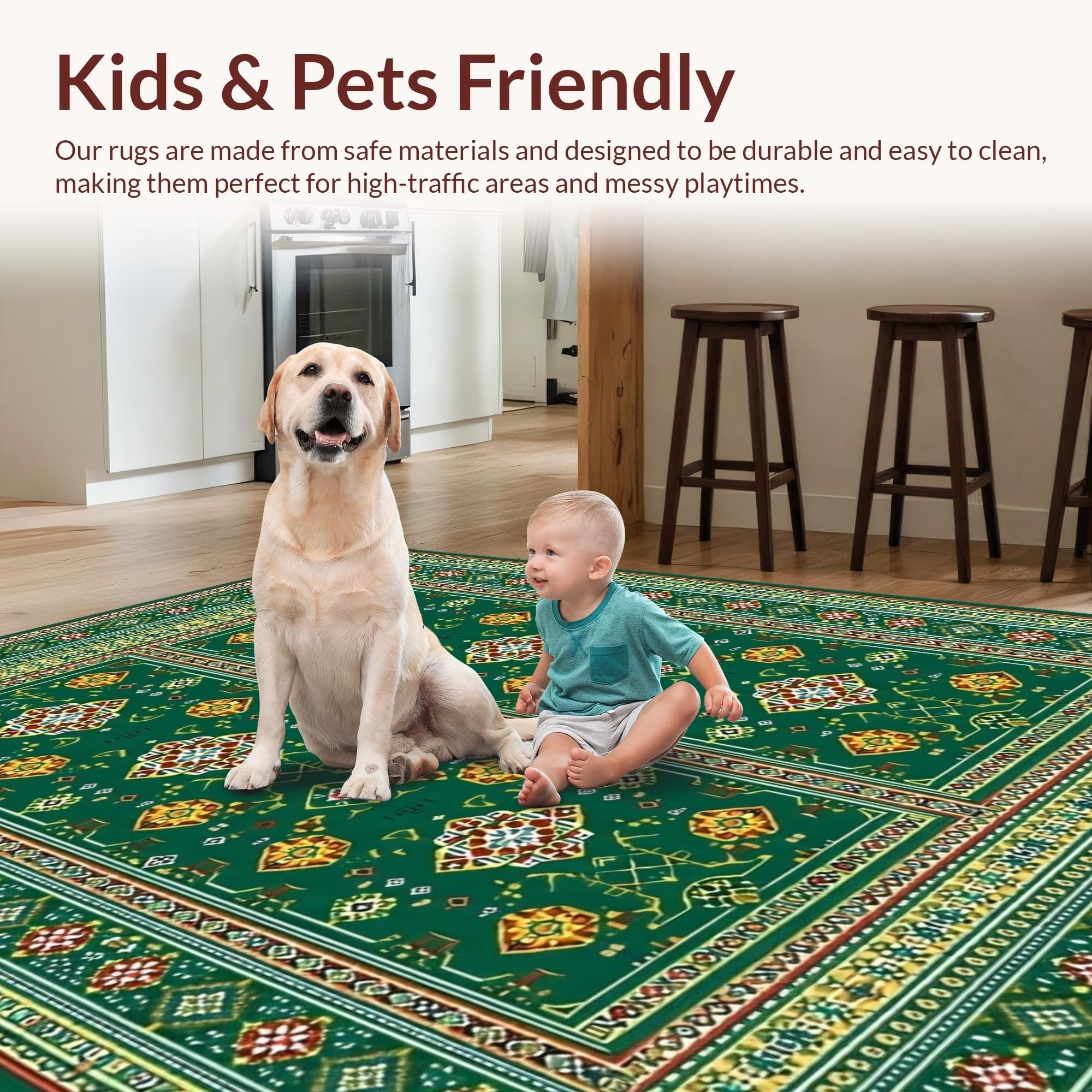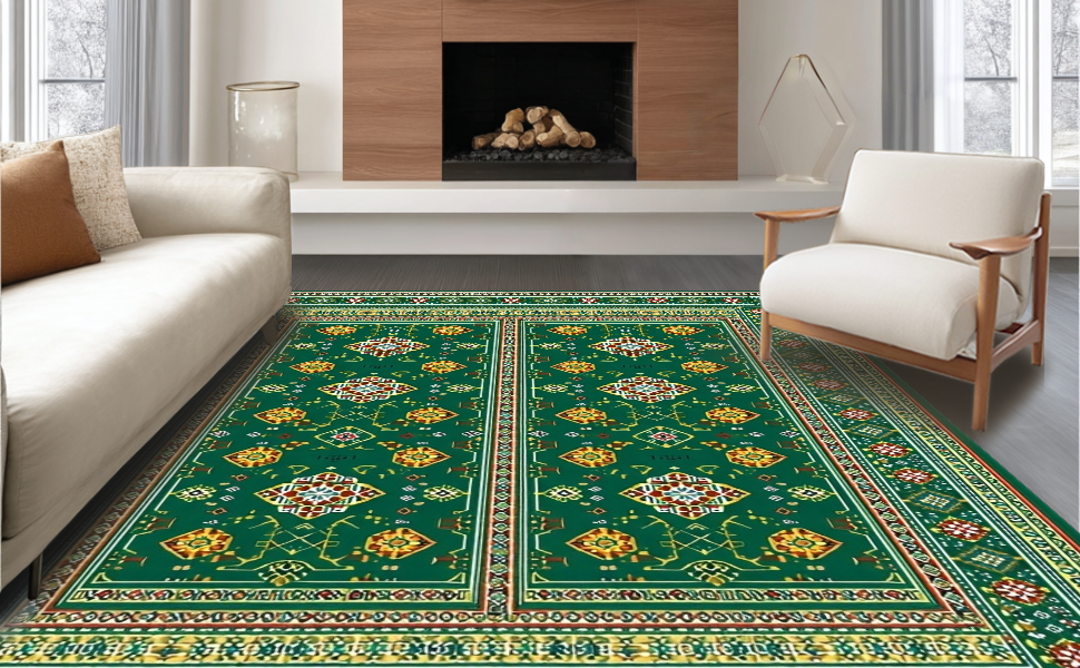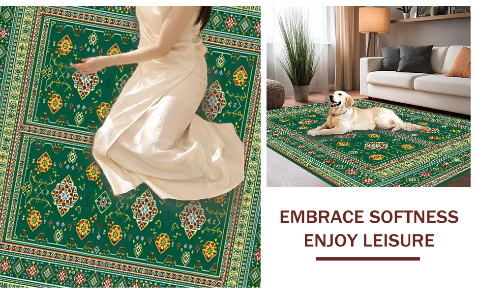 Ultra Soft Area Rug, Non Slip, Stain Resistant, Washable Area Rugs for Living Room, Bedroom, Contemporary Lattice Artful Motif(Green) Overview: