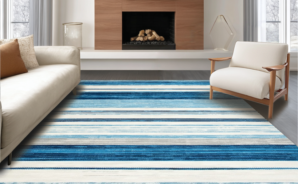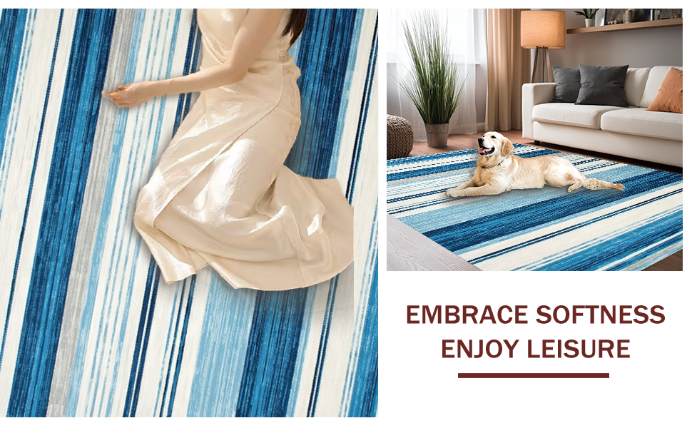 Ultra Soft Area Rug, Non Slip, Stain Resistant, Washable Area Rugs for Living Room, Bedroom, Contemporary Lattice Blue Hues(Blue) Overview: