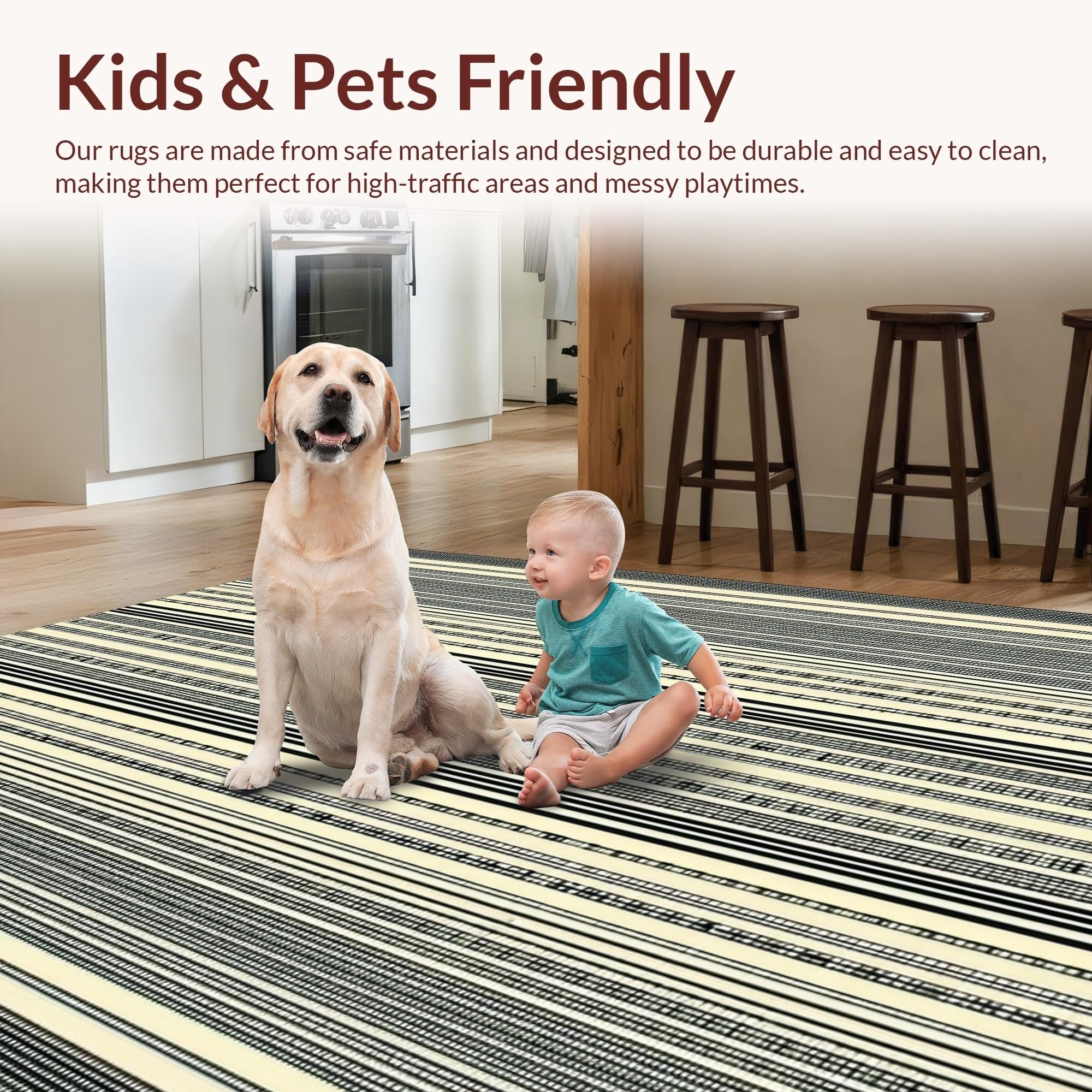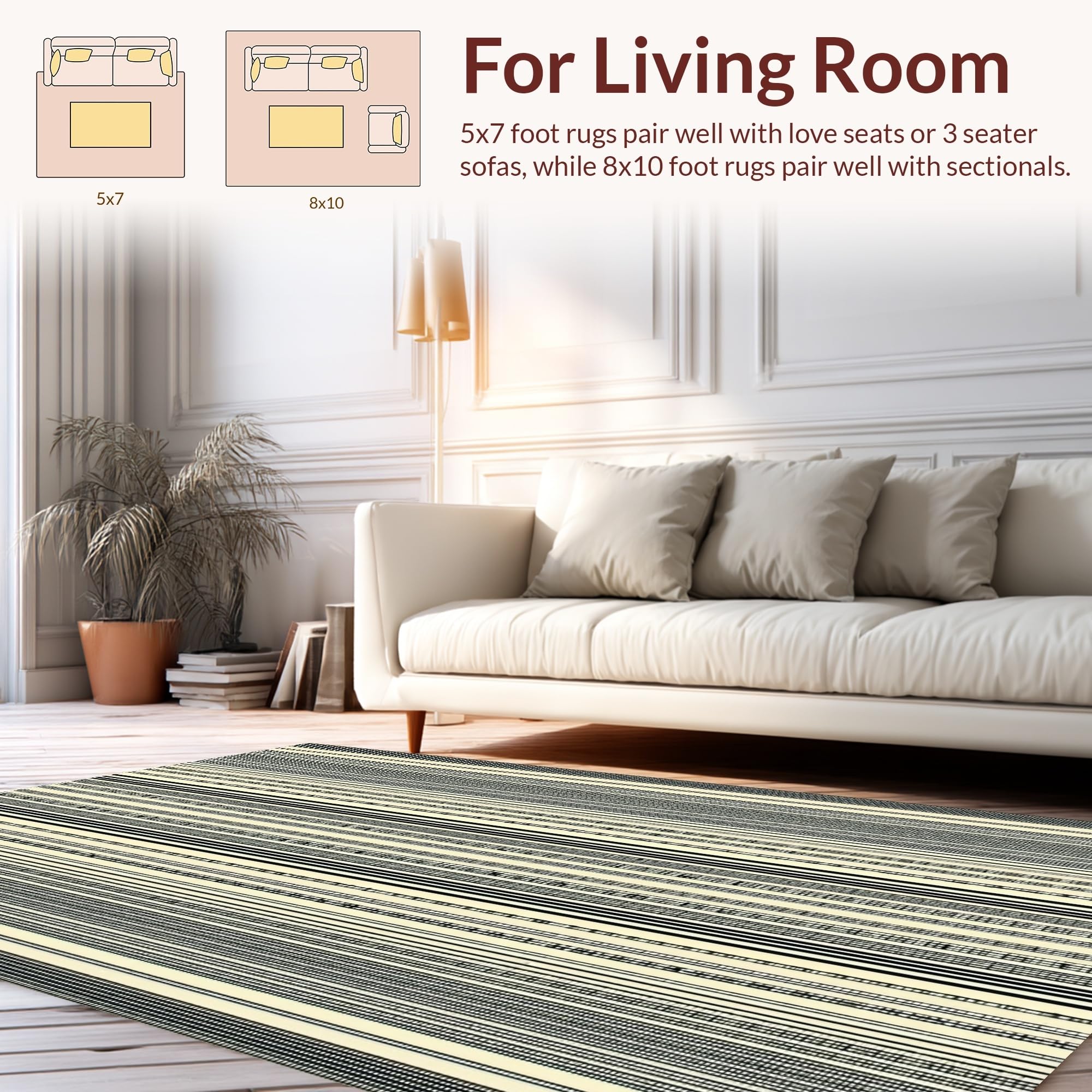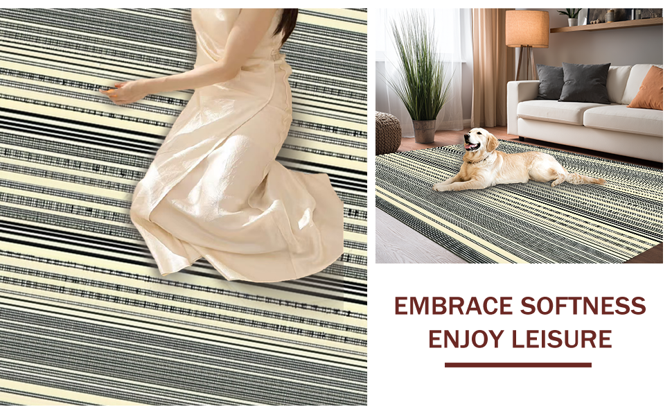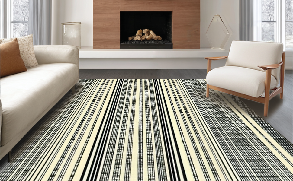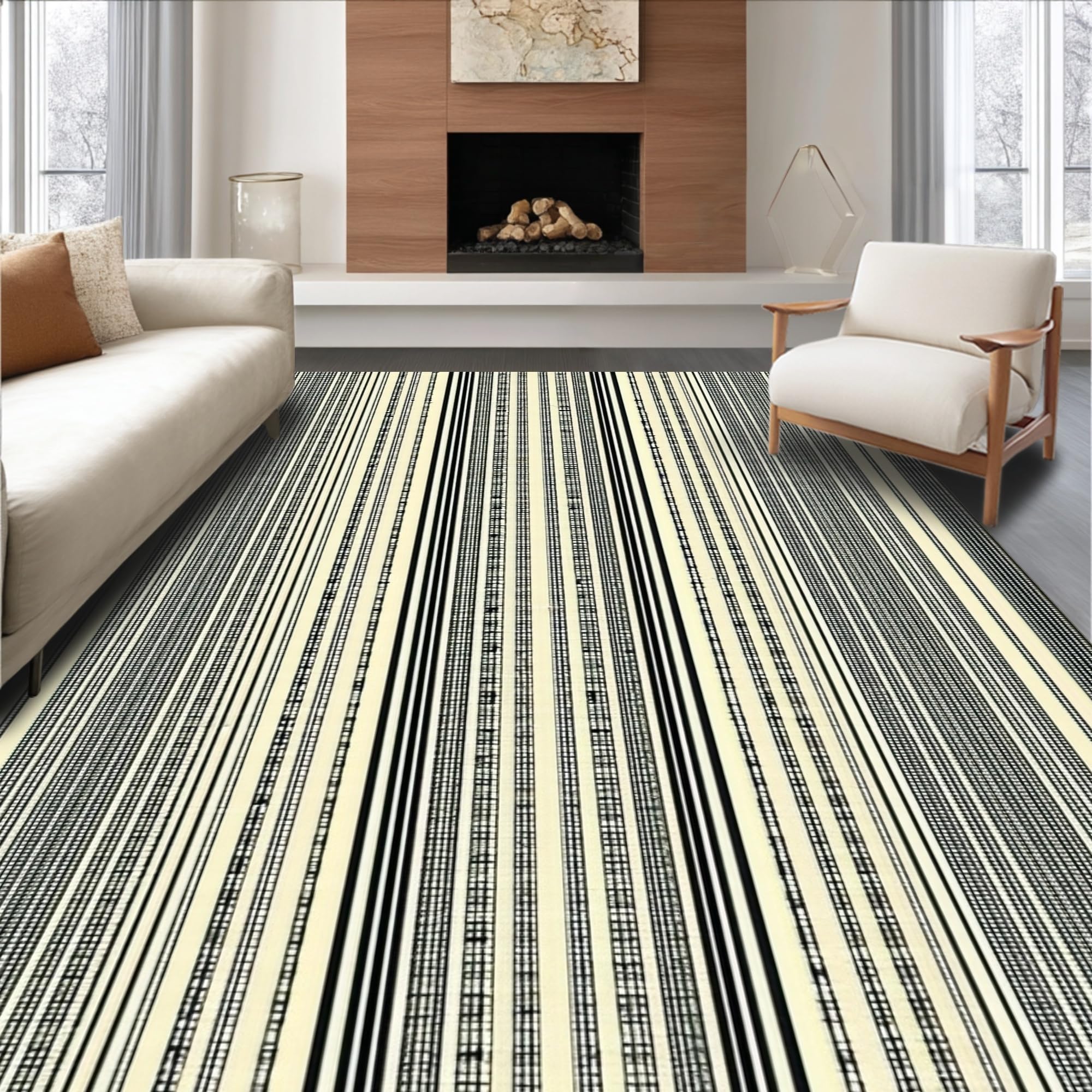 Ultra Soft Area Rug, Non Slip, Stain Resistant, Washable Area Rugs for Living Room, Bedroom, Contemporary Lattice Design Elements(Black) Overview: