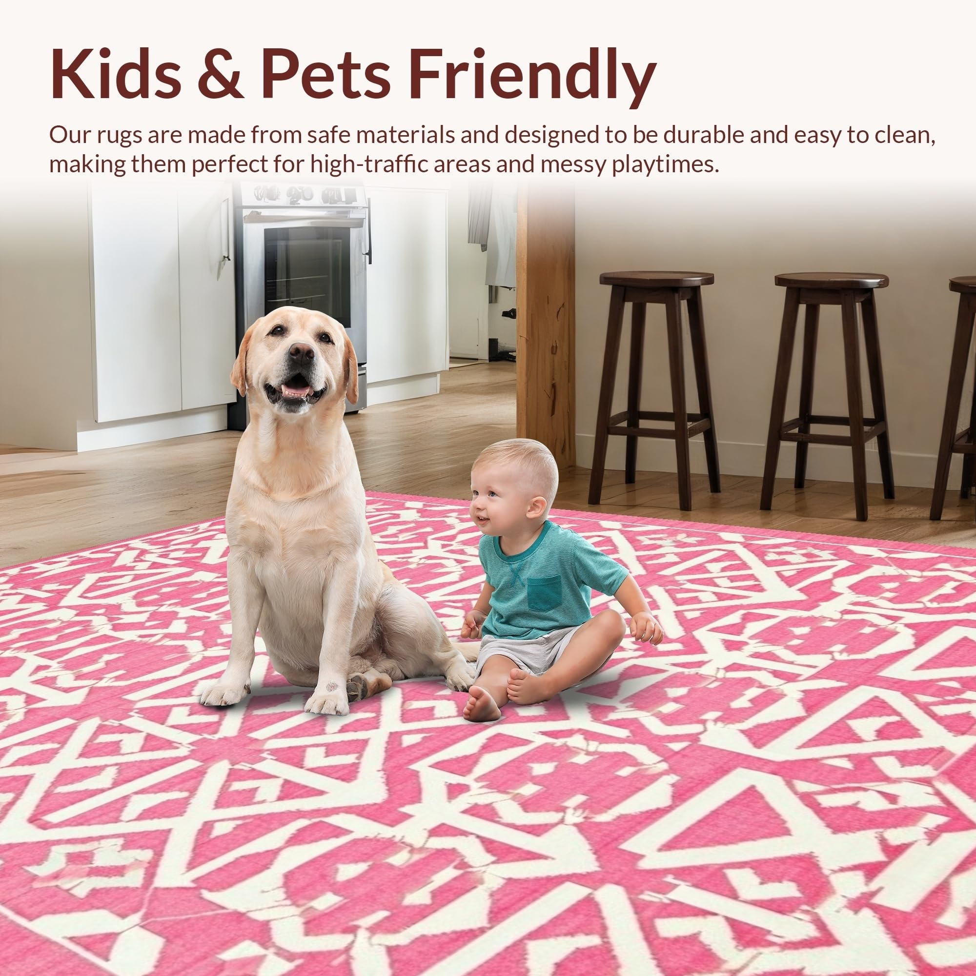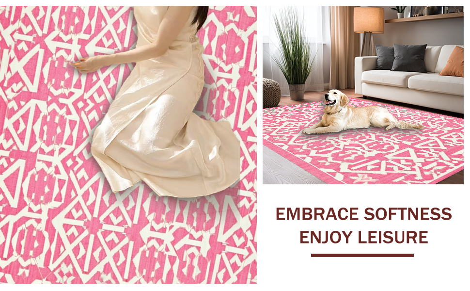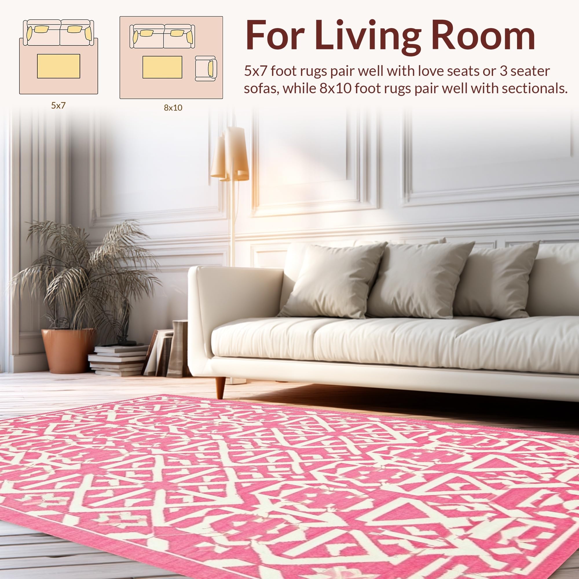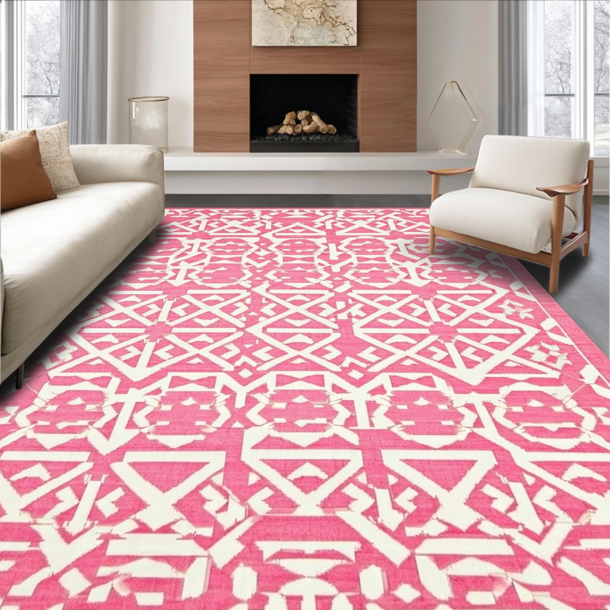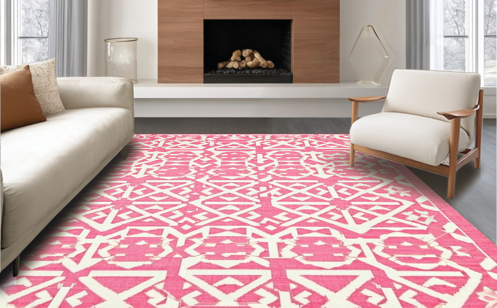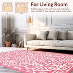 Ultra Soft Area Rug, Non Slip, Stain Resistant, Washable Area Rugs for Living Room, Bedroom, Contemporary Lattice Design with Soft Hues(Pink) Overview: