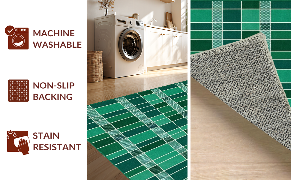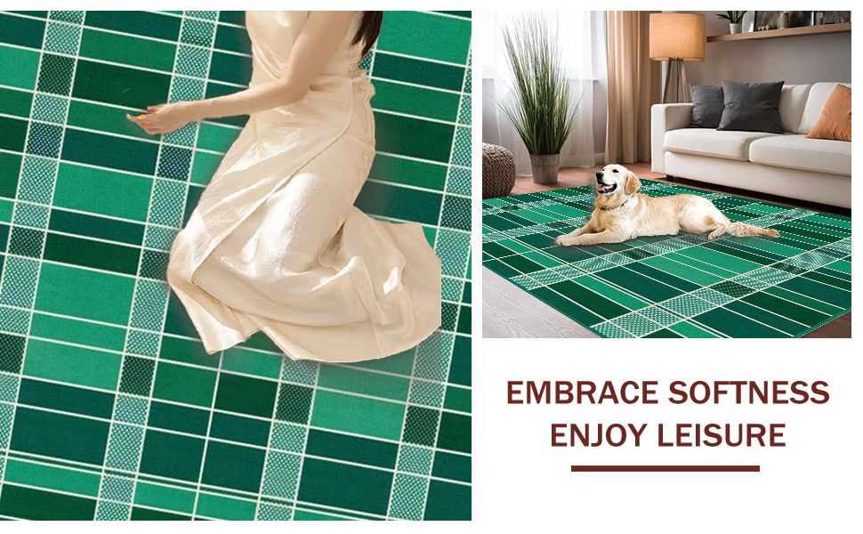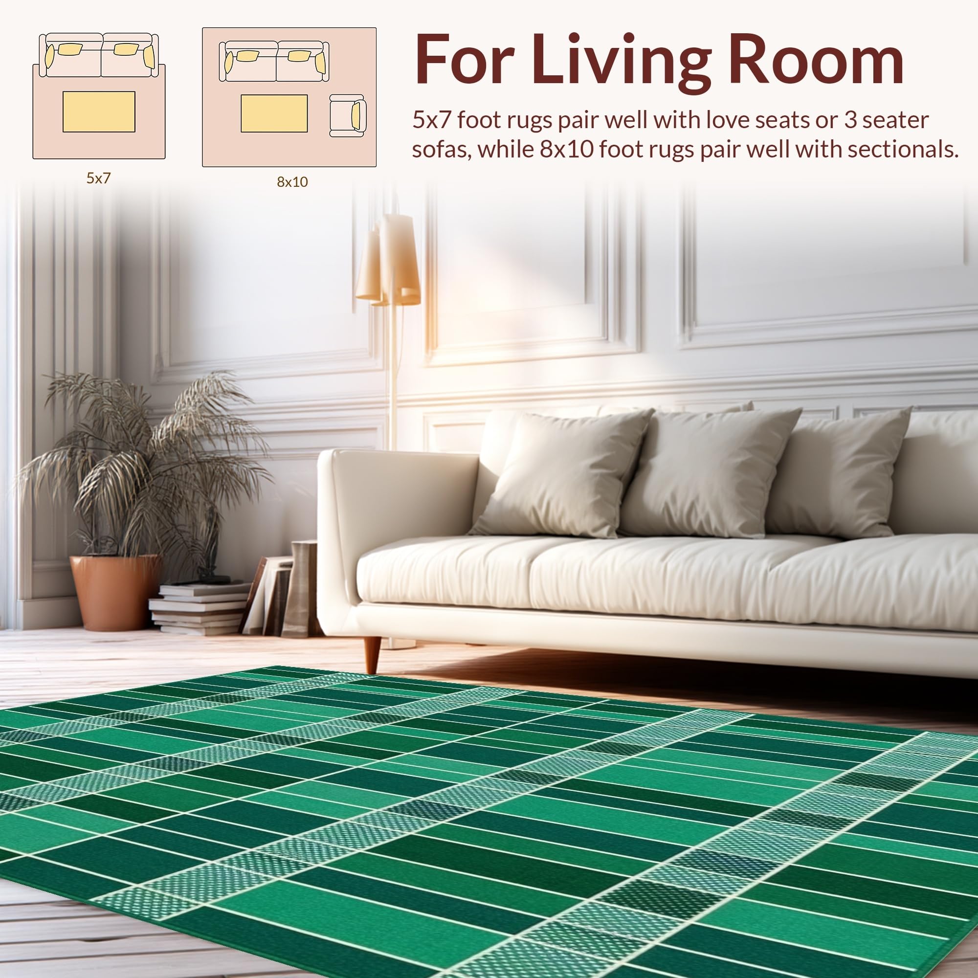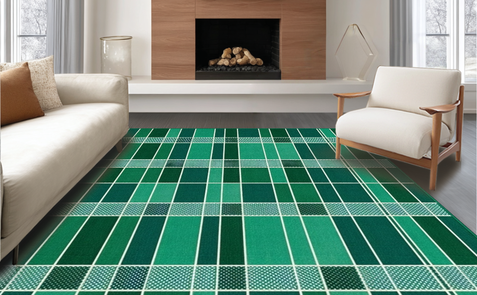 Ultra Soft Area Rug, Non Slip, Stain Resistant, Washable Area Rugs for Living Room, Bedroom, Contemporary Lattice Pattern Delight(Green) Overview:
