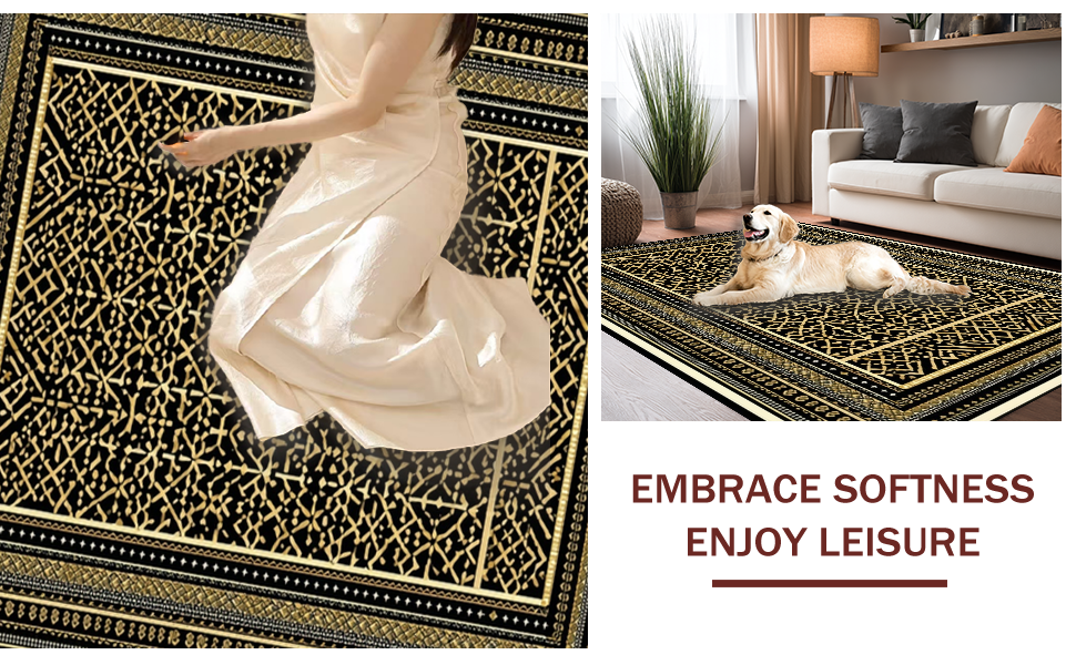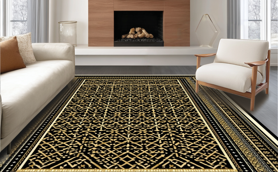 Ultra Soft Area Rug, Non Slip, Stain Resistant, Washable Area Rugs for Living Room, Bedroom, Contemporary Lattice Patterned Sophistication(Black) Overview: