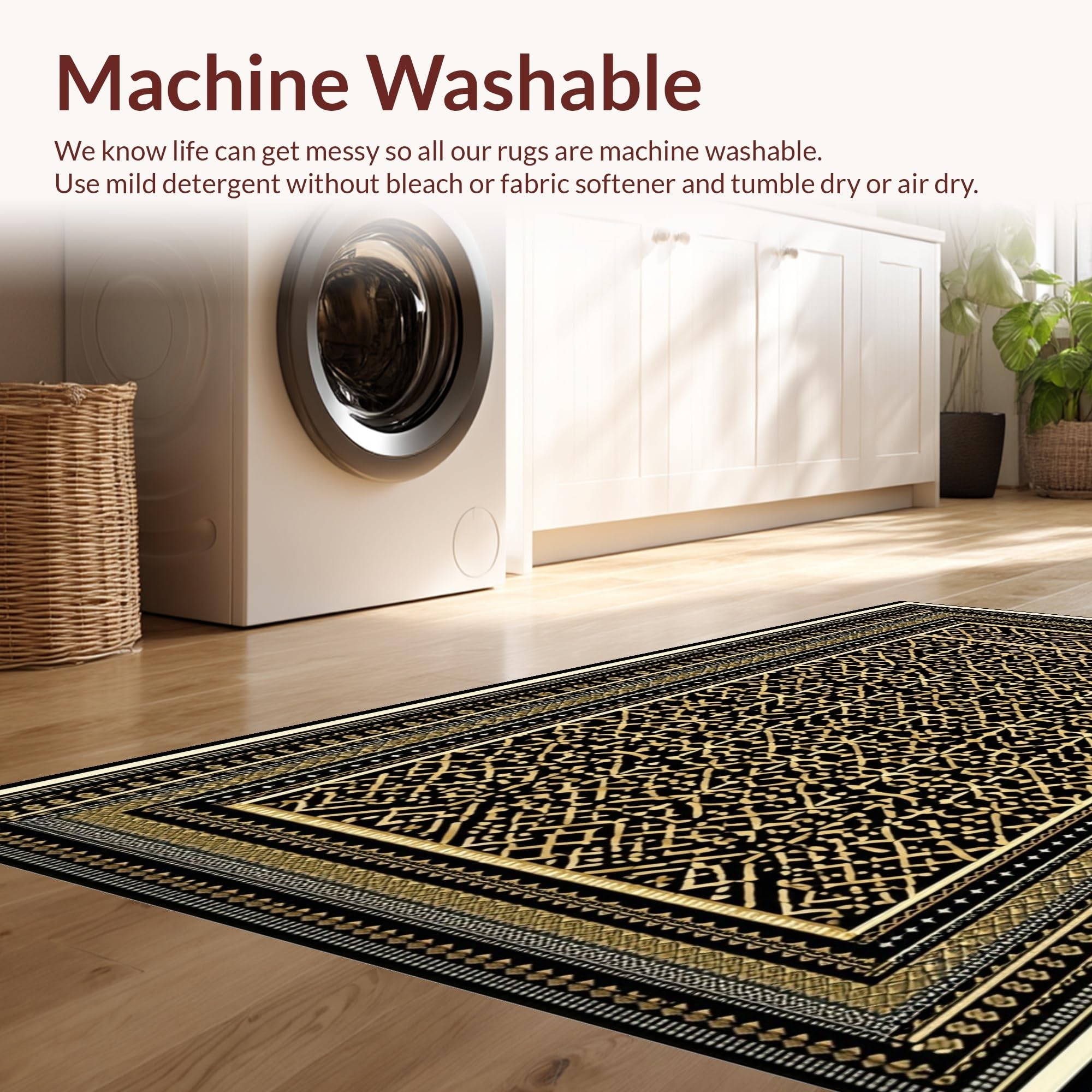 - Machine Washable: Our rugs can be easily thrown in the wash machine.