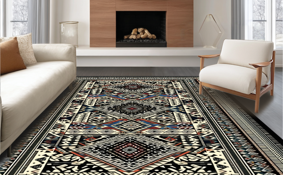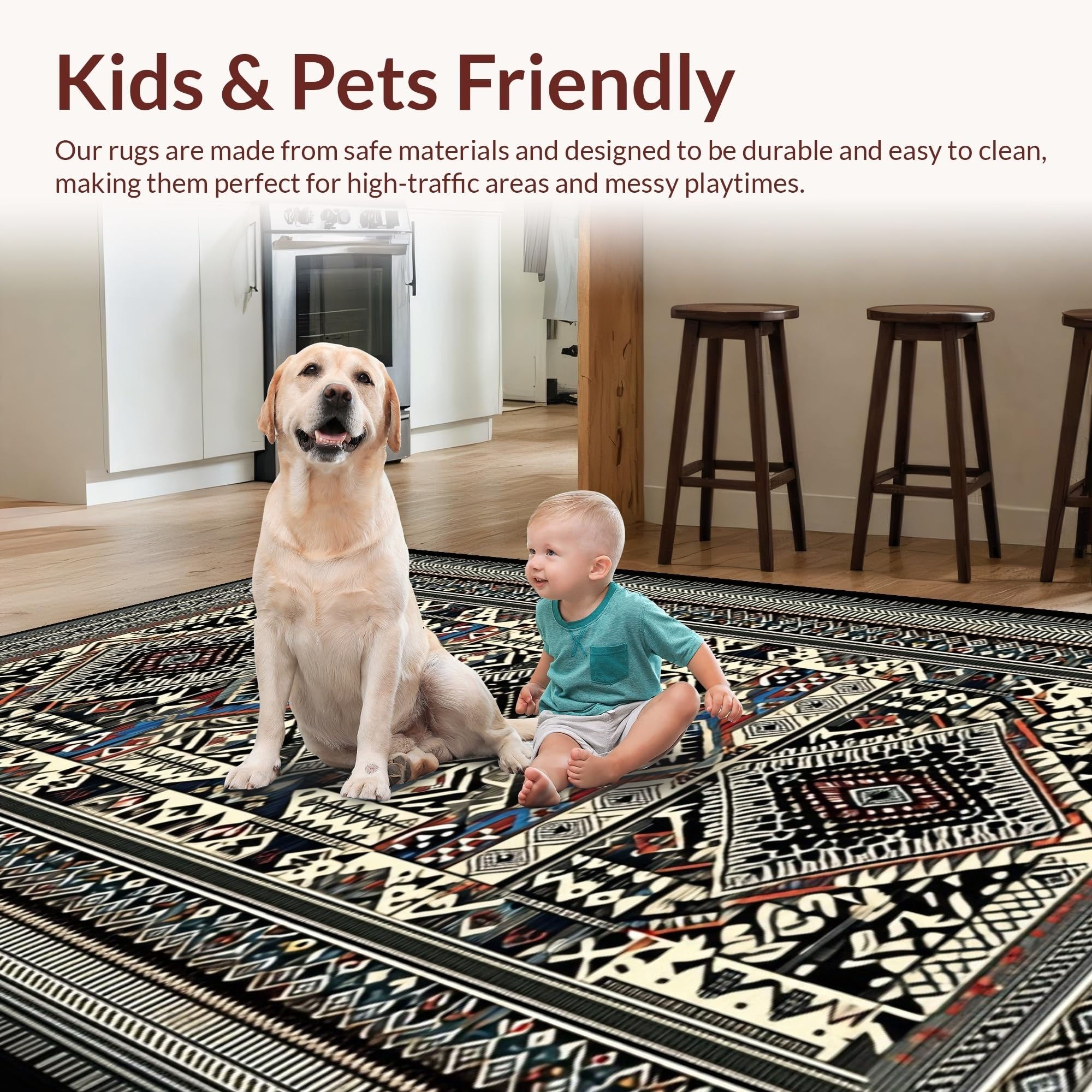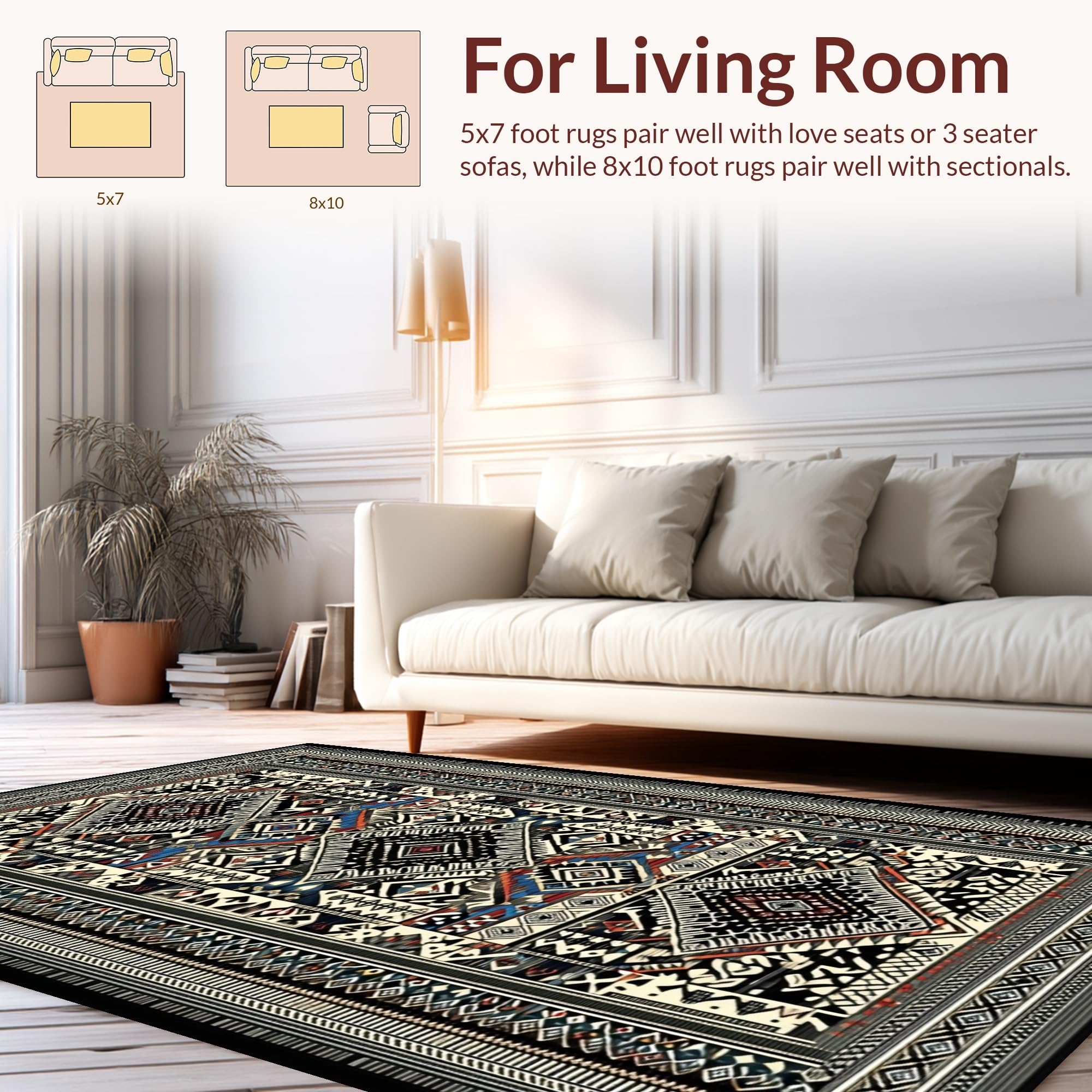Ultra Soft Area Rug, Non Slip, Stain Resistant, Washable Area Rugs for Living Room, Bedroom, Contemporary Lattice Style Home Accent(Black) Overview: