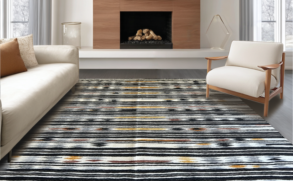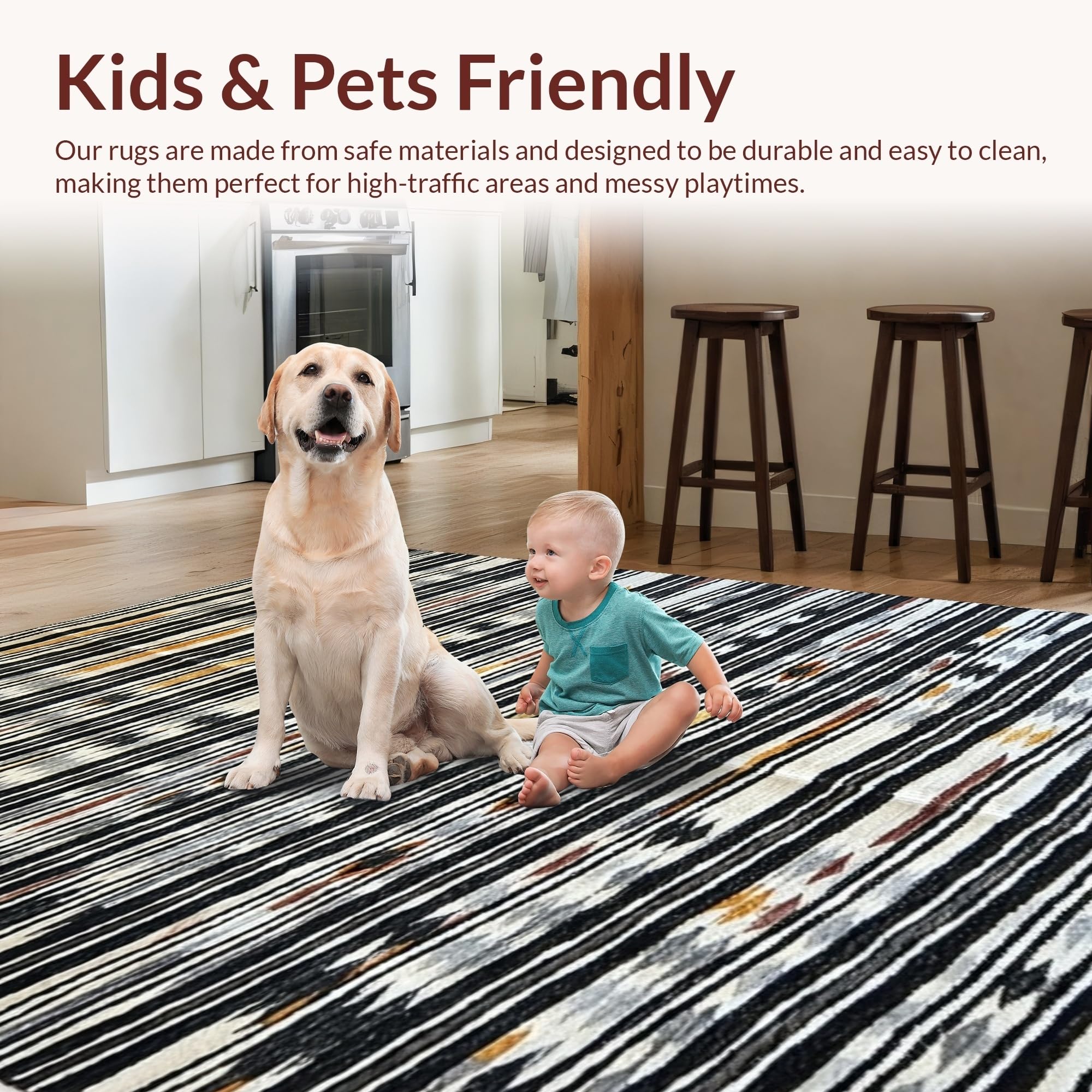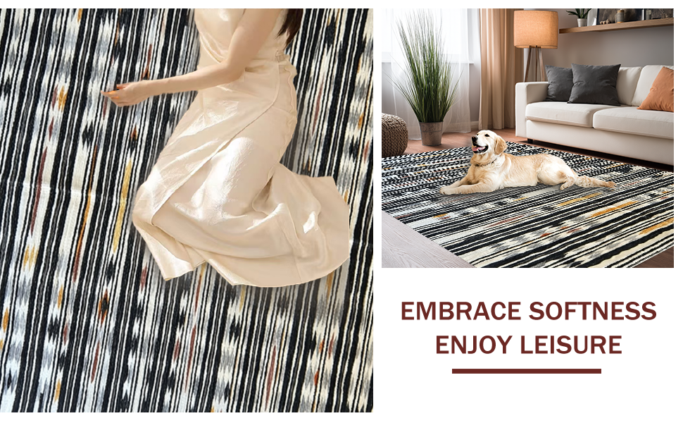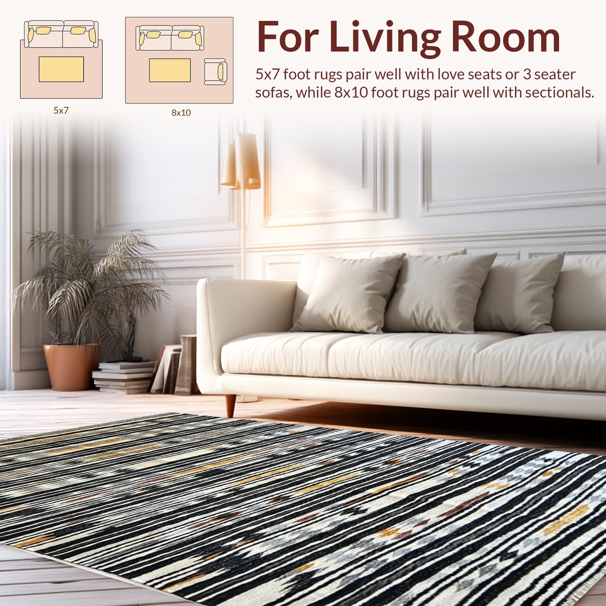 Ultra Soft Area Rug, Non Slip, Stain Resistant, Washable Area Rugs for Living Room, Bedroom, Contemporary Lattice Visual Appeal(Black) Overview: