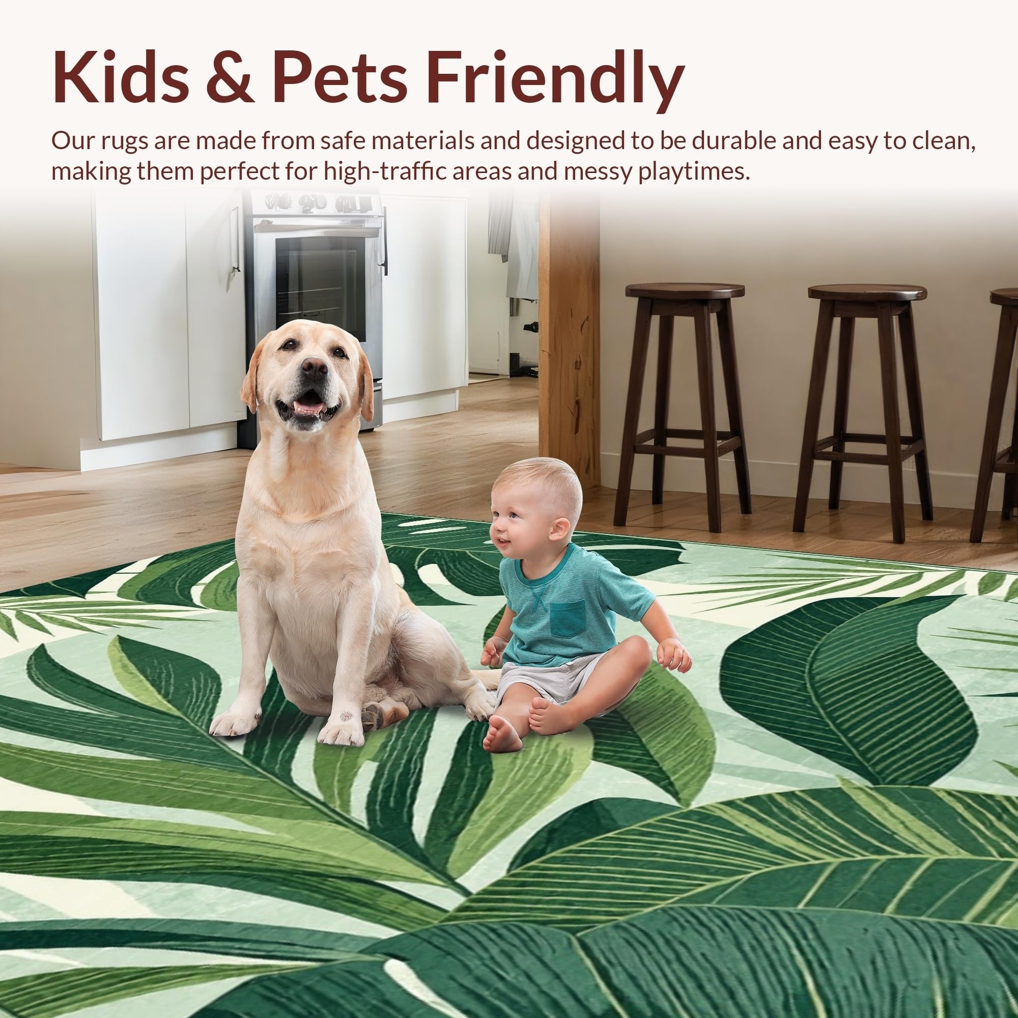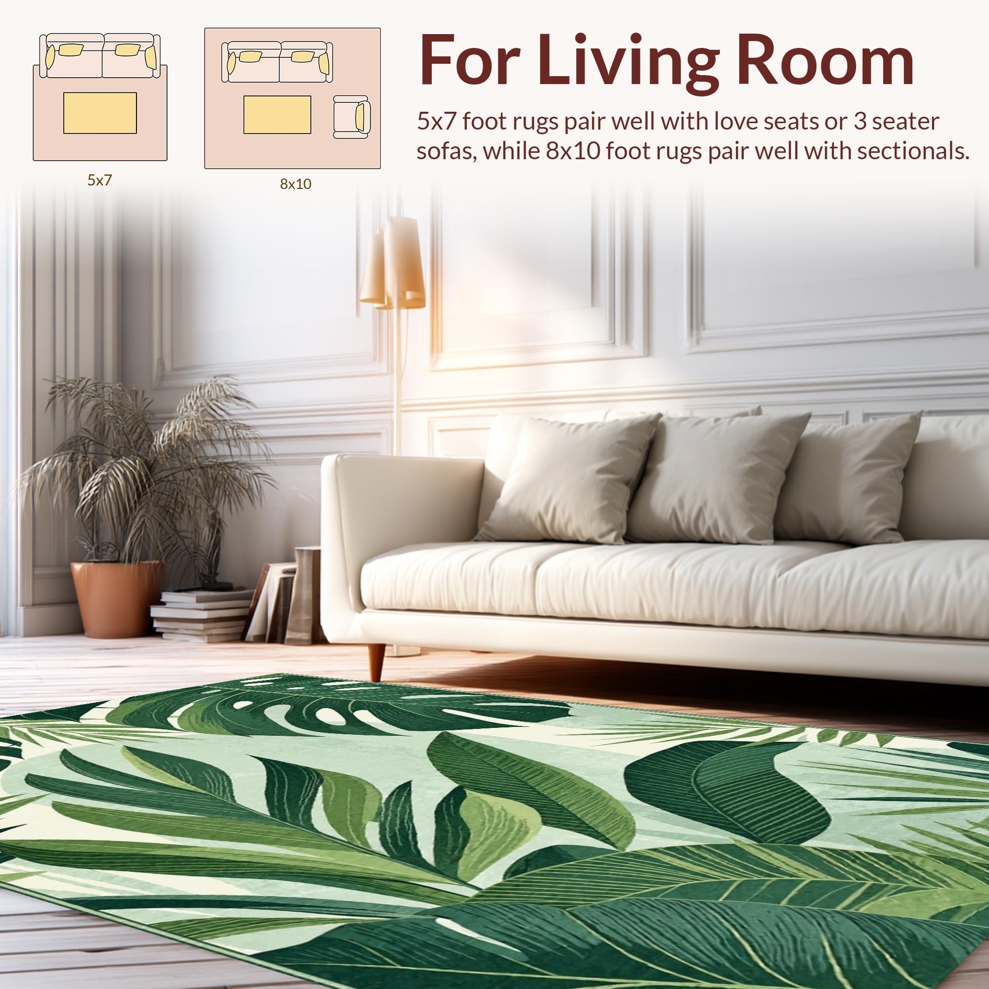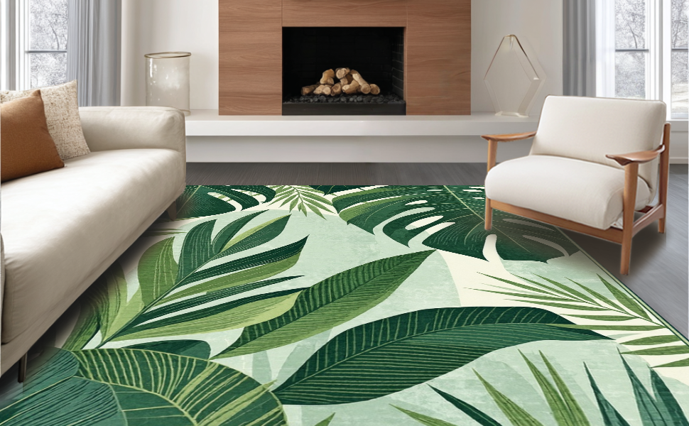 Ultra Soft Area Rug, Non Slip, Stain Resistant, Washable Area Rugs for Living Room, Bedroom, Contemporary Leaf Print Elegance(Green) Overview:
