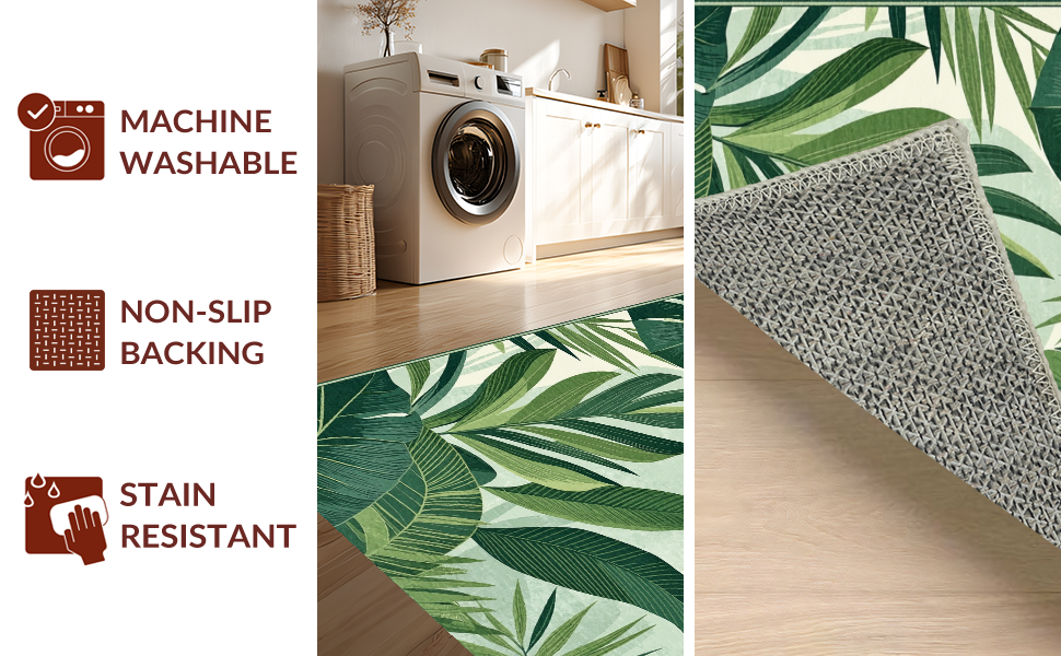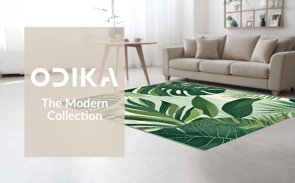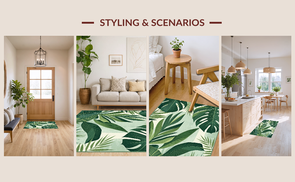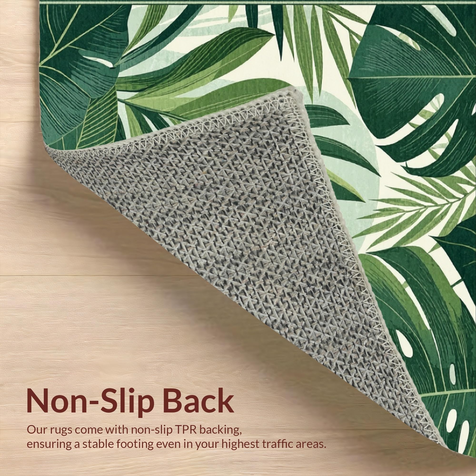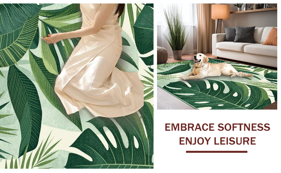 Ultra Soft Area Rug, Non Slip, Stain Resistant, Washable Area Rugs for Living Room, Bedroom, Contemporary Leaf Print Elegance(Green) Overview: