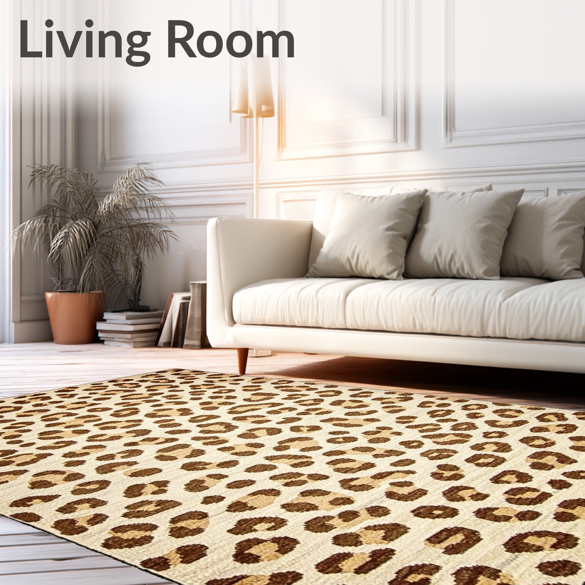 Ultra Soft Area Rug, Non Slip, Stain Resistant, Washable Area Rugs for Living Room, Bedroom, Contemporary Leopard in Beige Tones(Beige) Overview: