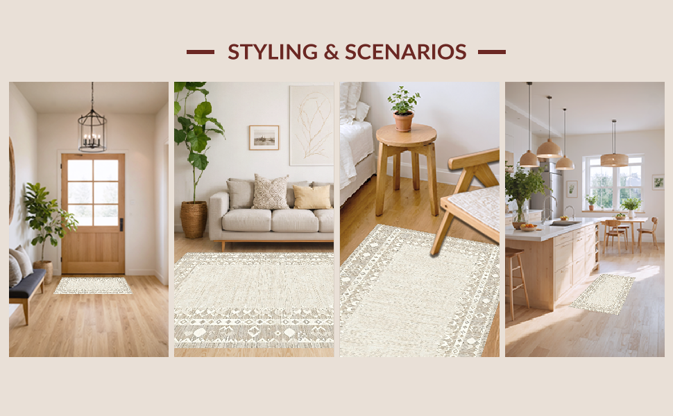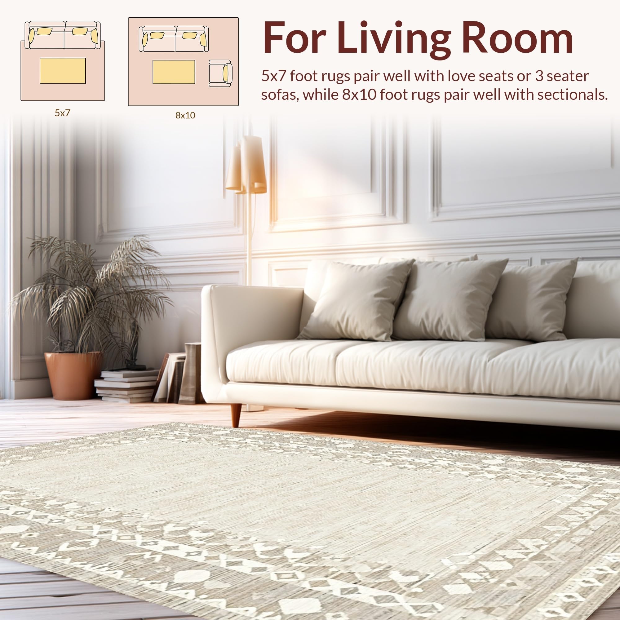 Ultra Soft Area Rug, Non Slip, Stain Resistant, Washable Area Rugs for Living Room, Bedroom, Contemporary Light Beige Pattern(Beige) Overview: