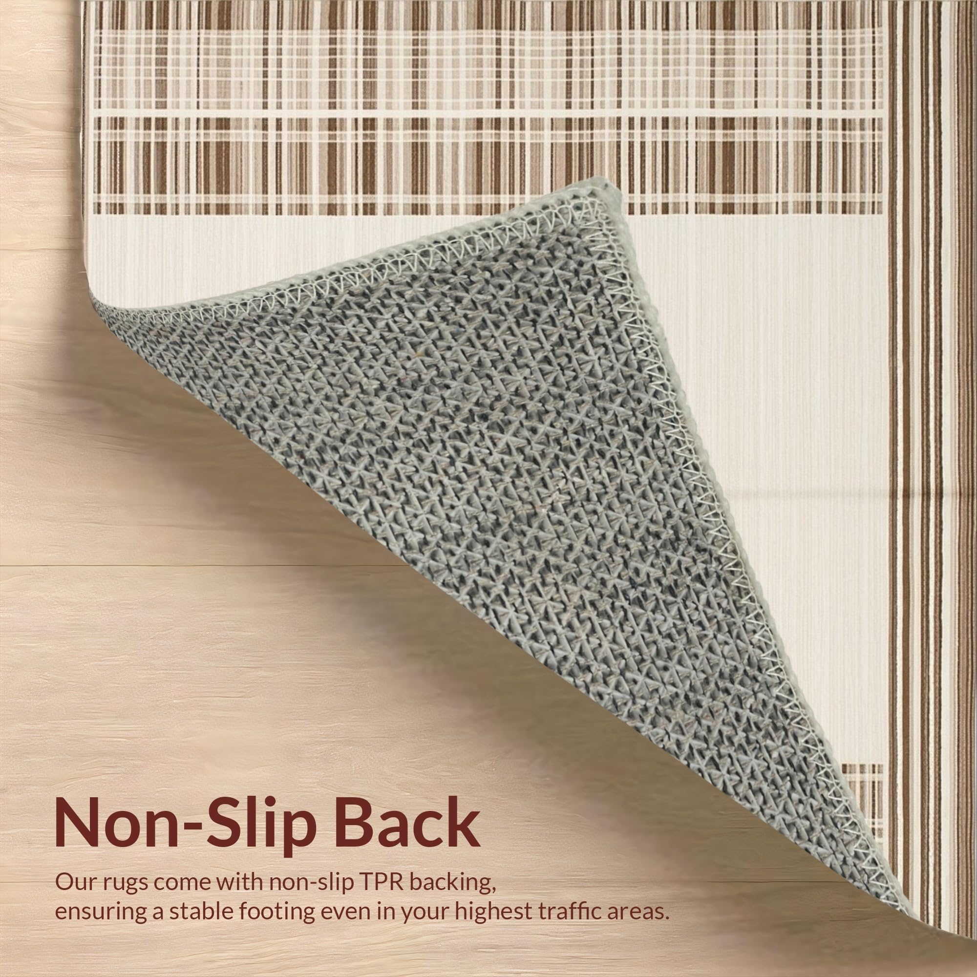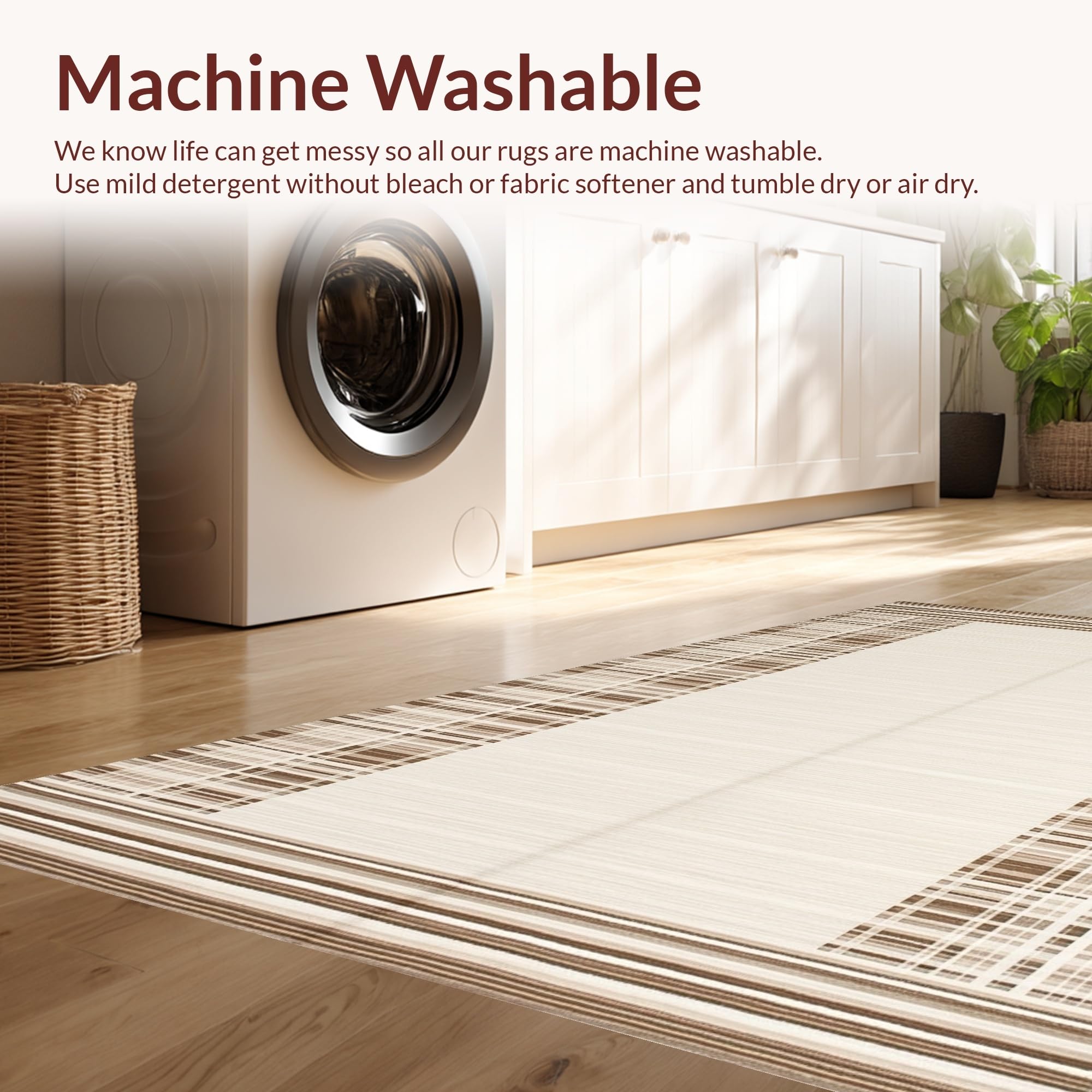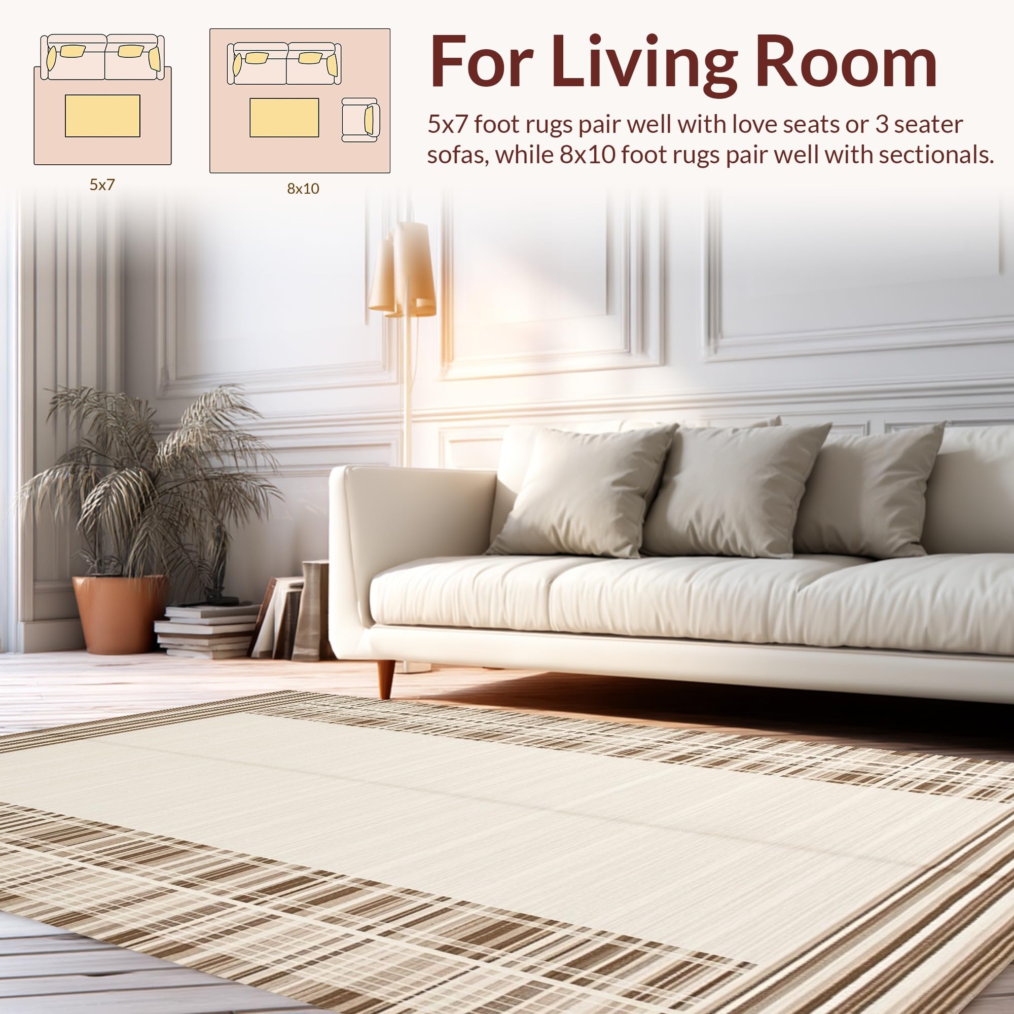 Ultra Soft Area Rug, Non Slip, Stain Resistant, Washable Area Rugs for Living Room, Bedroom, Contemporary Light Brown Geometric Theme(Beige) Overview: