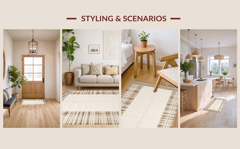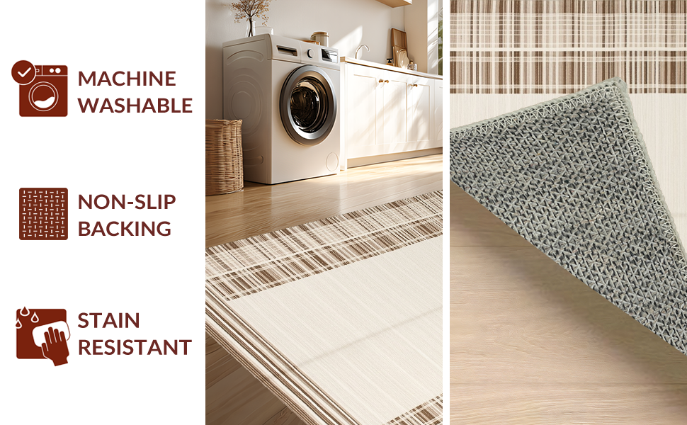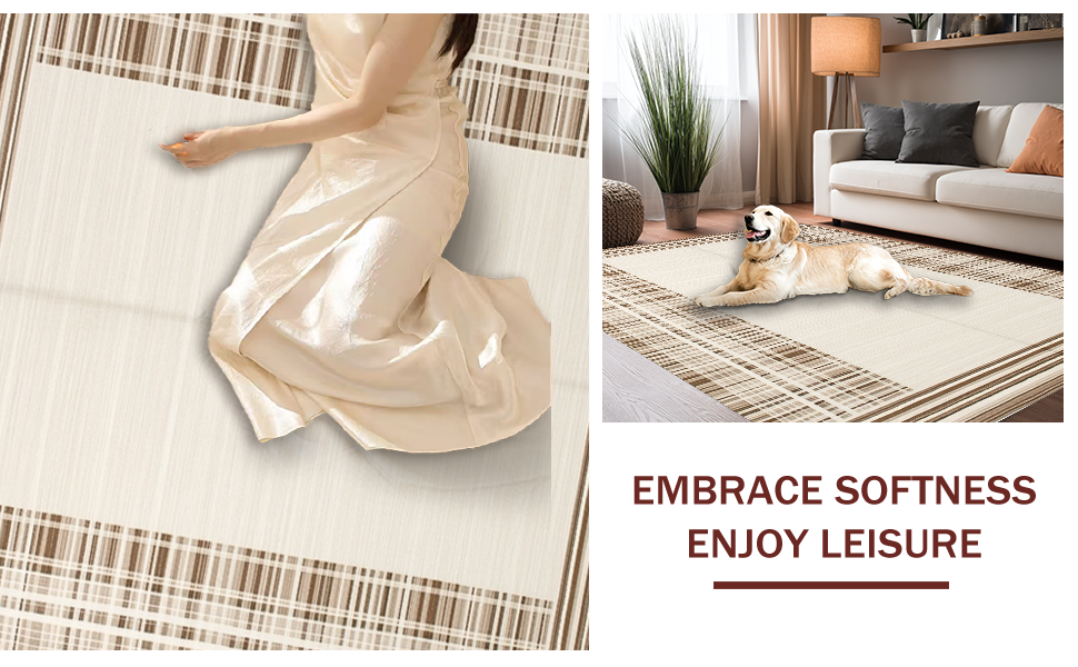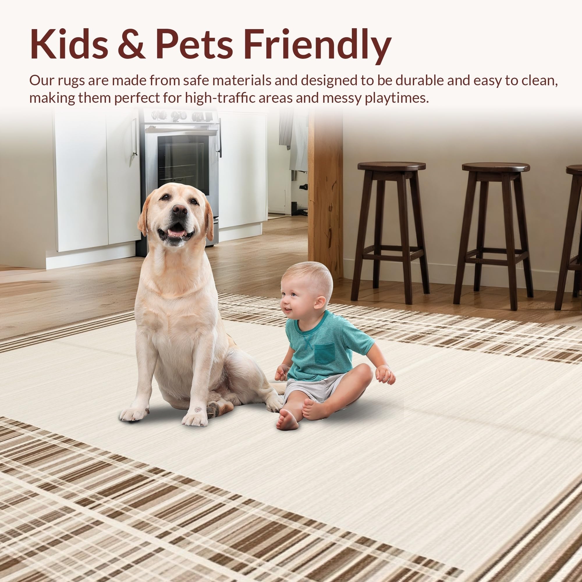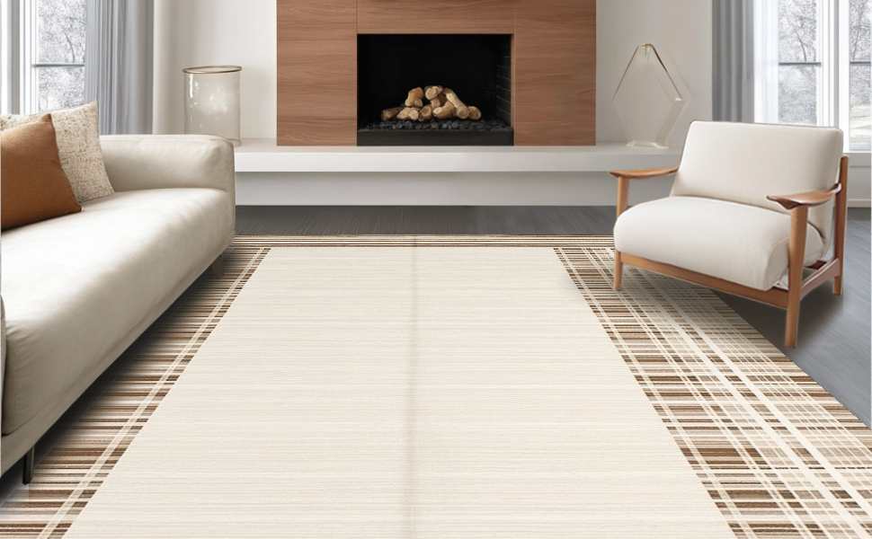 Ultra Soft Area Rug, Non Slip, Stain Resistant, Washable Area Rugs for Living Room, Bedroom, Contemporary Light Brown Geometric Theme(Beige) Overview:
