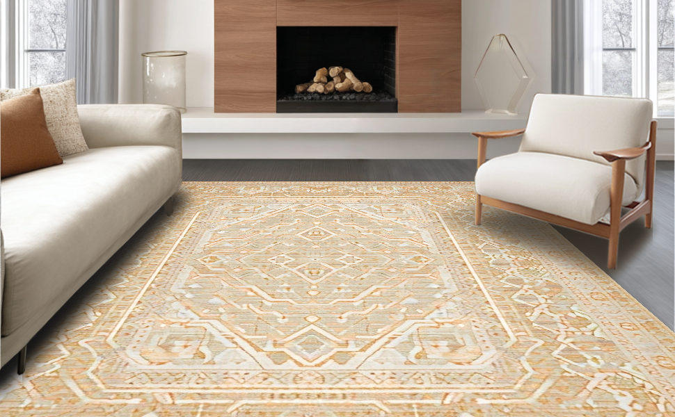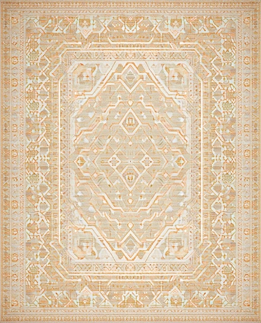Ultra Soft Area Rug, Non Slip, Stain Resistant, Washable Area Rugs for Living Room, Bedroom, Contemporary Light Brown Trellis Design(Beige) Overview: