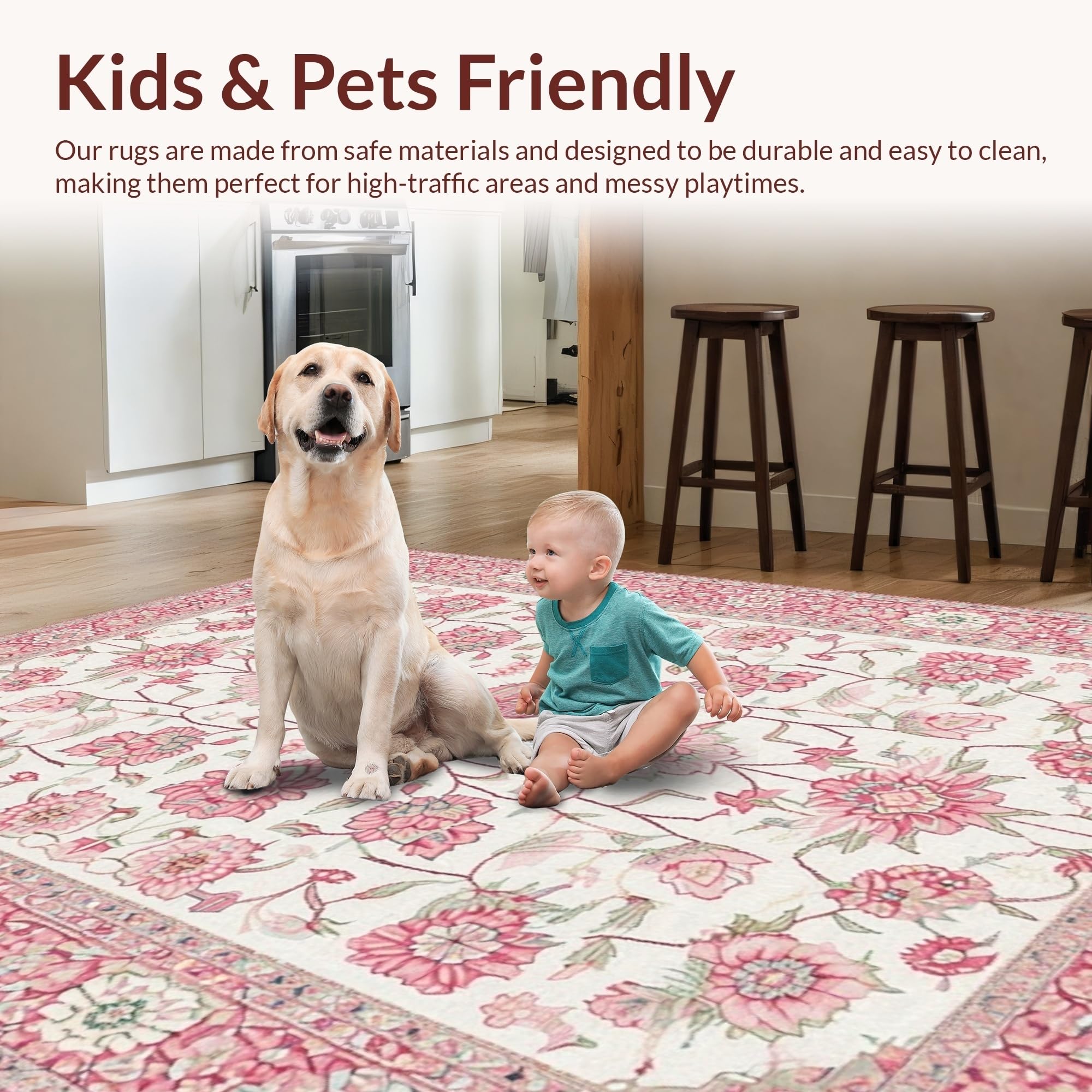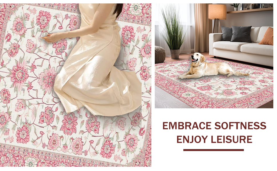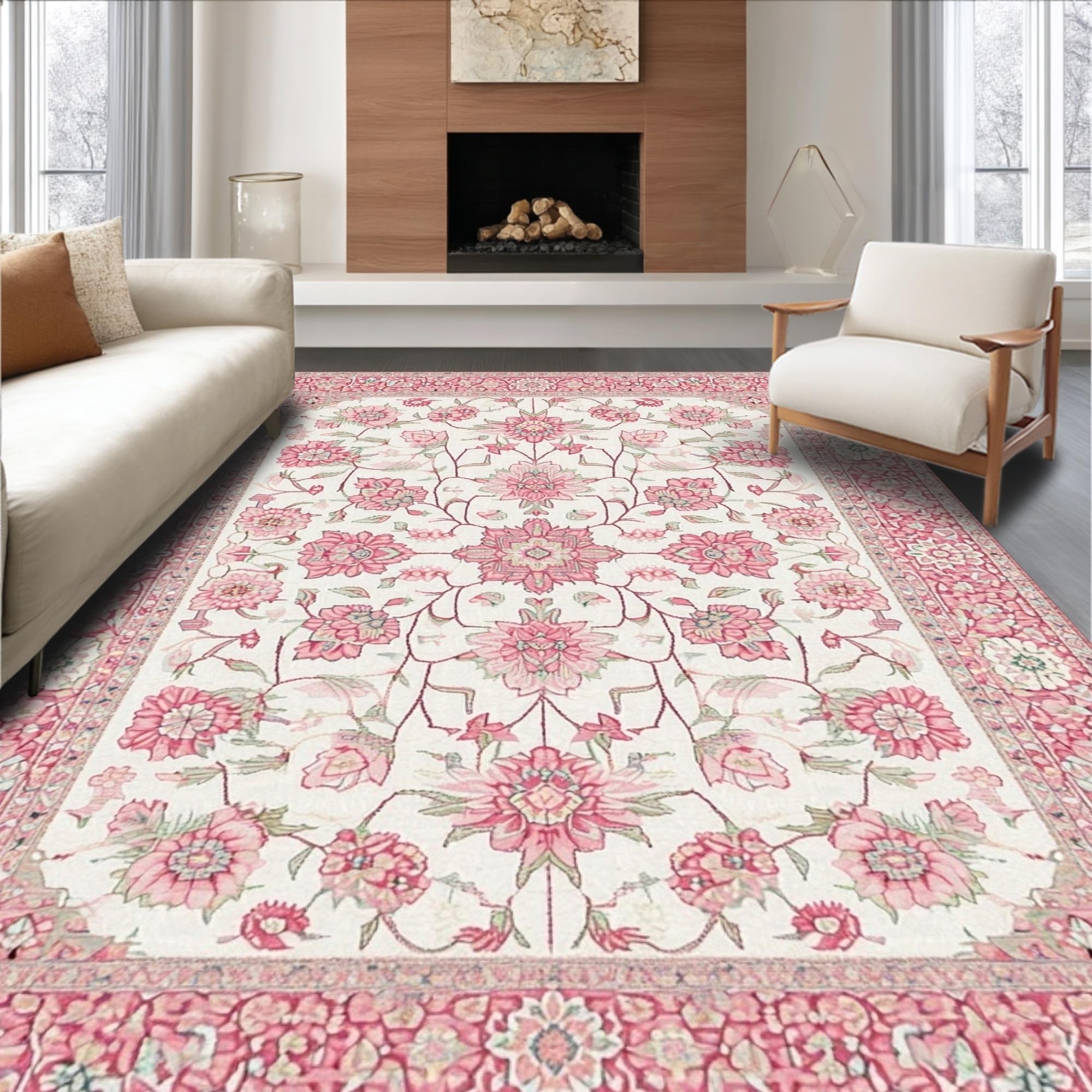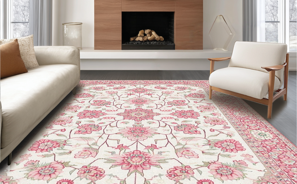 Ultra Soft Area Rug, Non Slip, Stain Resistant, Washable Area Rugs for Living Room, Bedroom, Contemporary Light Floral Elegance(White) Overview: