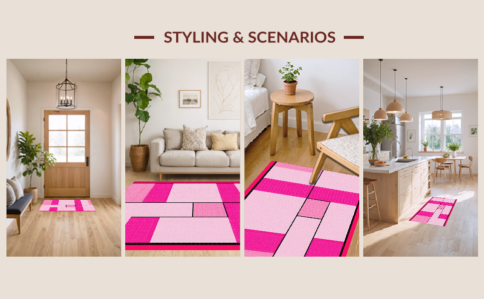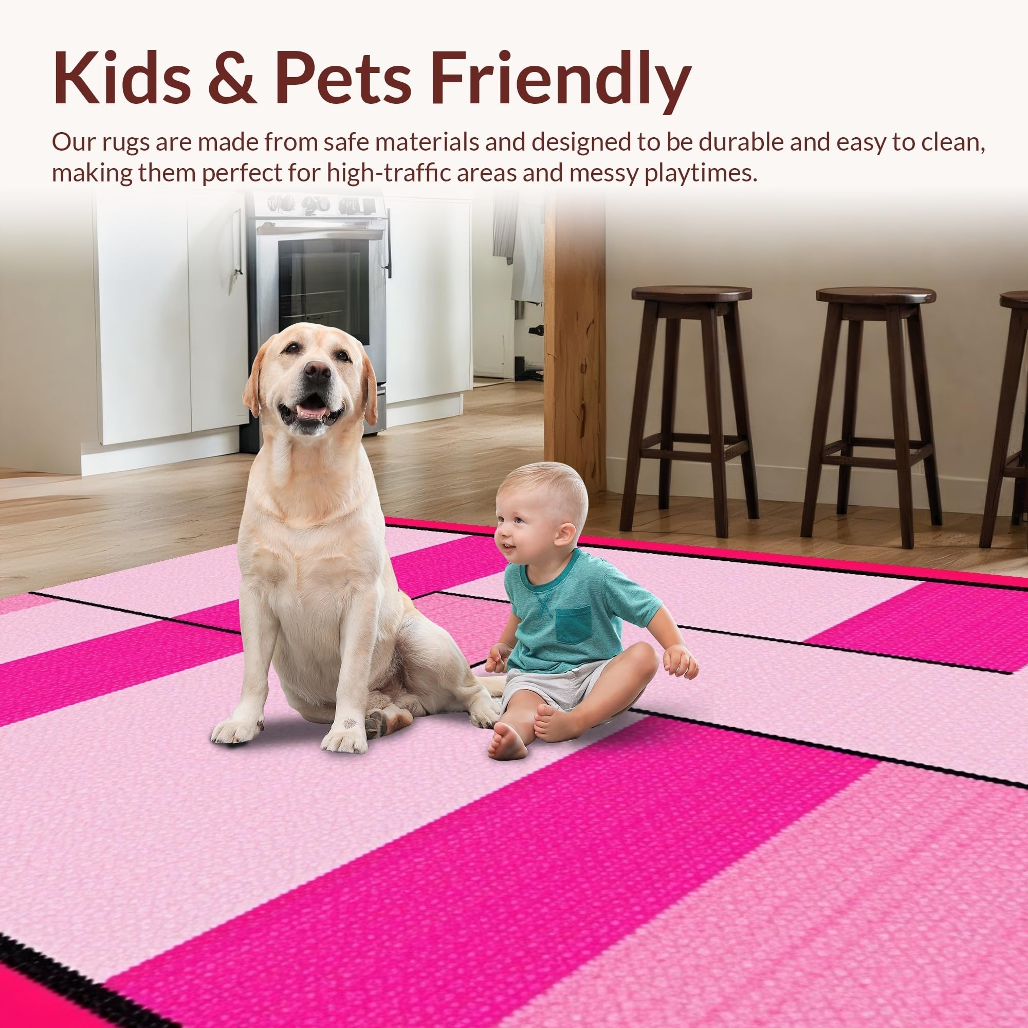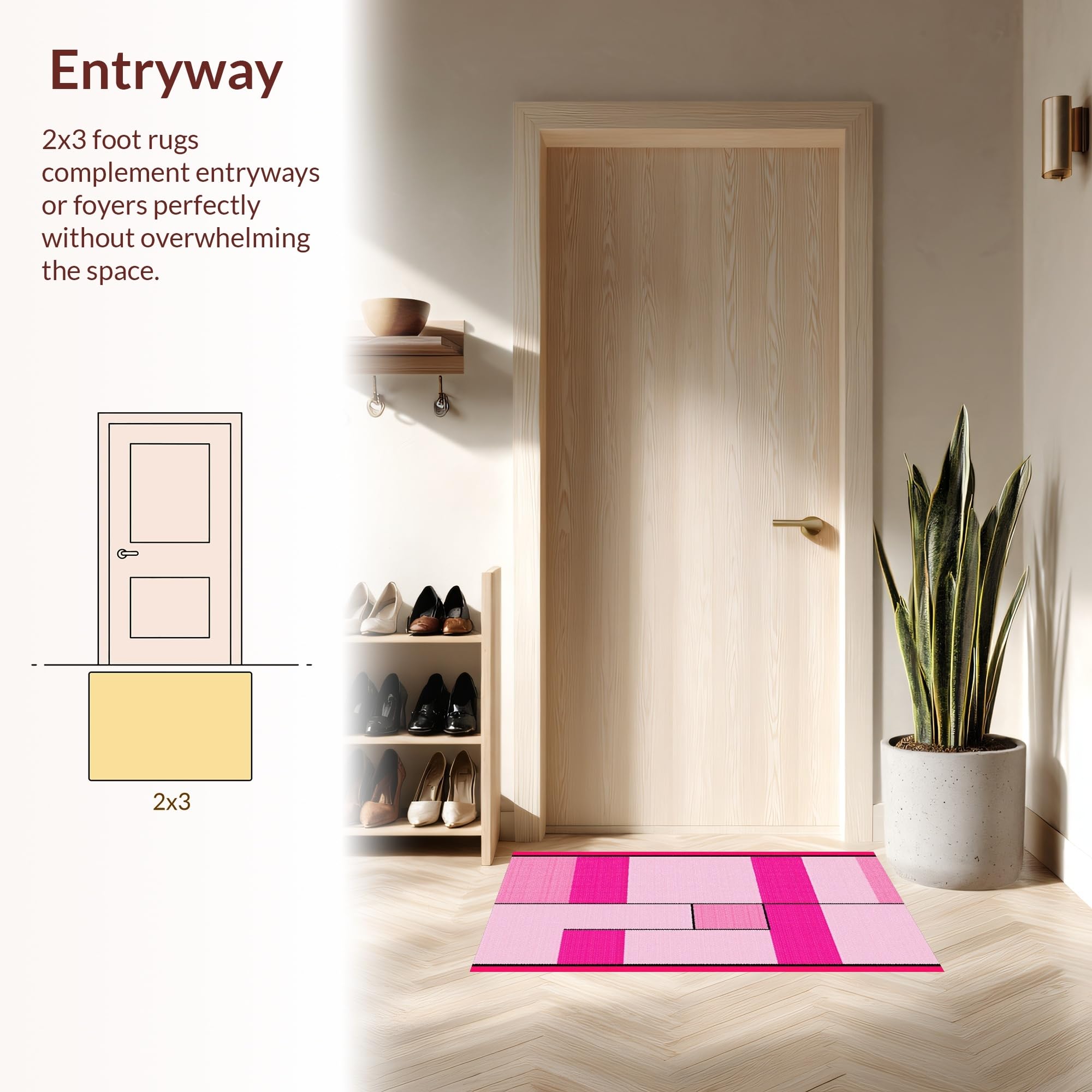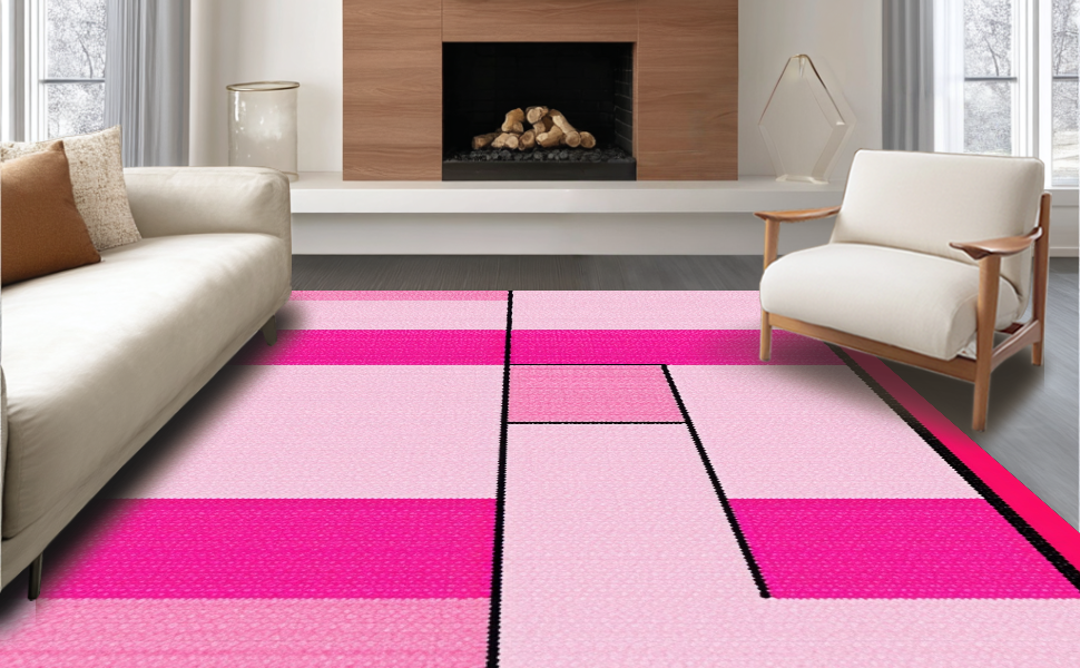 Ultra Soft Area Rug, Non Slip, Stain Resistant, Washable Area Rugs for Living Room, Bedroom, Contemporary Light Pattern Fusion(Pink) Overview:
